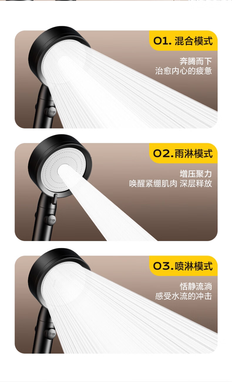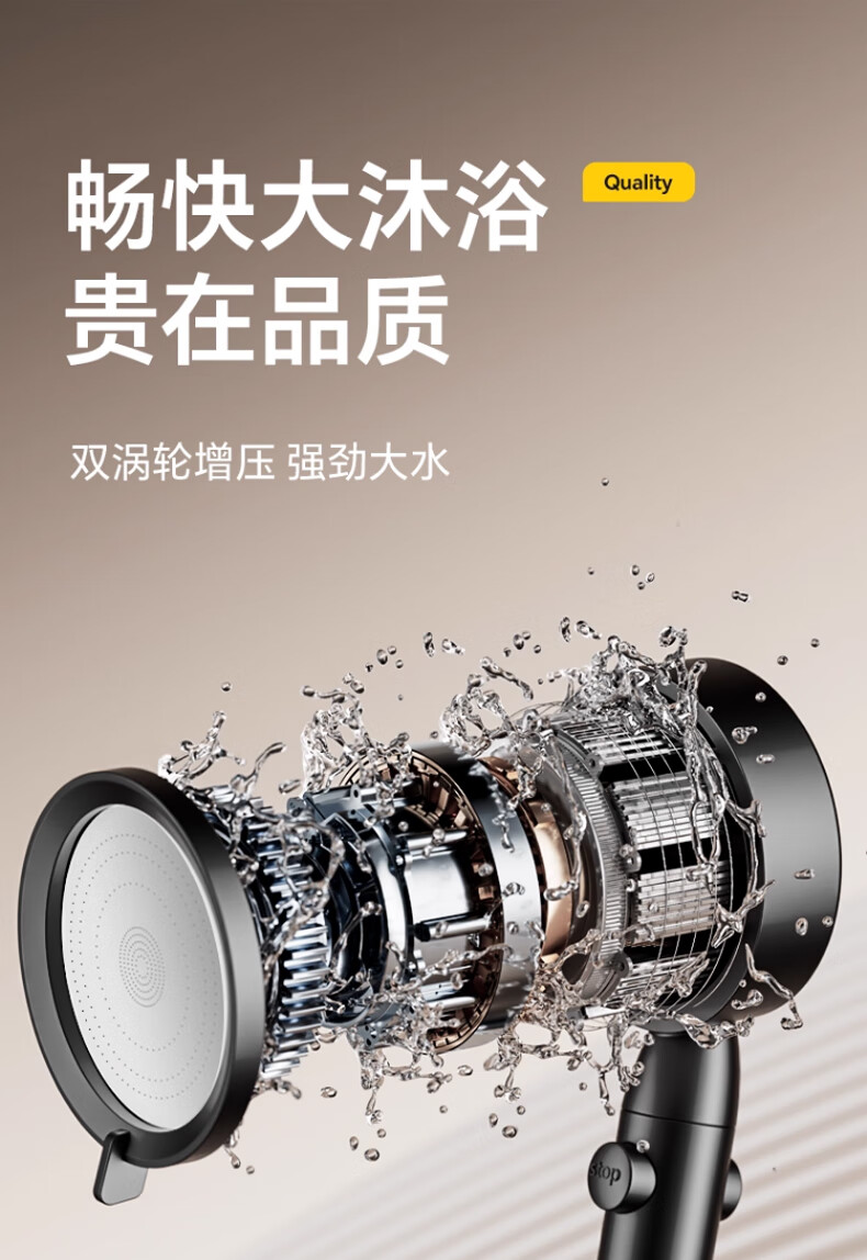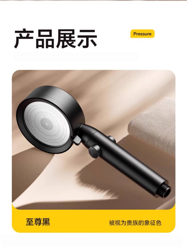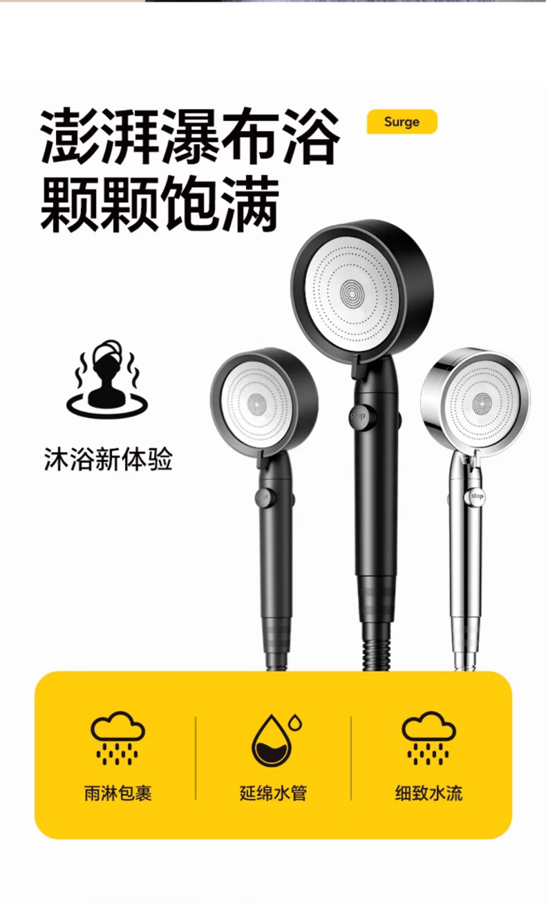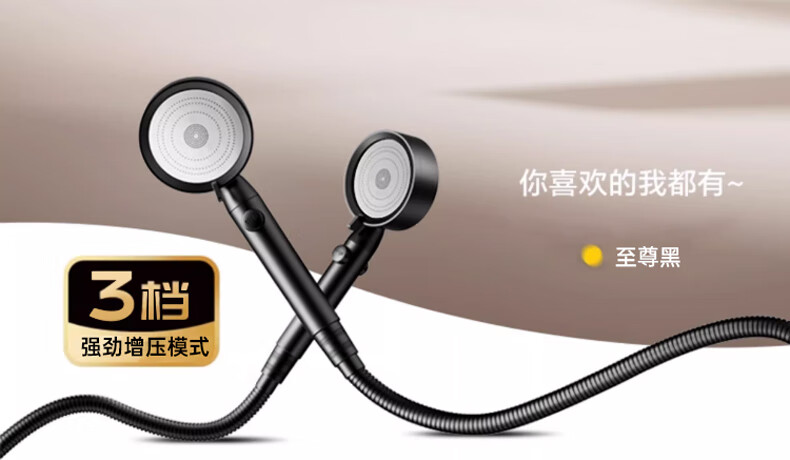X-GRKE【德国】增压淋浴花洒喷头套装浴室洗澡多功能手持强劲加压莲蓬头 黑色丨三档不锈钢面板花洒+1.5m软管 一键止水丨涡轮增压丨大流量出水