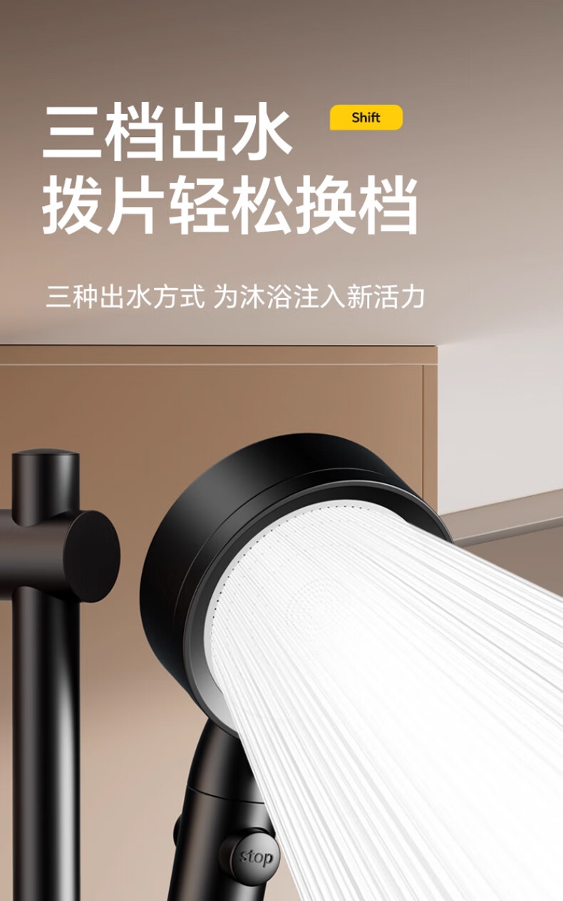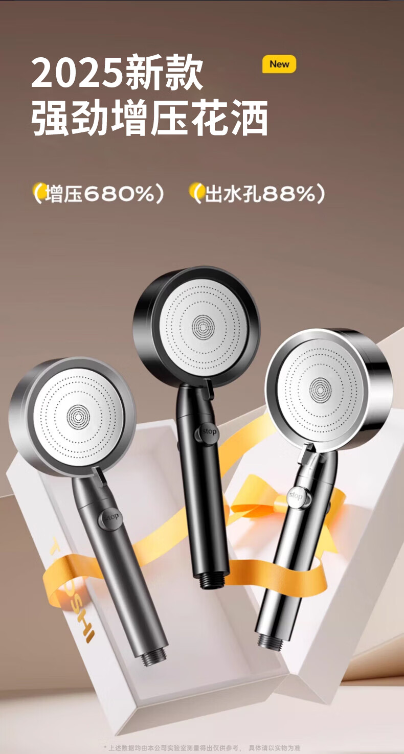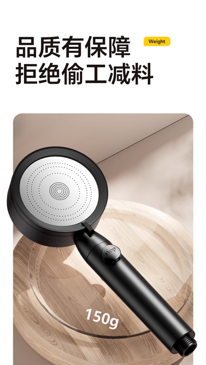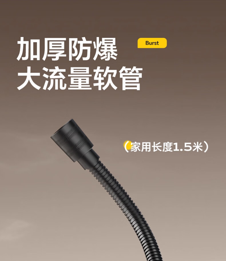 X-GRKE【德国】增压淋浴花洒喷头套装浴室洗澡多功能手持强劲加压莲蓬头 黑色丨三档不锈钢面板花洒+1.5m软管 一键止水丨涡轮增压丨大流量出水
