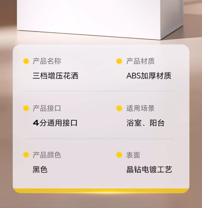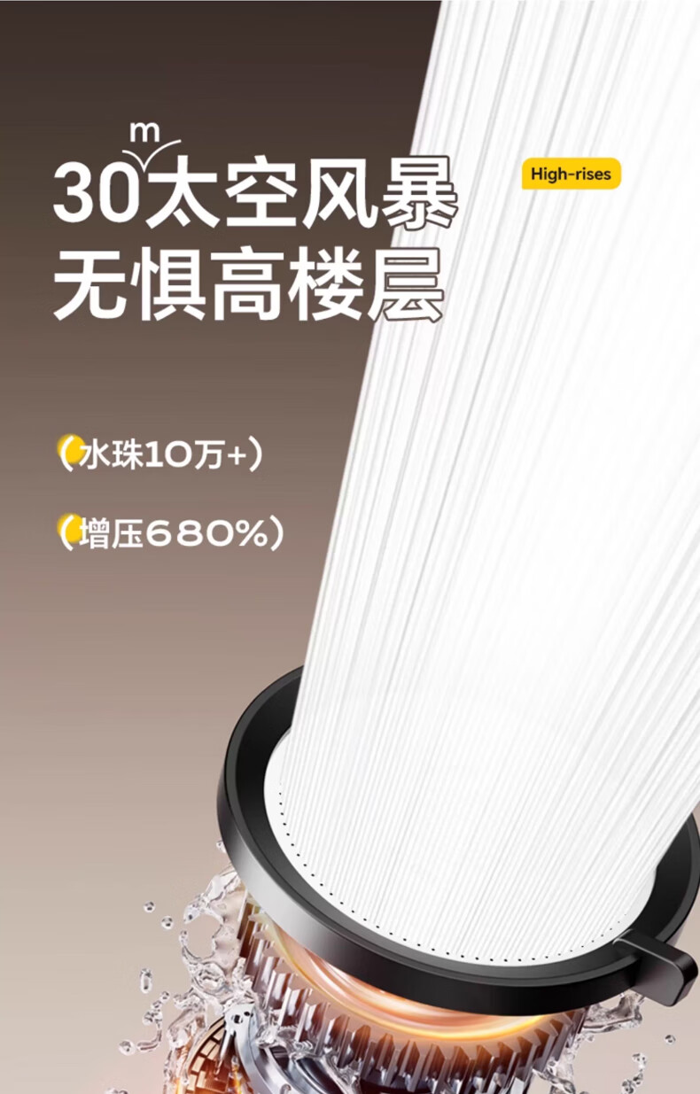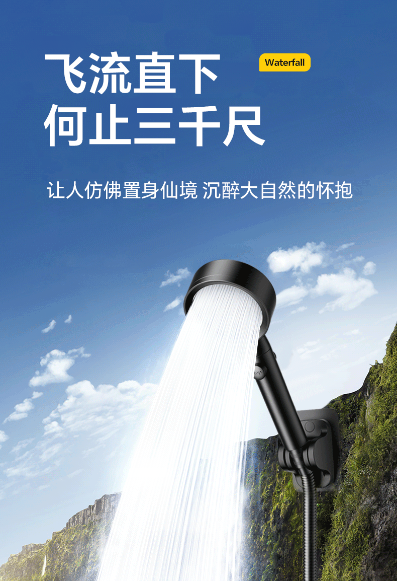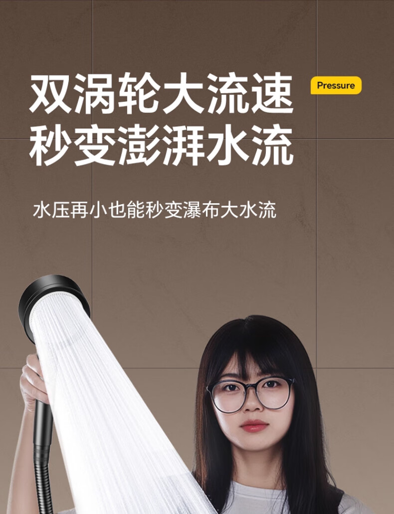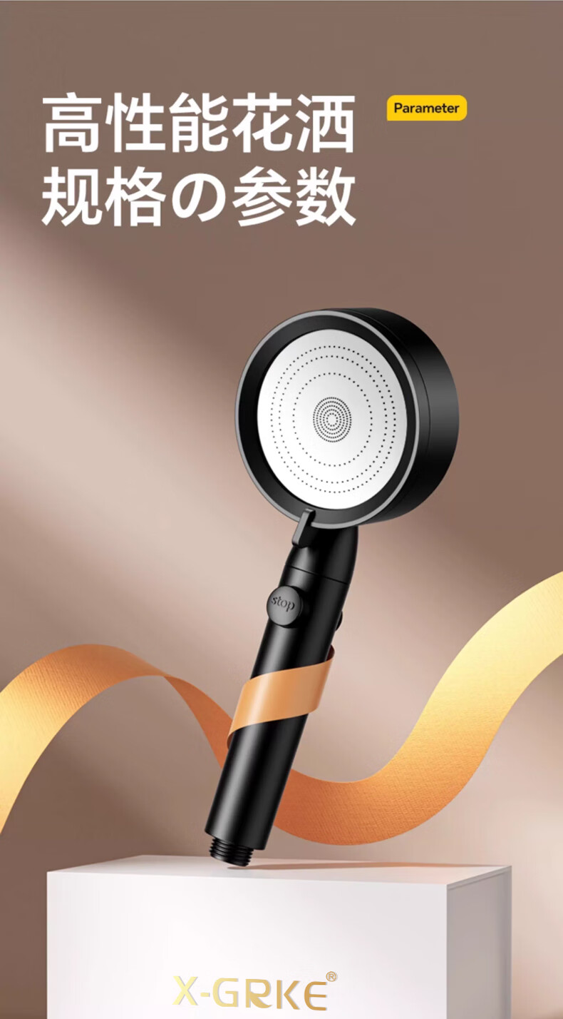 X-GRKE【德国】增压淋浴花洒喷头套装浴室洗澡多功能手持强劲加压莲蓬头 黑色丨三档不锈钢面板花洒+1.5m软管 一键止水丨涡轮增压丨大流量出水