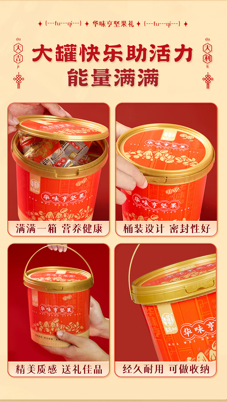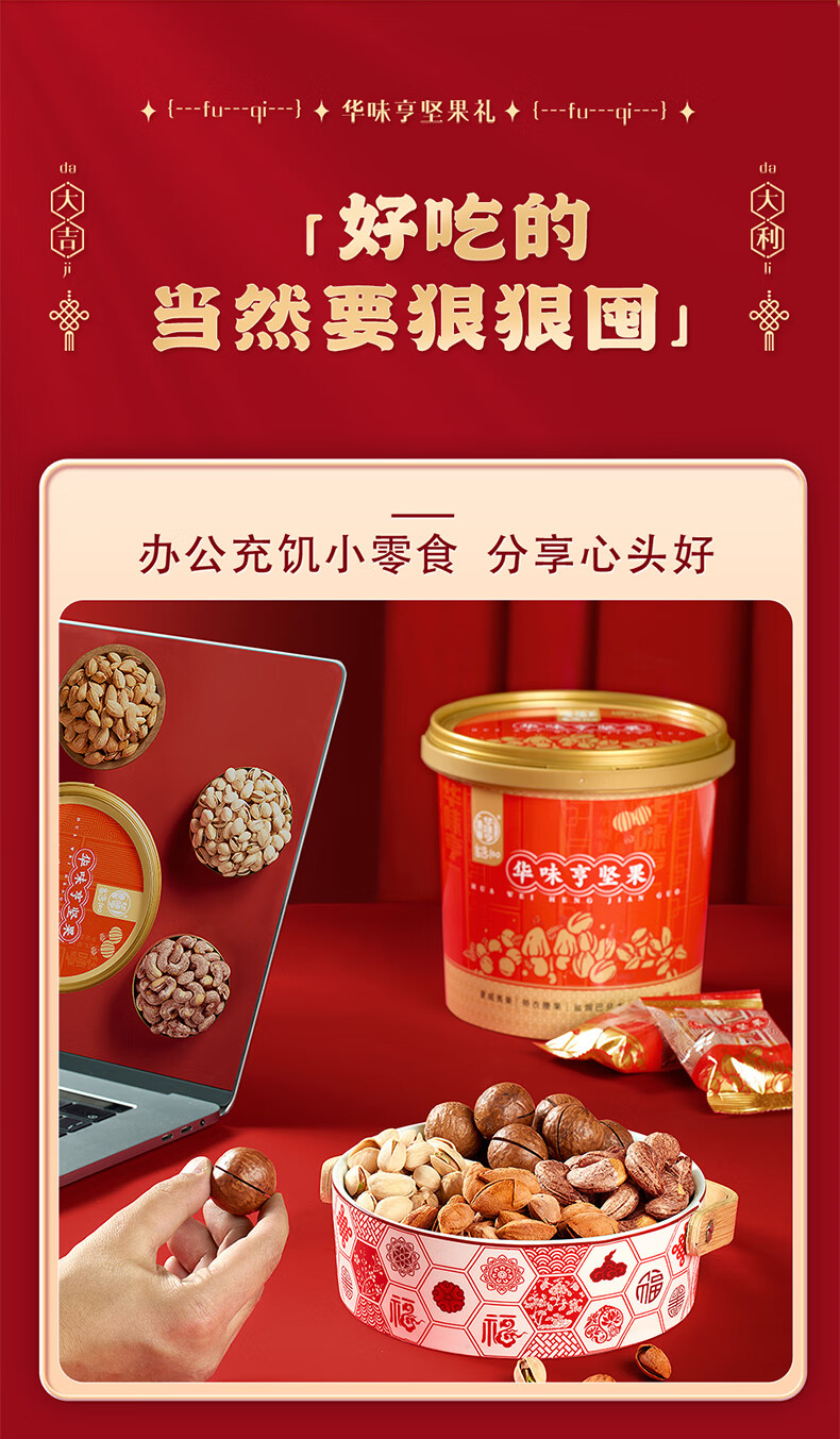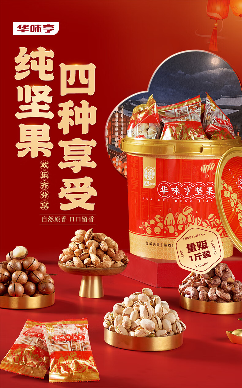 华味亨500g桶装混合坚果 约21小袋坚果炒货每日坚果混合干果送礼年货 混合口味500g