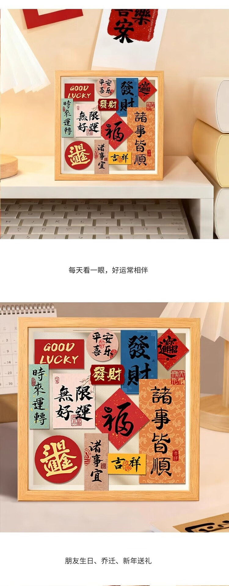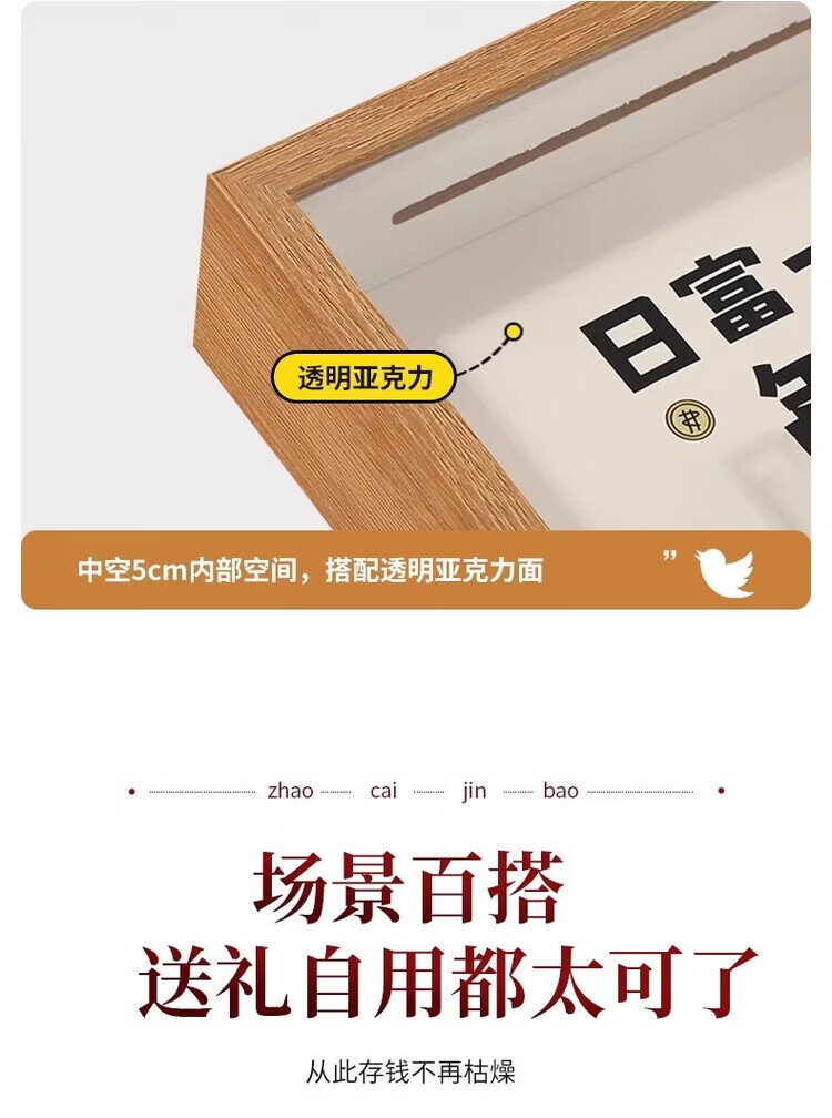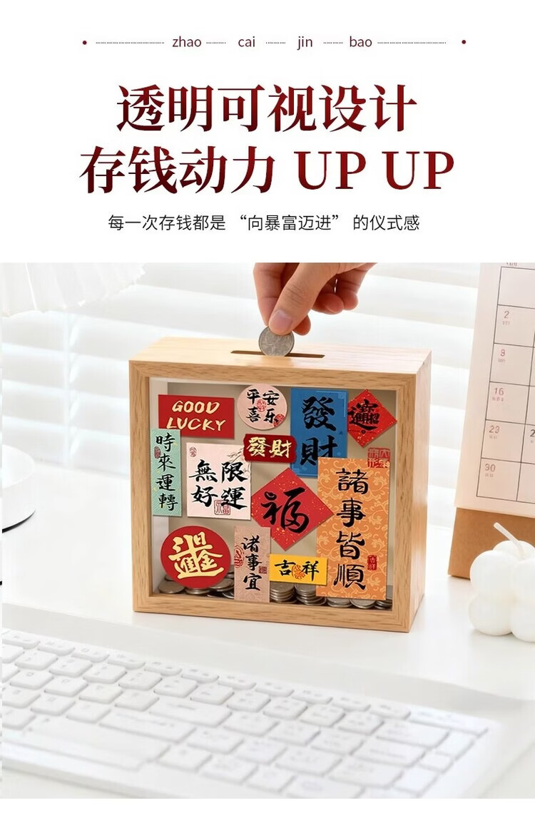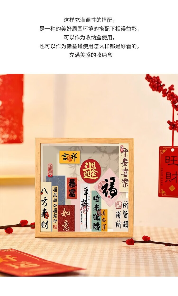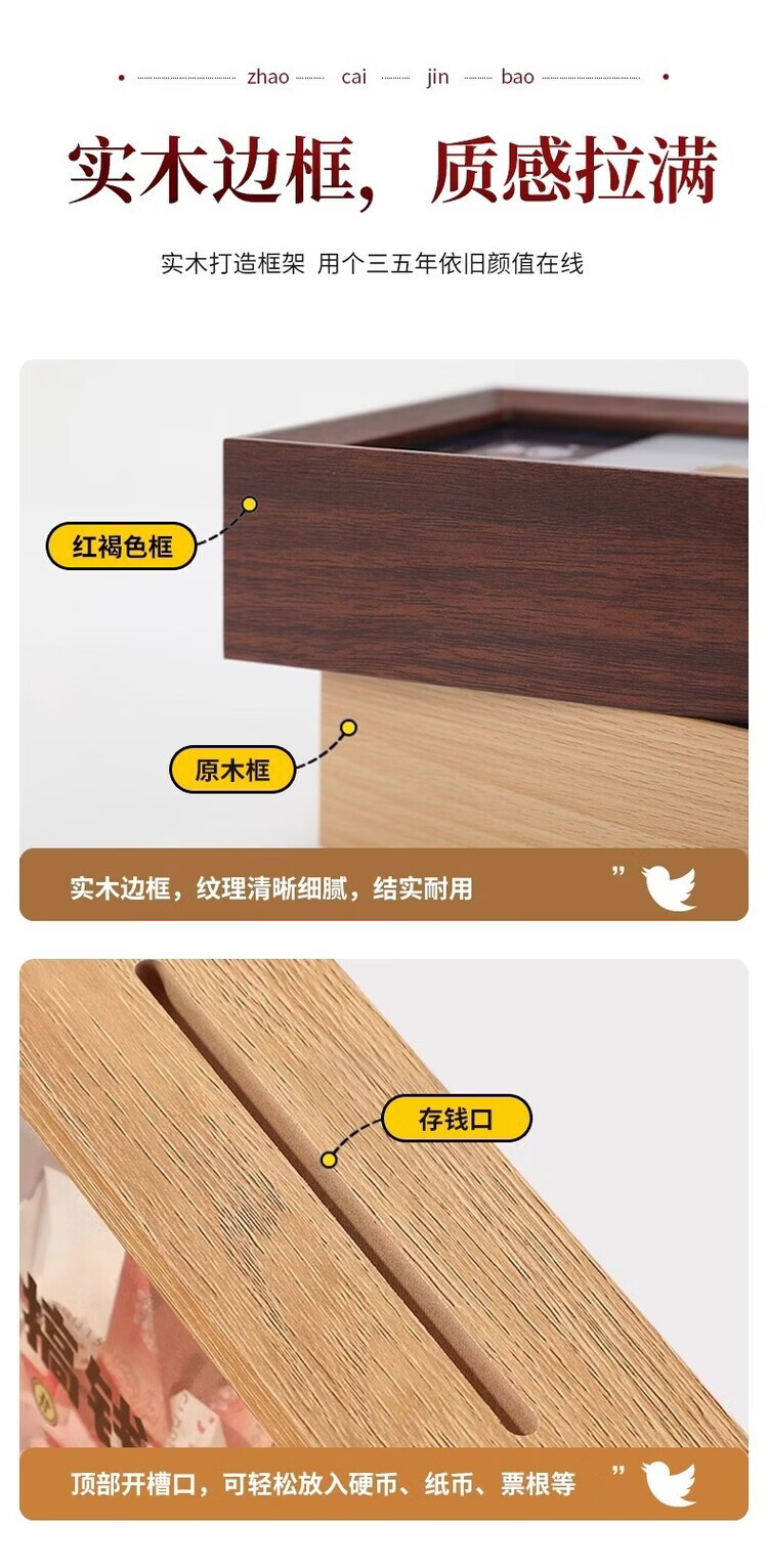 OYKTN平安喜乐存钱罐相框零钱储蓄罐放硬币的收纳相框展示摆件入户柜 万事如意-深木色框-20*20cm