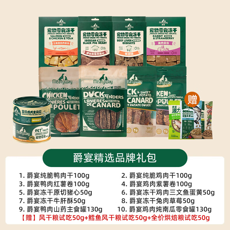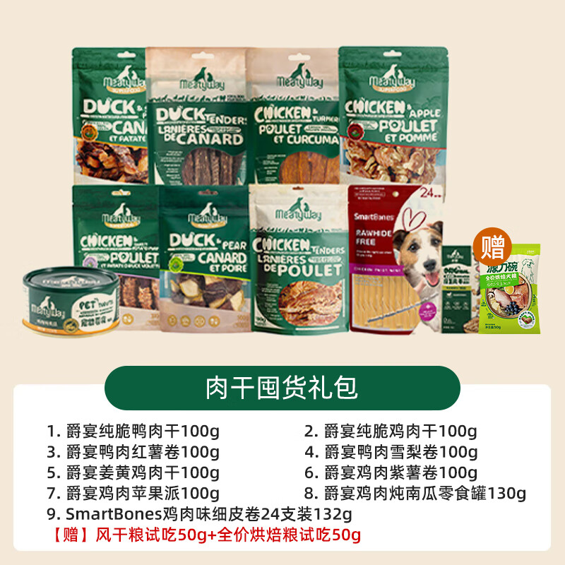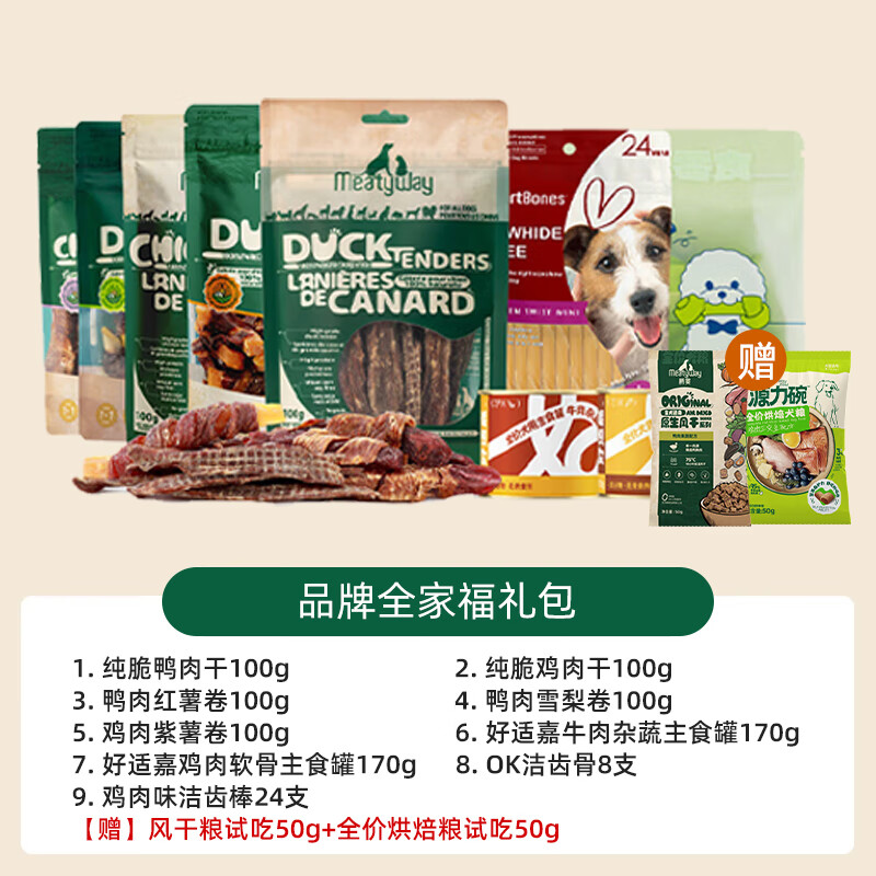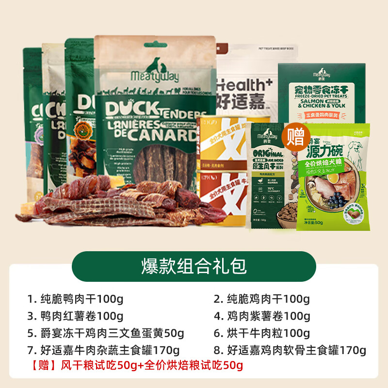 Meatyway鸭肉干宠物狗零食磨牙棒好适嘉冻干狗罐牛肉大中小型猫狗通用 爆款组合礼包