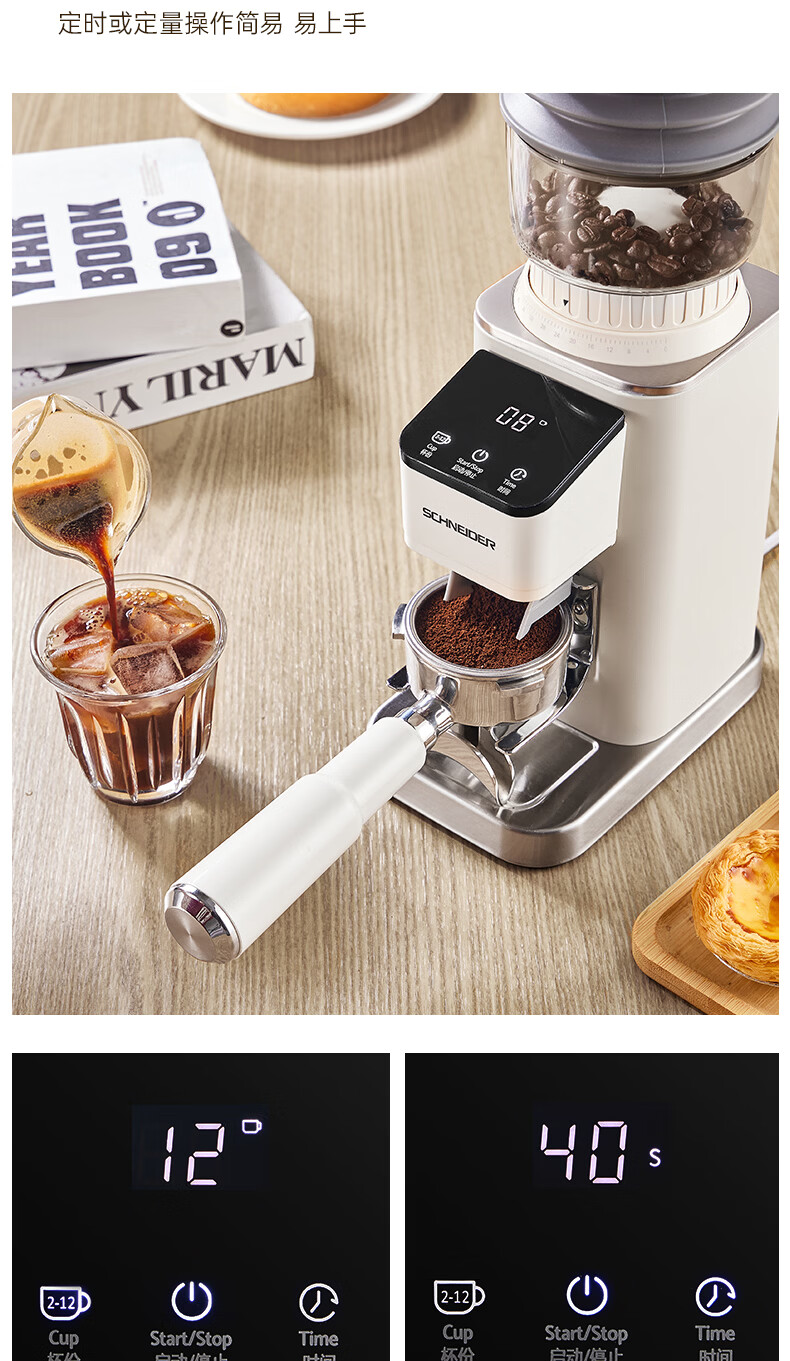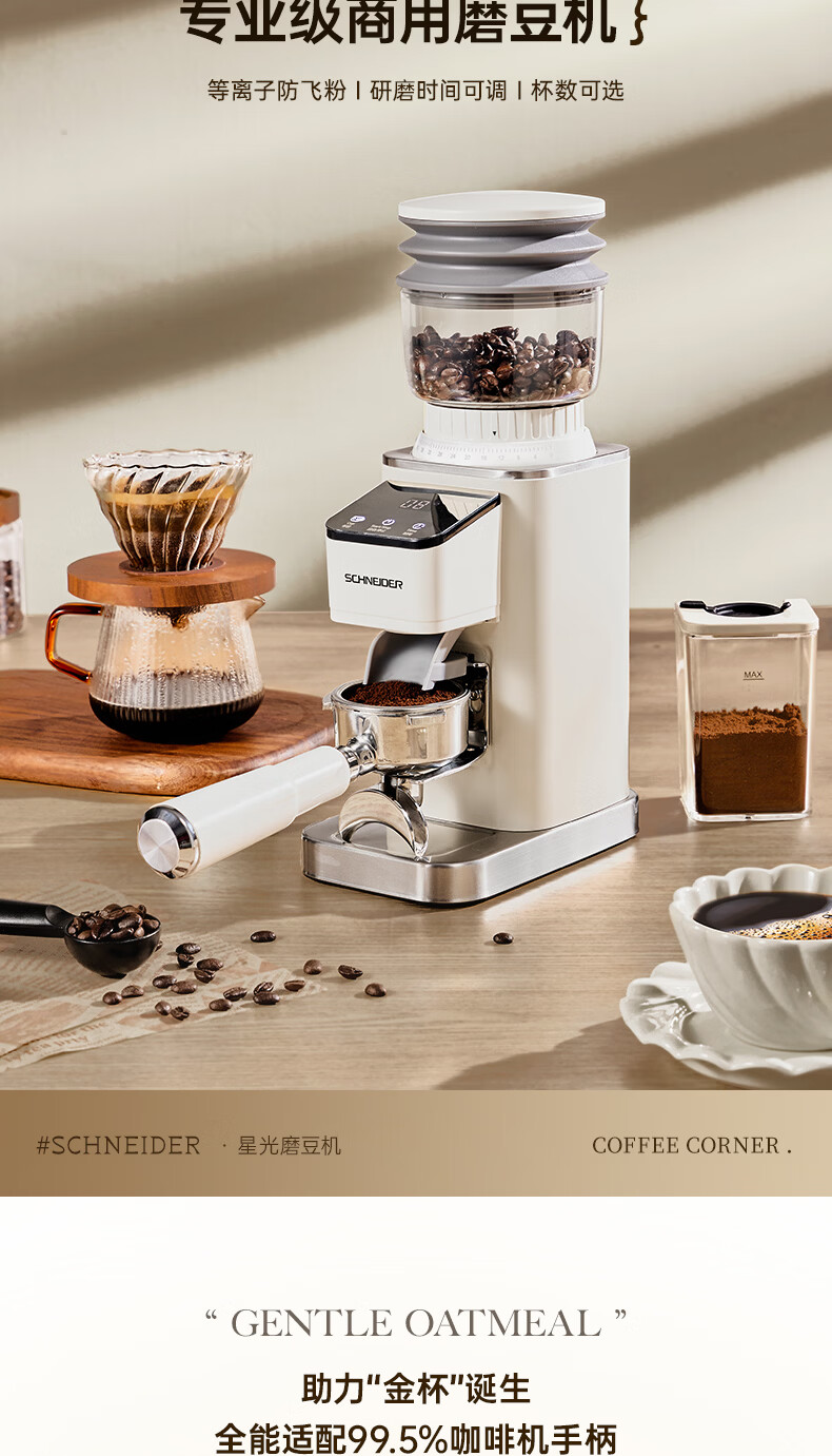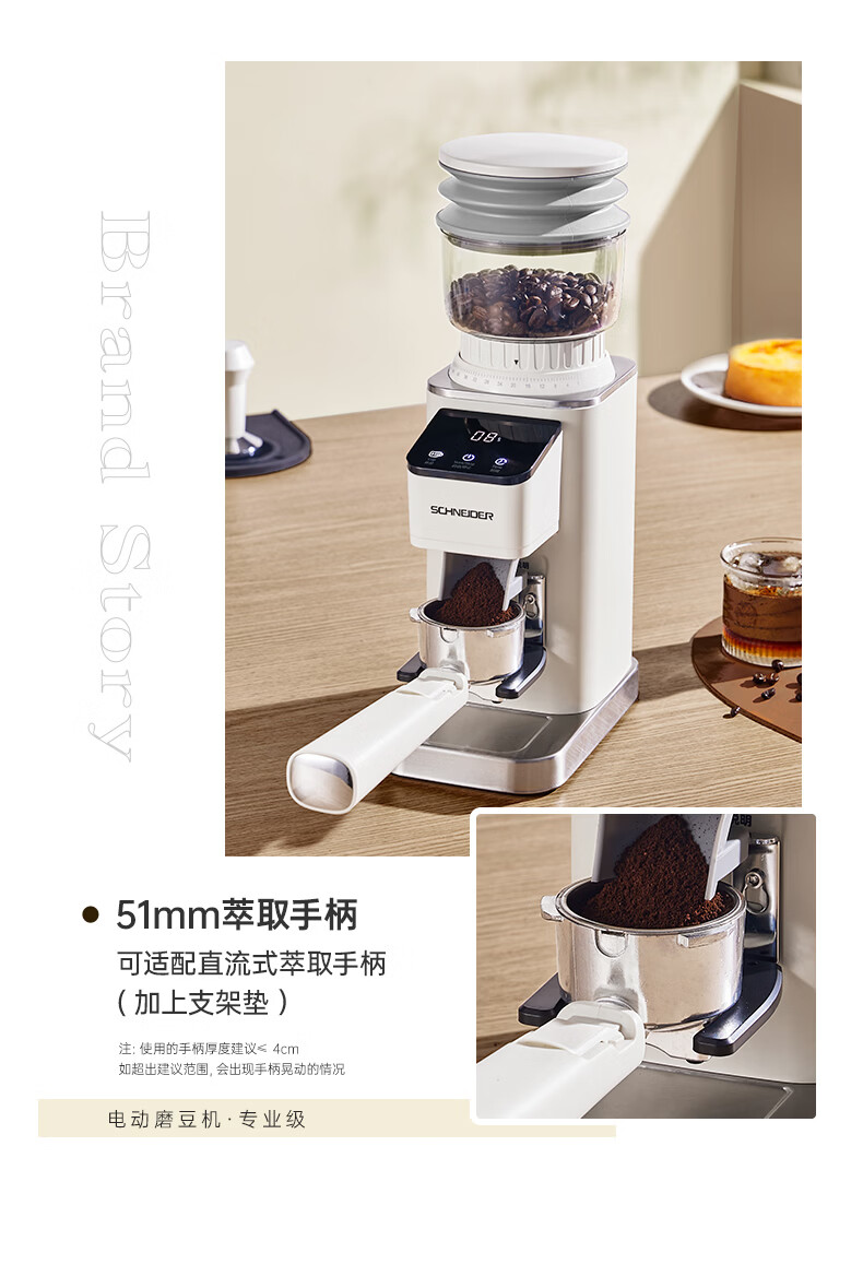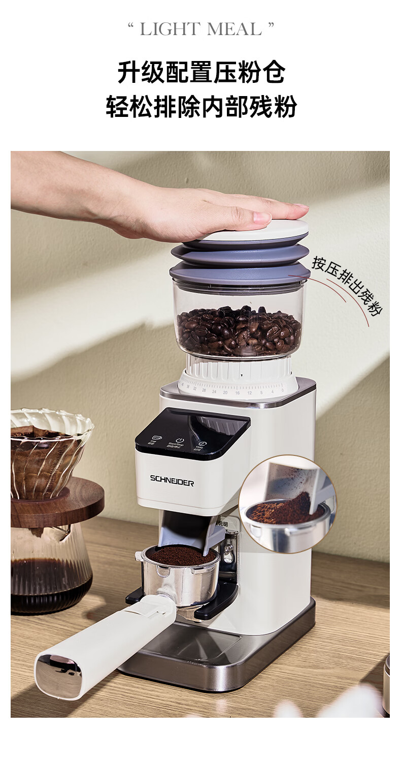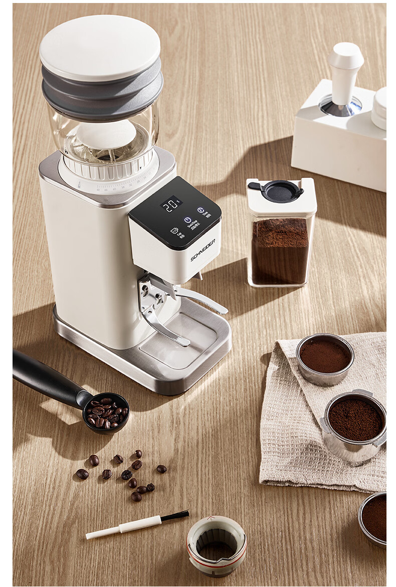 SCHNEIDER全自动电动磨豆机家用意式咖啡豆防飞粉便携式研磨机SWK-XM01 智能支架款(带拍粉器,手柄支架,接粉盒)