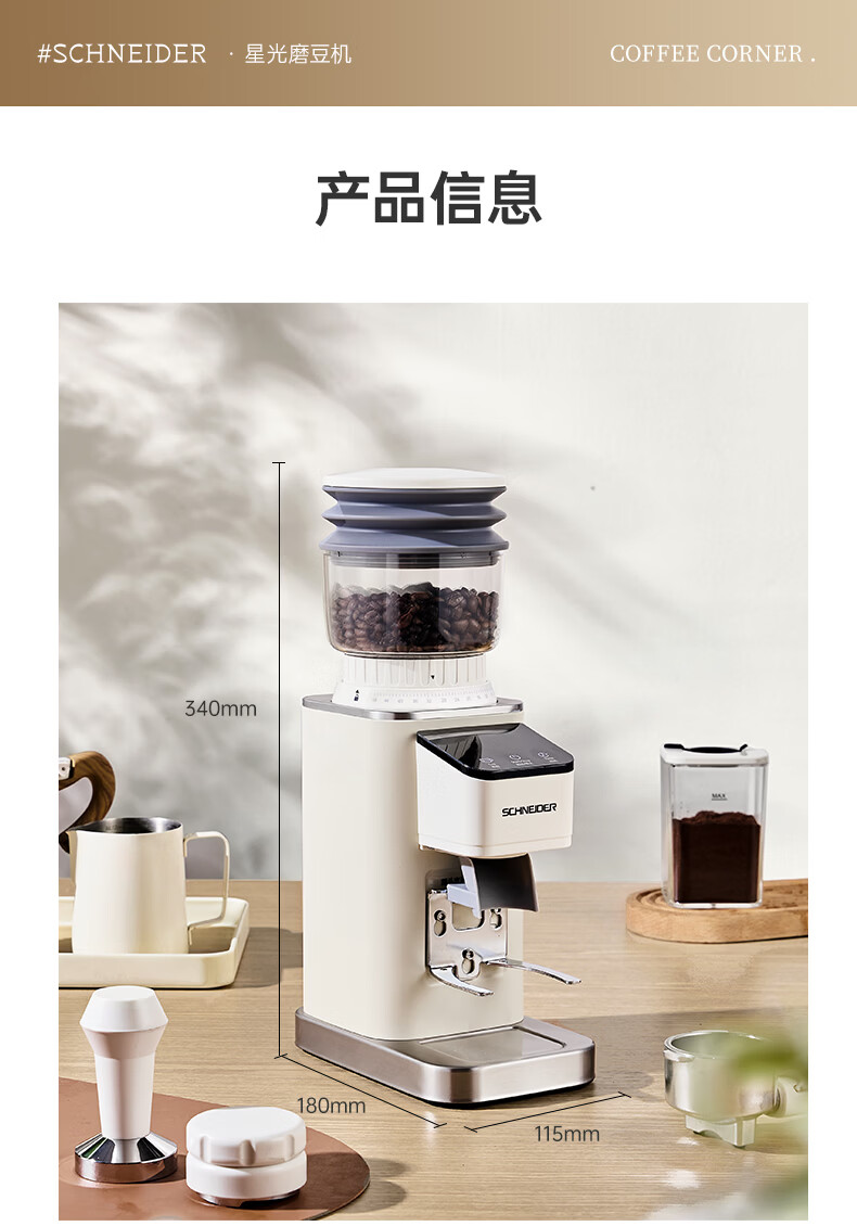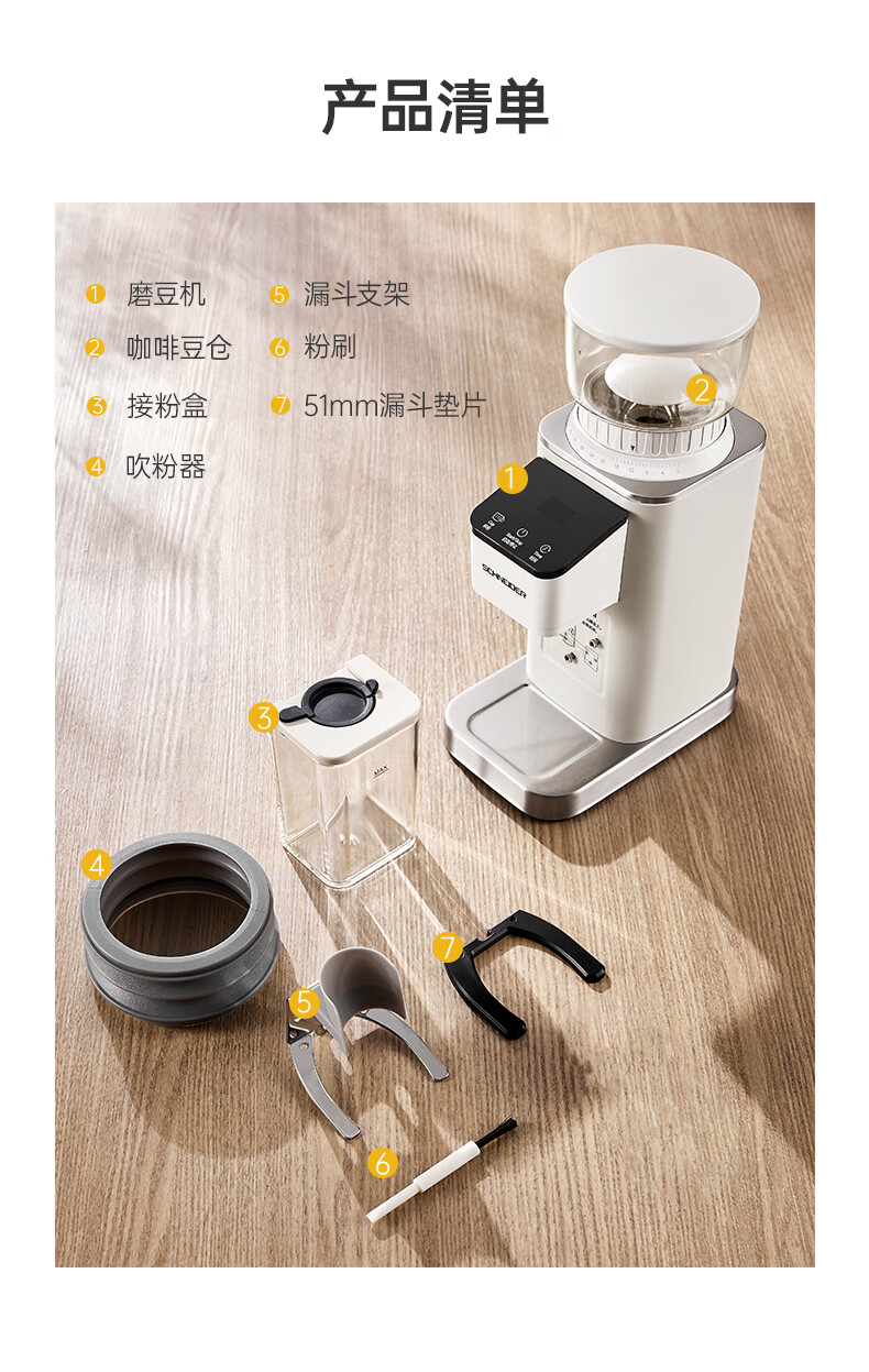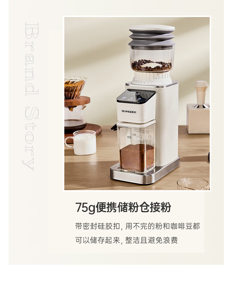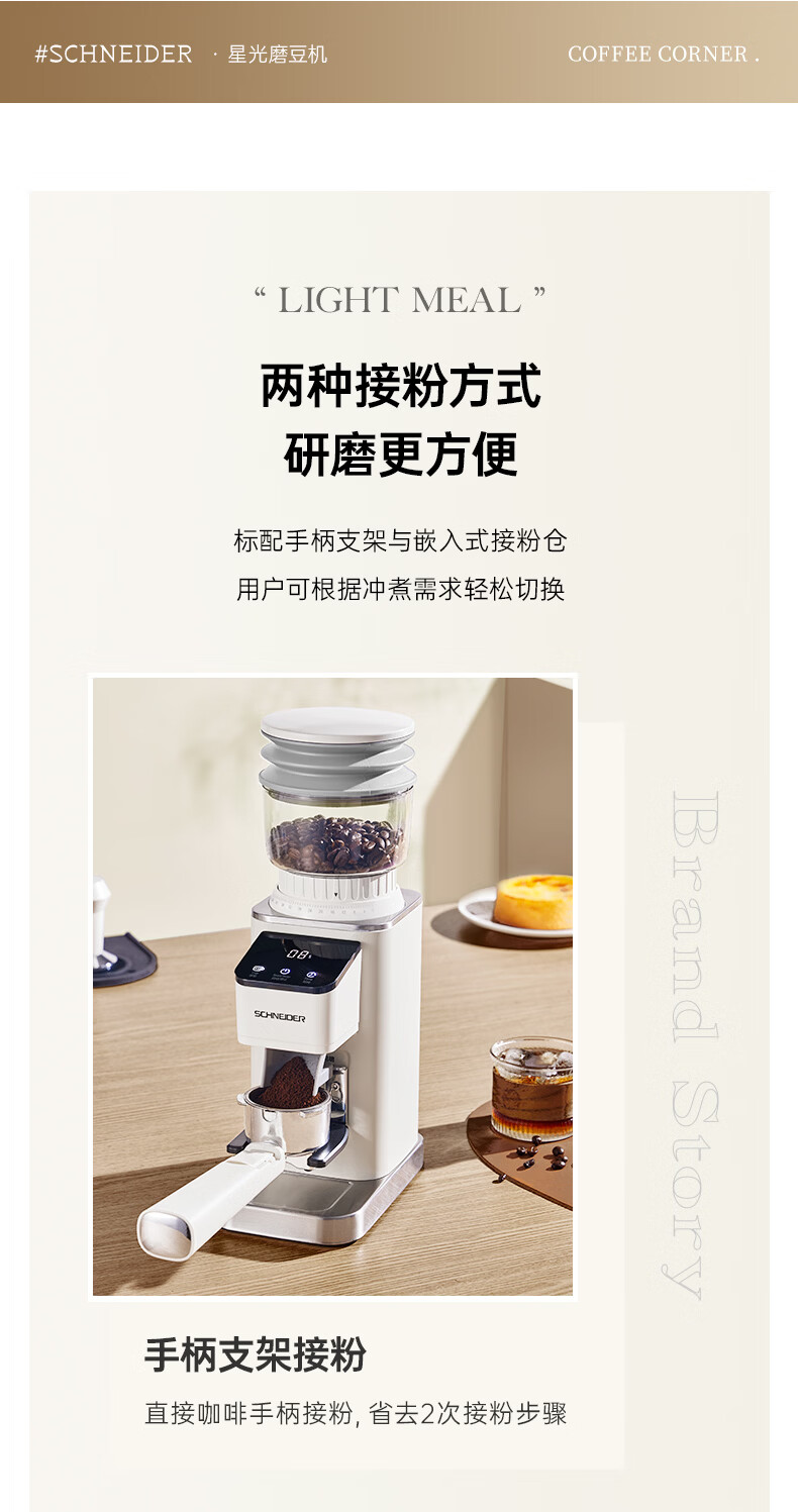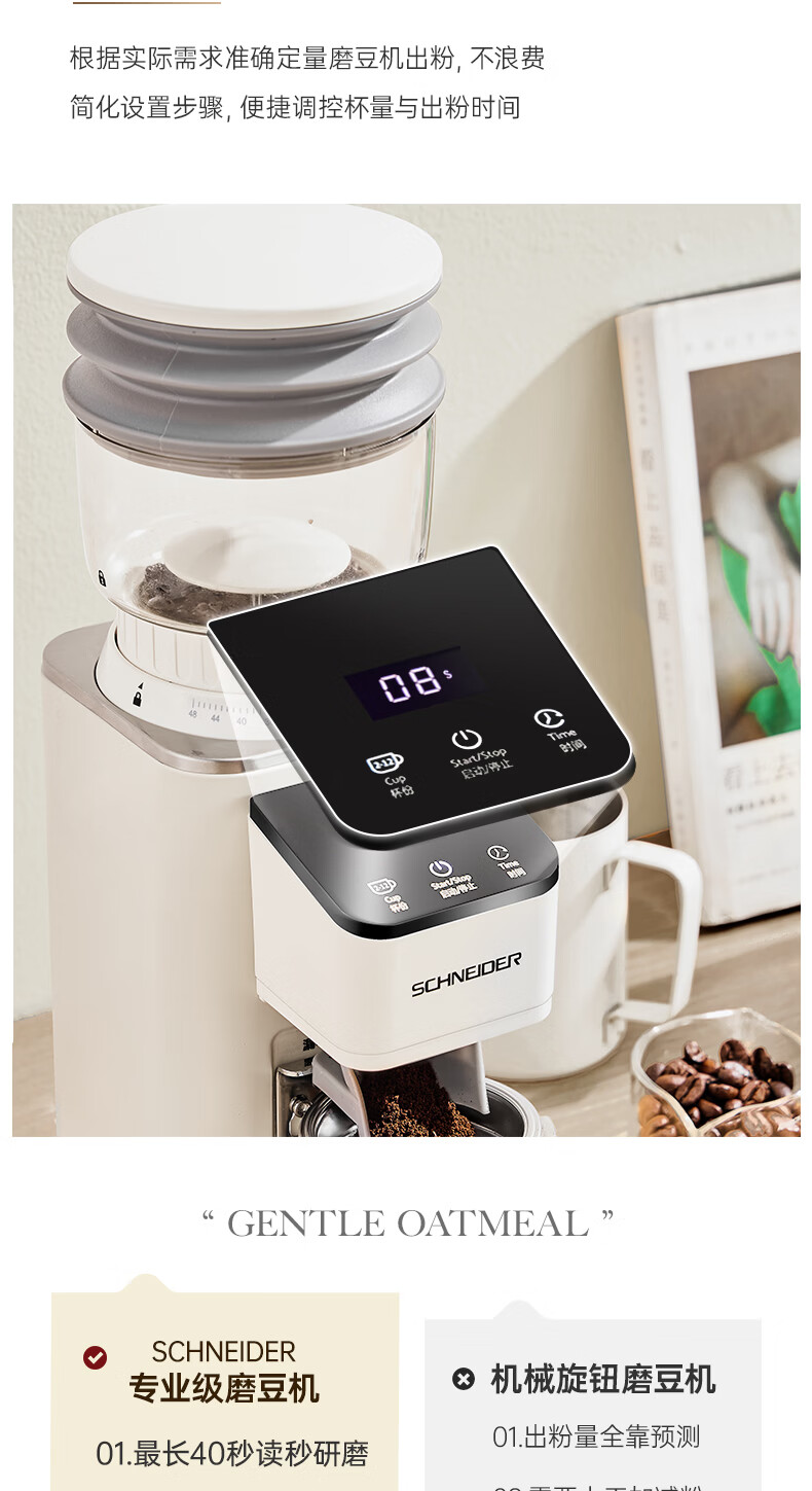 SCHNEIDER全自动电动磨豆机家用意式咖啡豆防飞粉便携式研磨机SWK-XM01 智能支架款(带拍粉器,手柄支架,接粉盒)