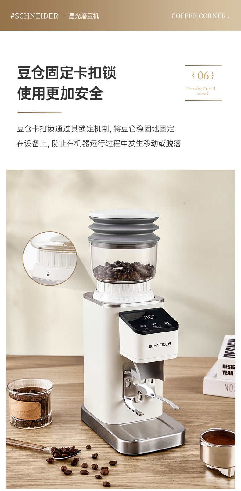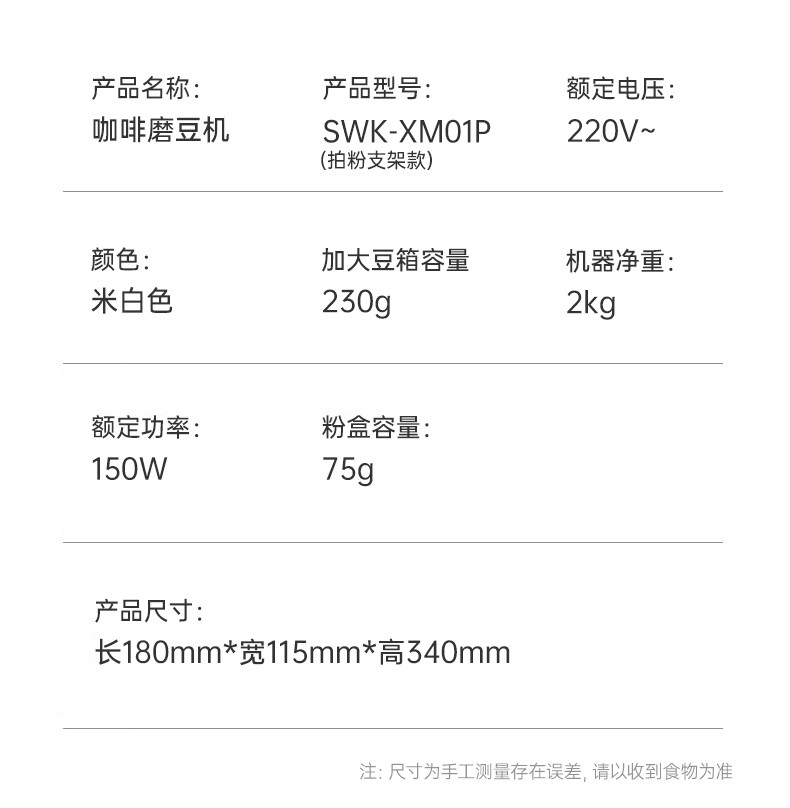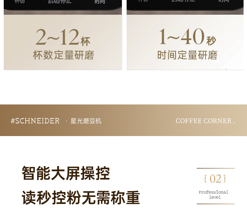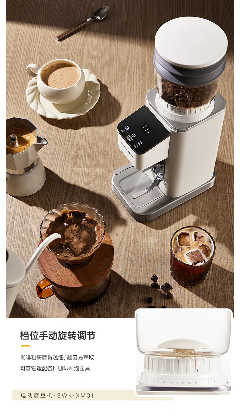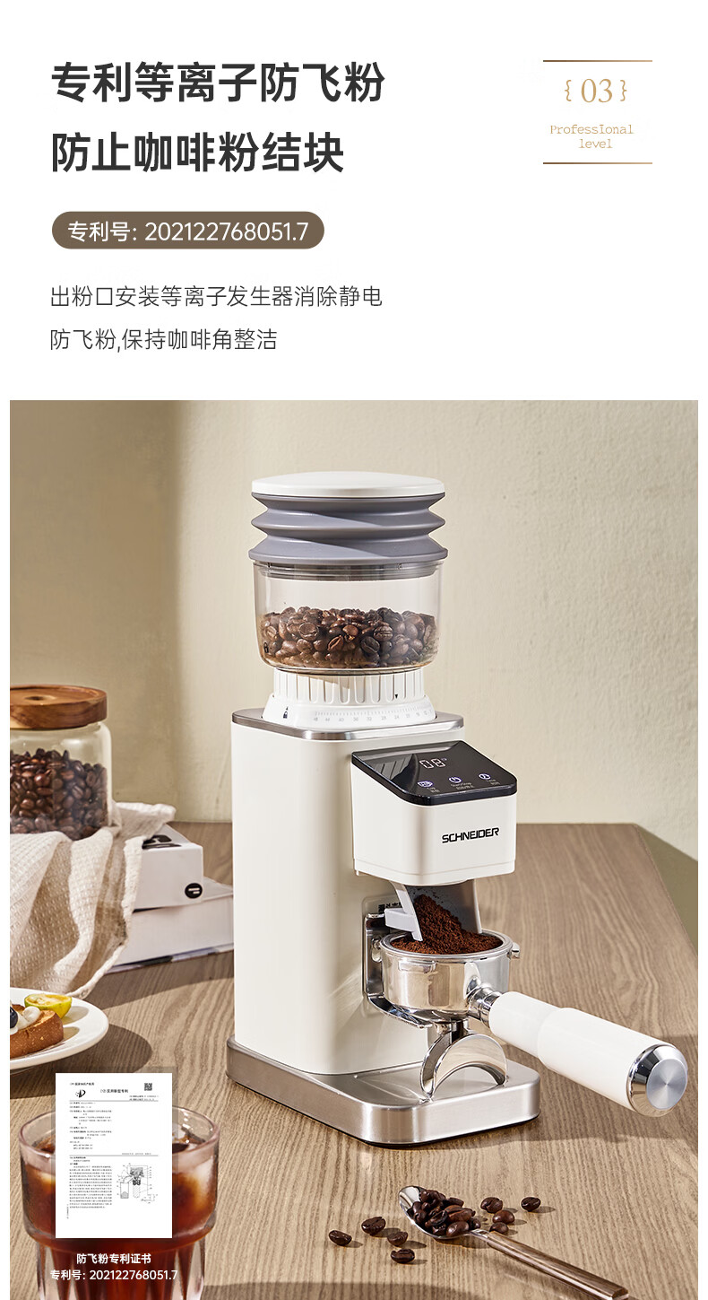 SCHNEIDER全自动电动磨豆机家用意式咖啡豆防飞粉便携式研磨机SWK-XM01 智能支架款(带拍粉器,手柄支架,接粉盒)