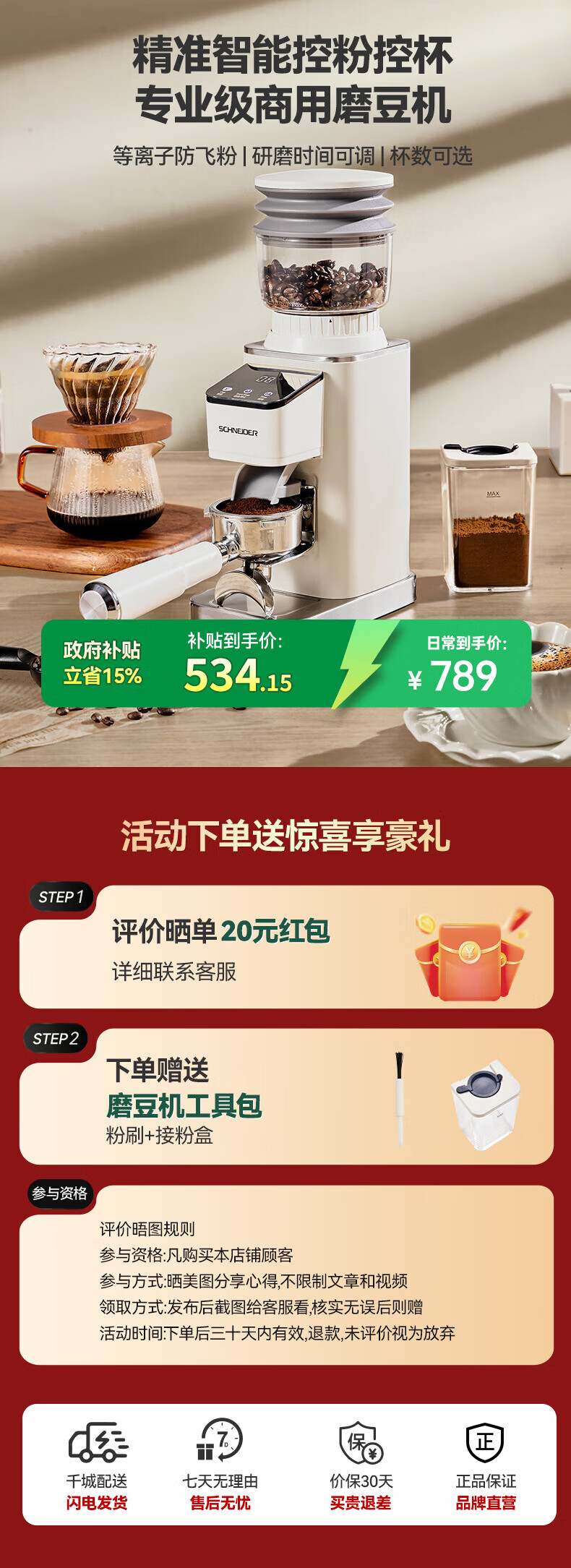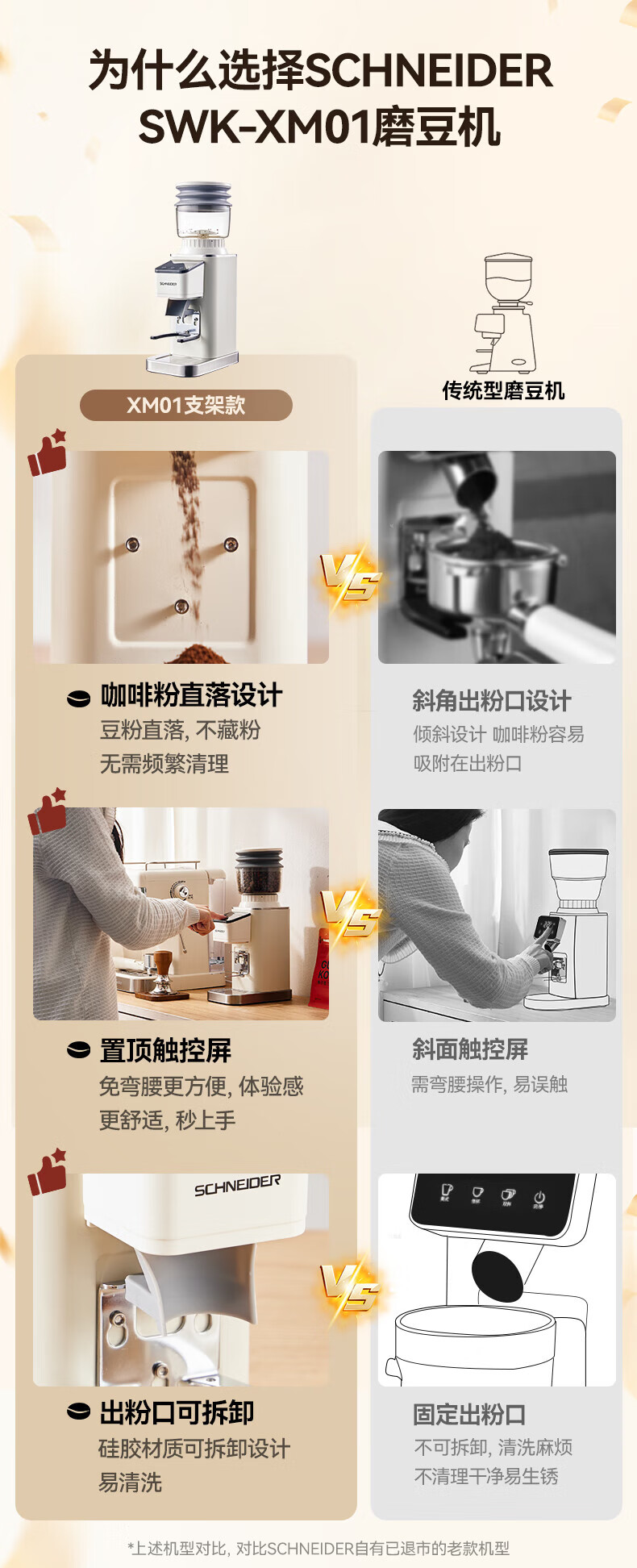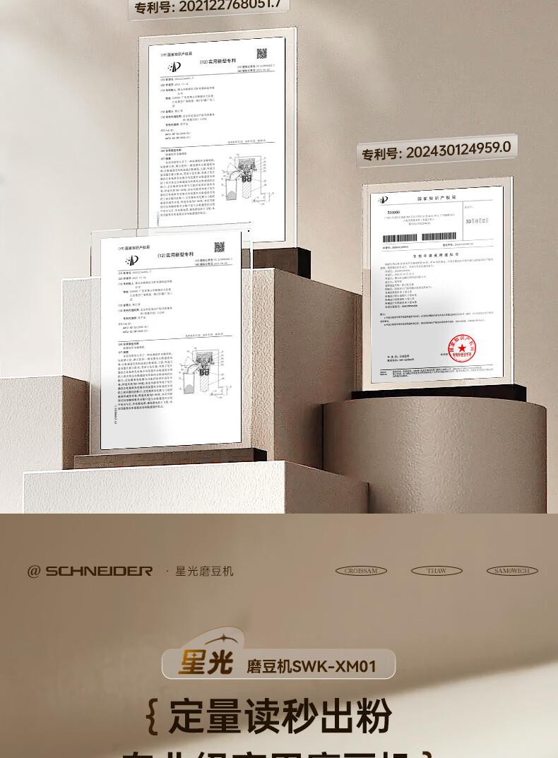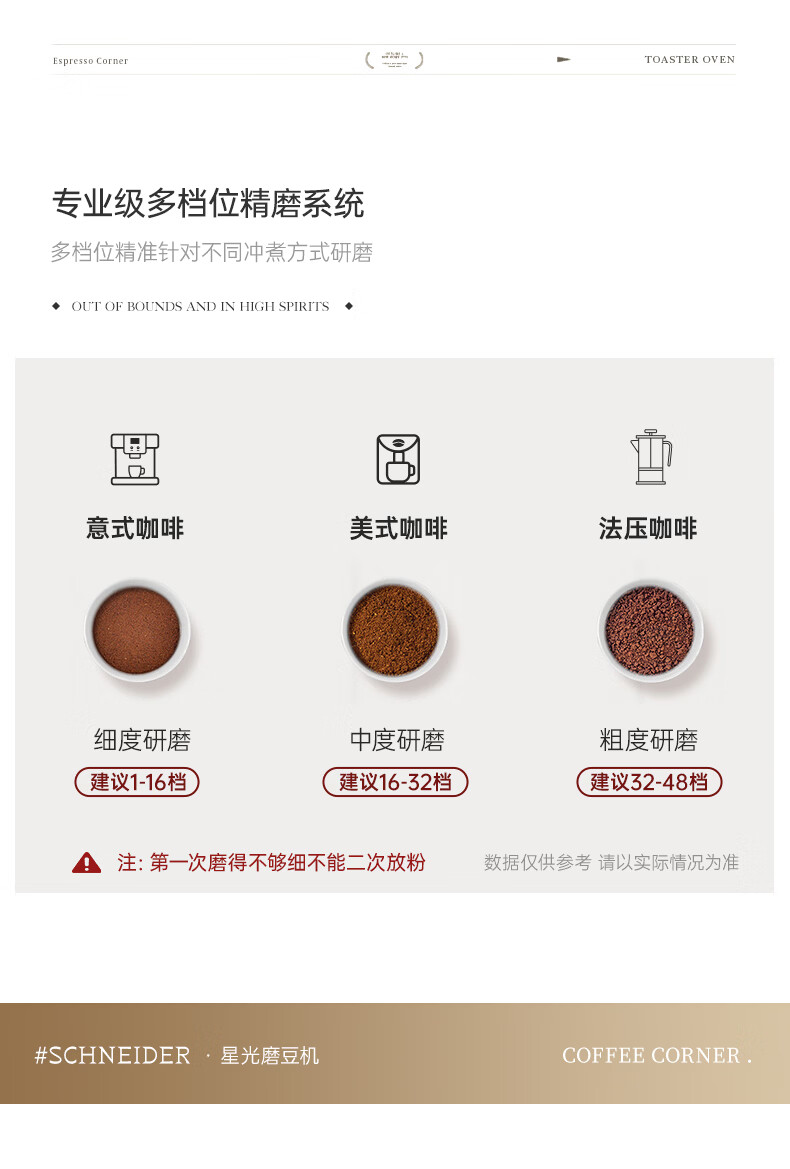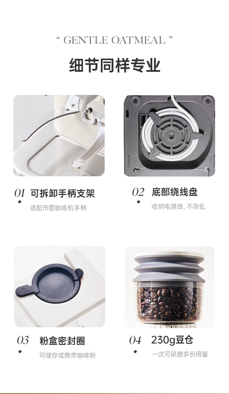SCHNEIDER全自动电动磨豆机家用意式咖啡豆防飞粉便携式研磨机SWK-XM01 智能支架款(带拍粉器,手柄支架,接粉盒)