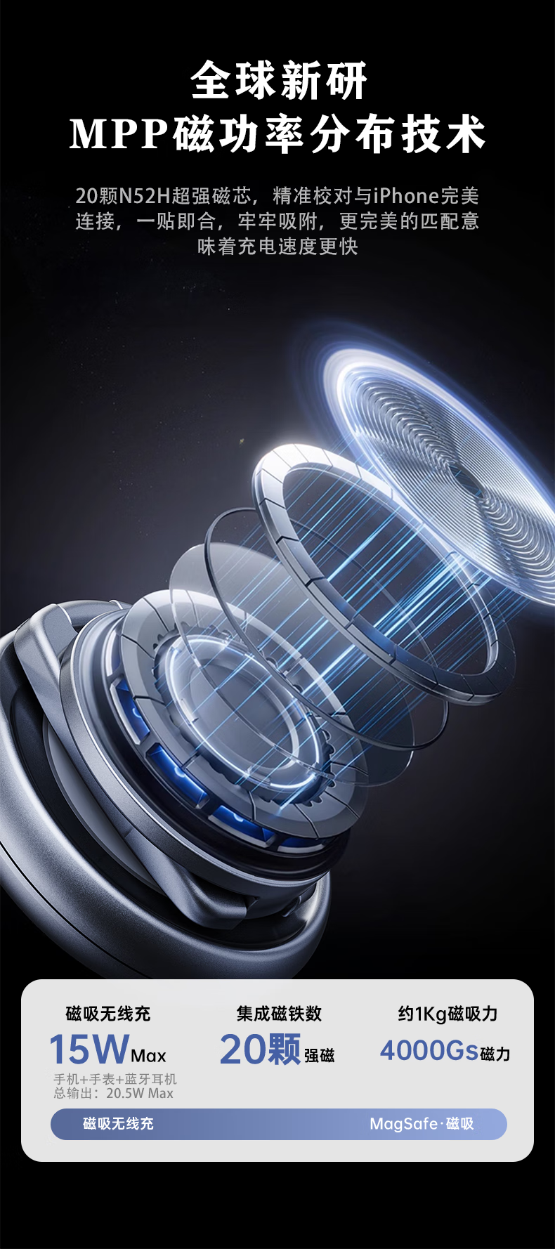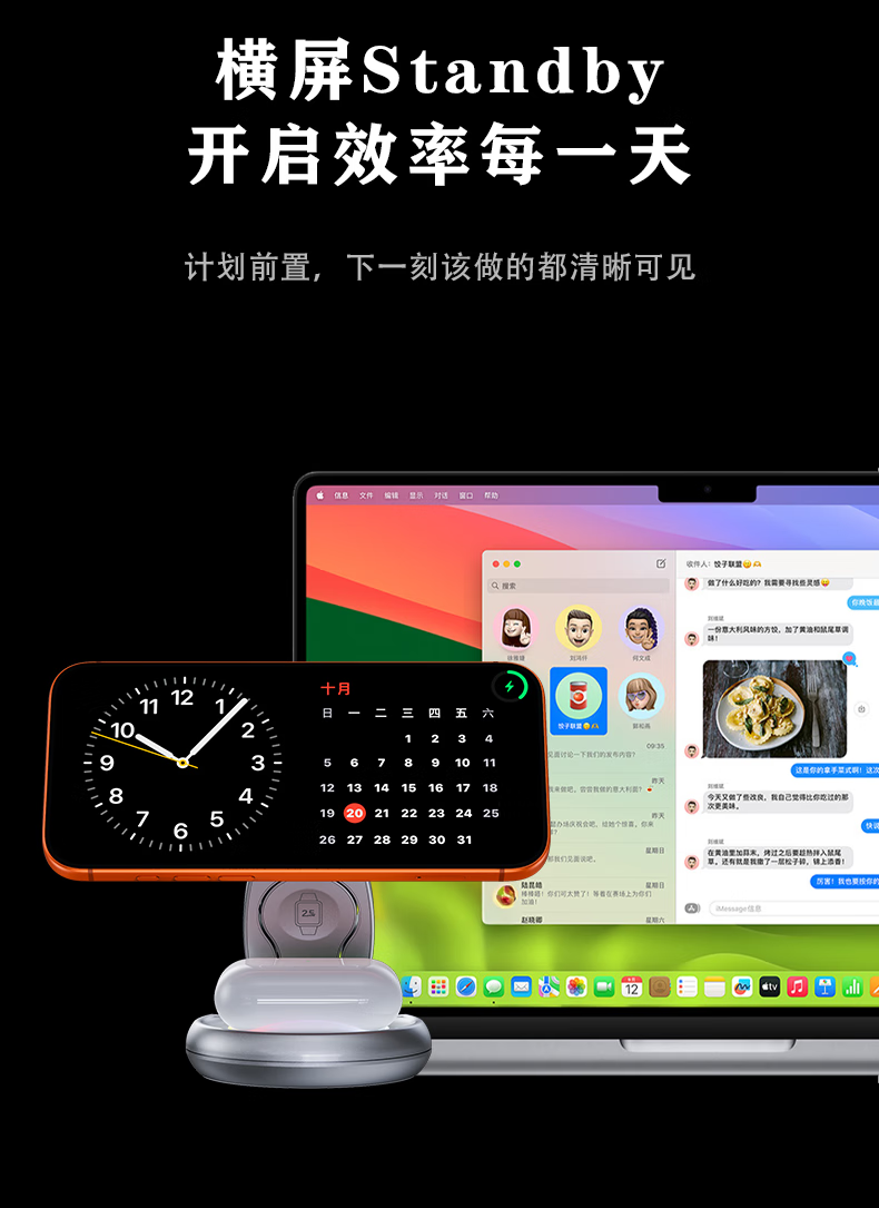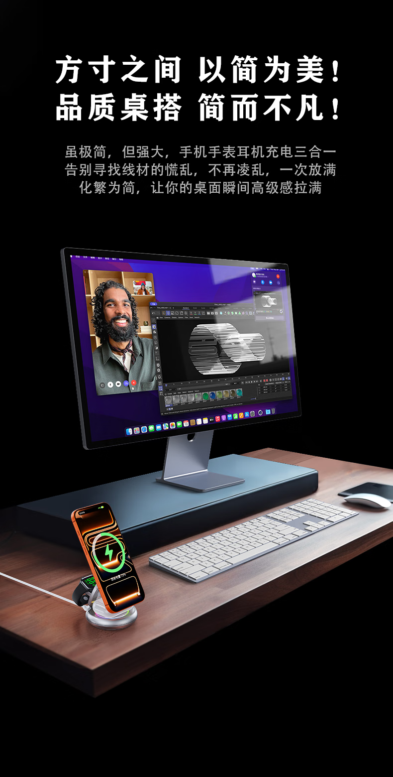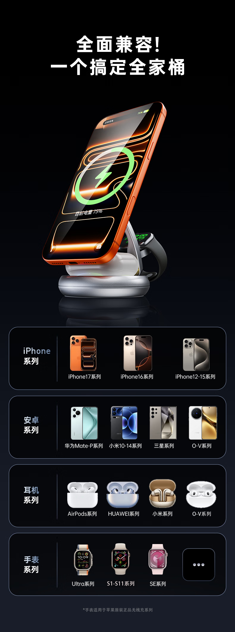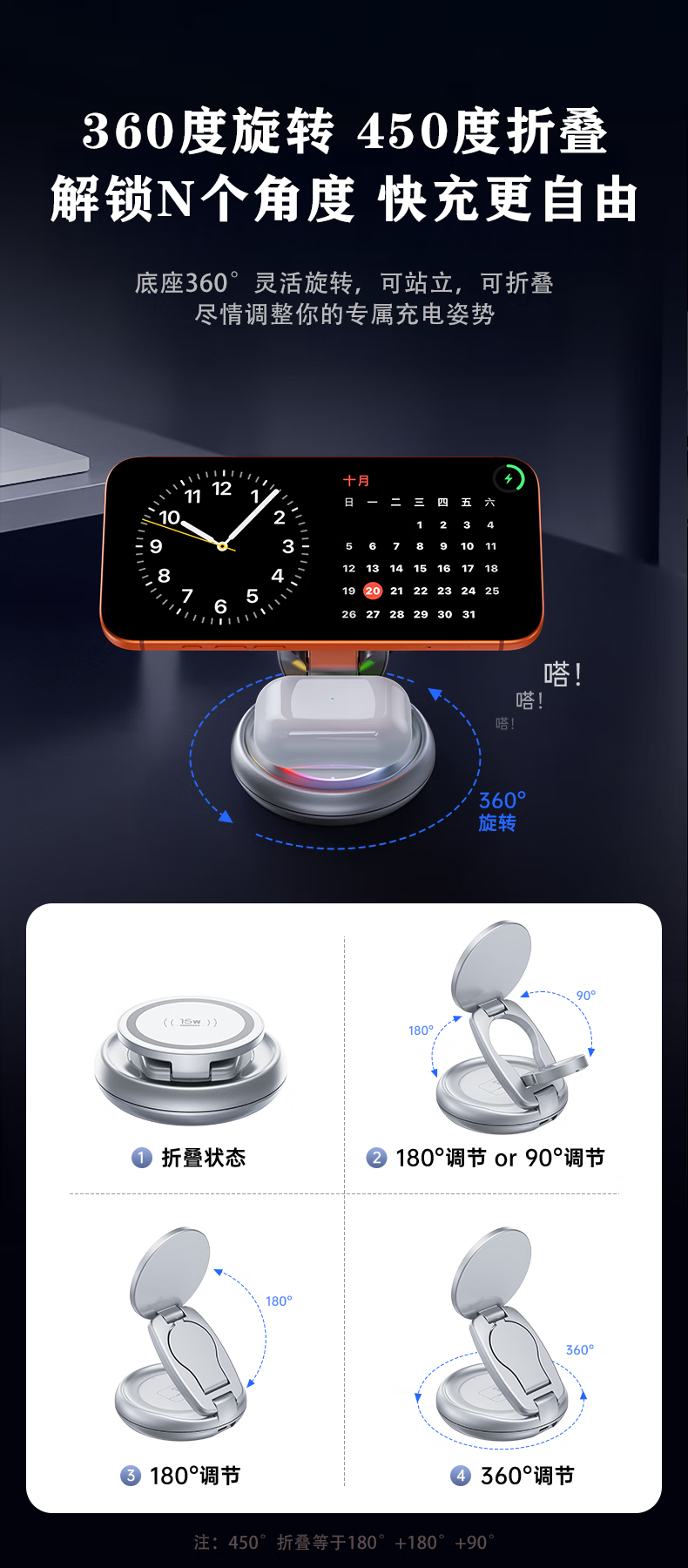 睿量苹果便携无线充电器三合一可折叠立式手机支架magsafe磁吸适用iPhone17/华为小米/iwatch手表/耳机