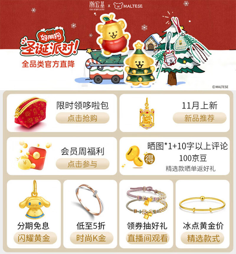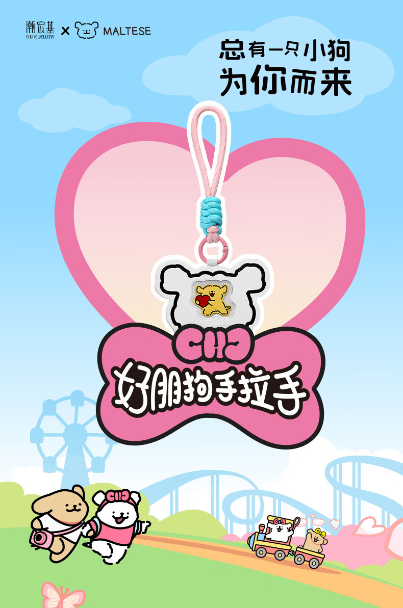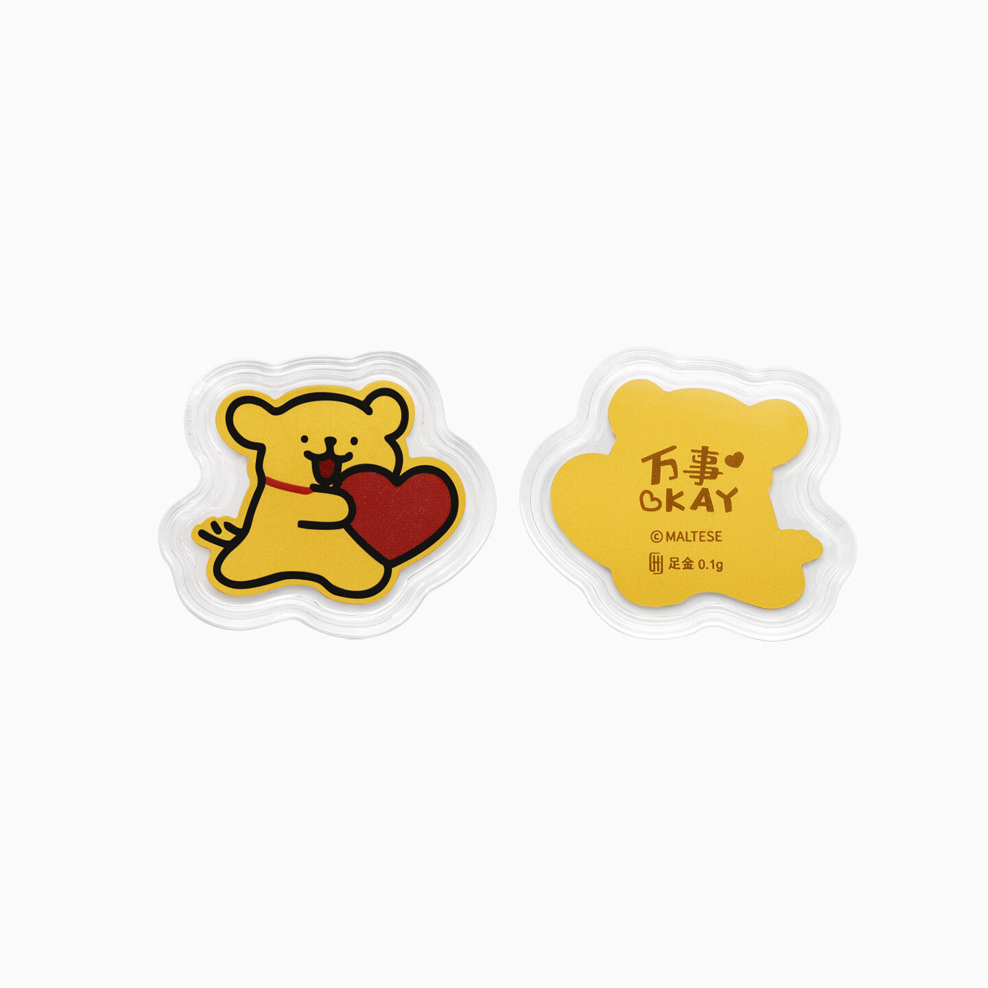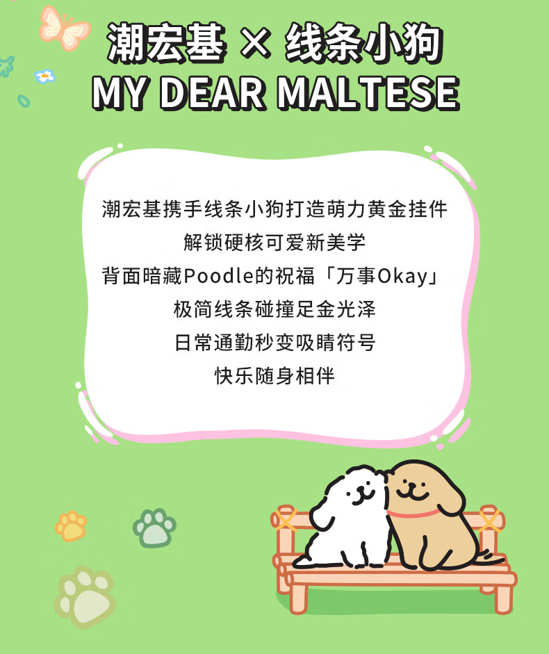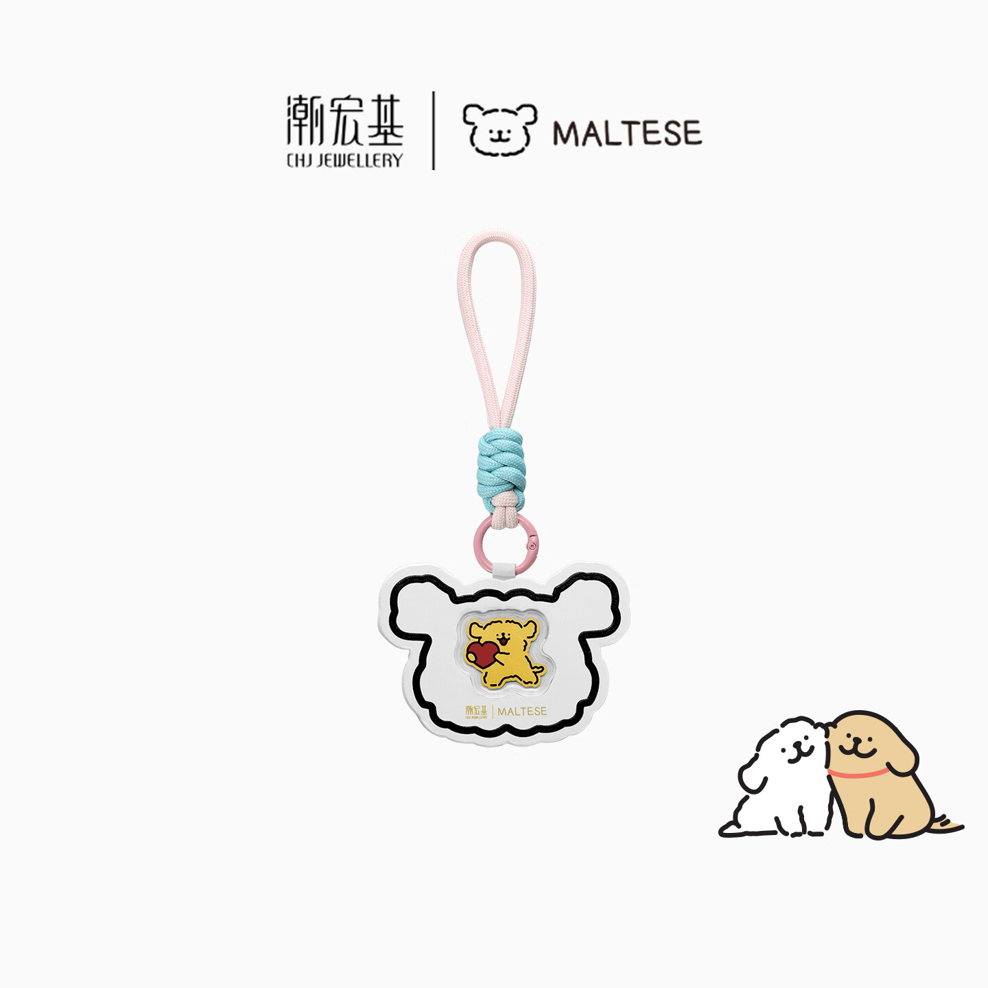 潮宏基线条小狗黄金投资金摆件足金金币好朋狗马尔济斯小金毛礼物TK 小金毛 万事OK(赠专属挂件)