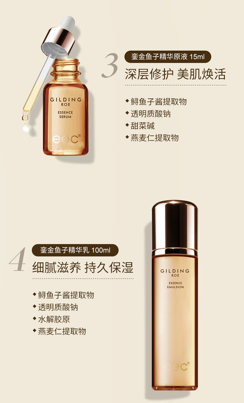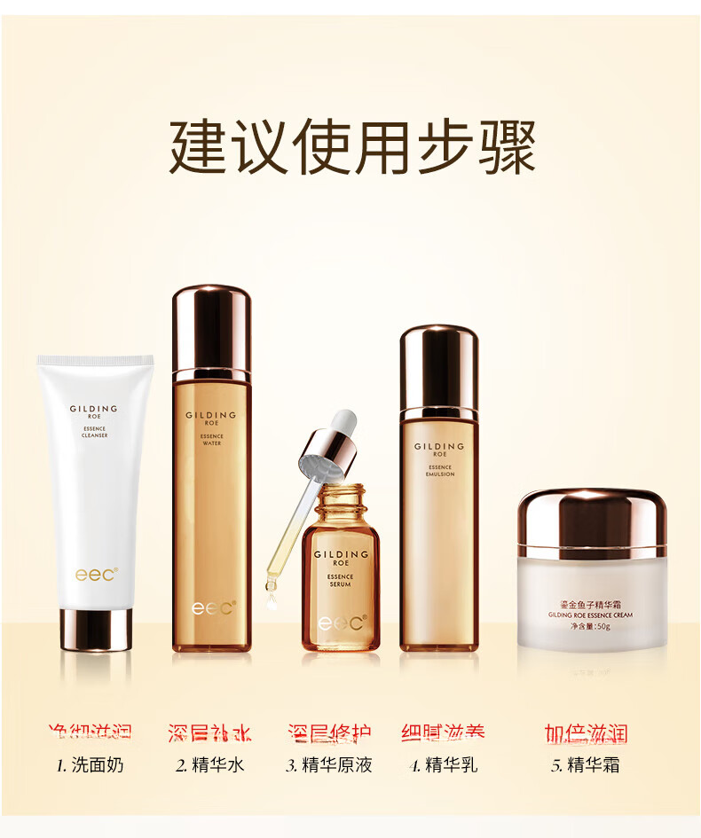 EEC鎏金鱼子酱精华护肤品五件套装补水保湿清爽滋润化妆礼盒女生礼物 1套 鎏金套盒【鱼子面霜】
