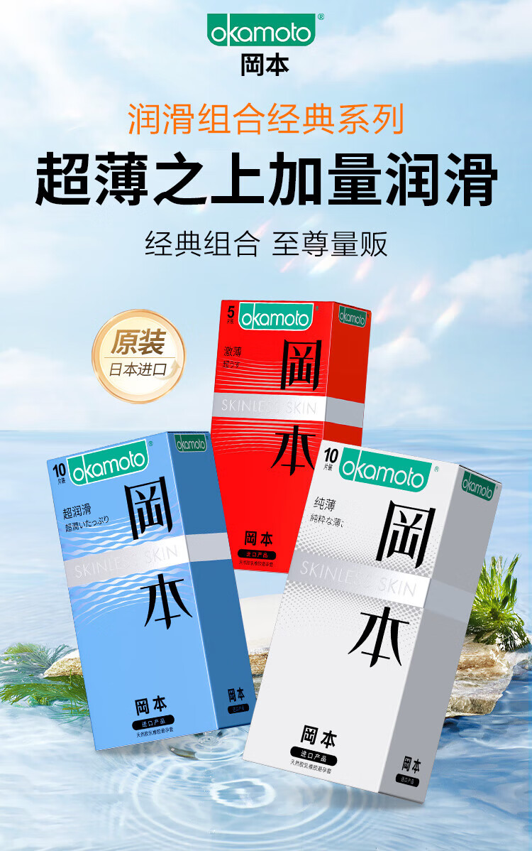 冈本(OKAMOTO)避孕套 skin安全套套夫妻房事延时持久成人性用品 【尽享30片】超润滑20+纯薄10