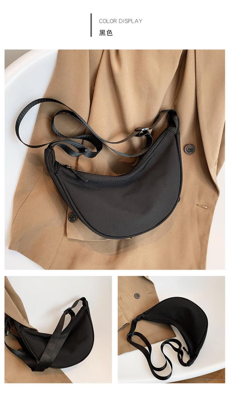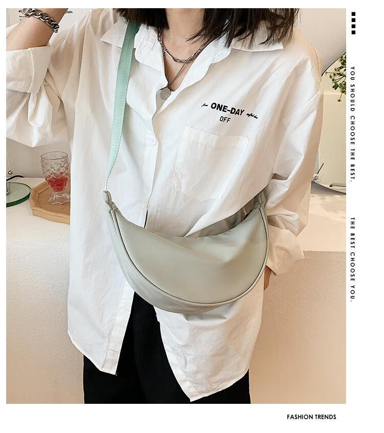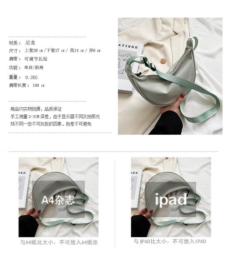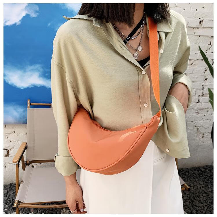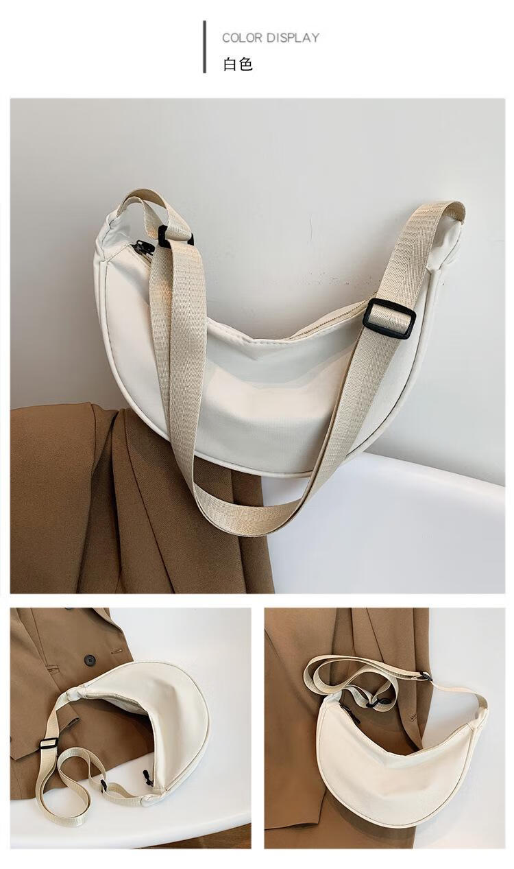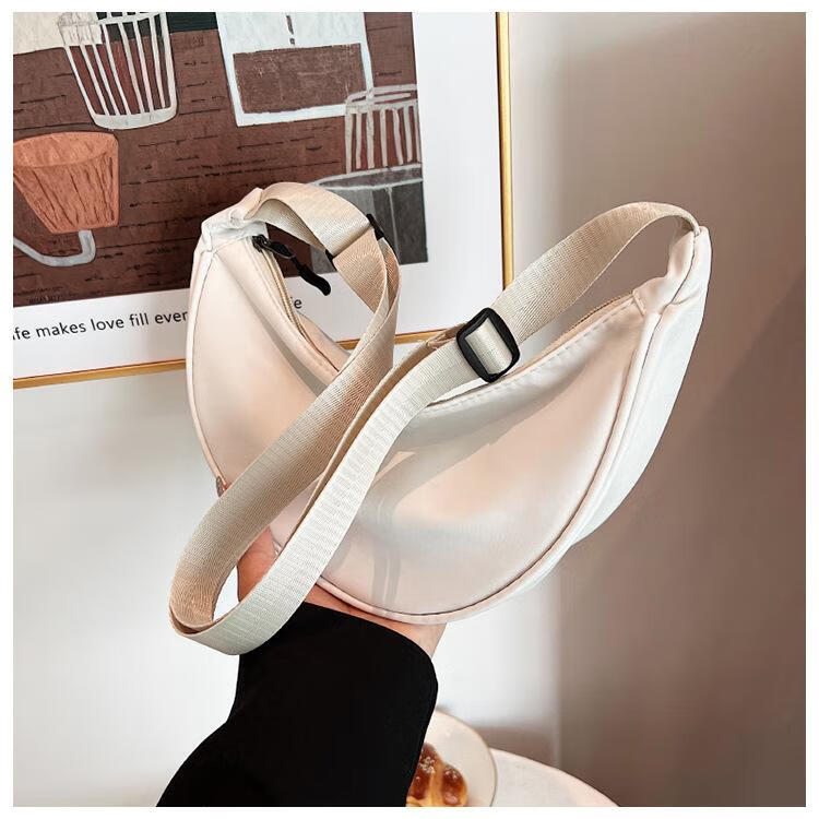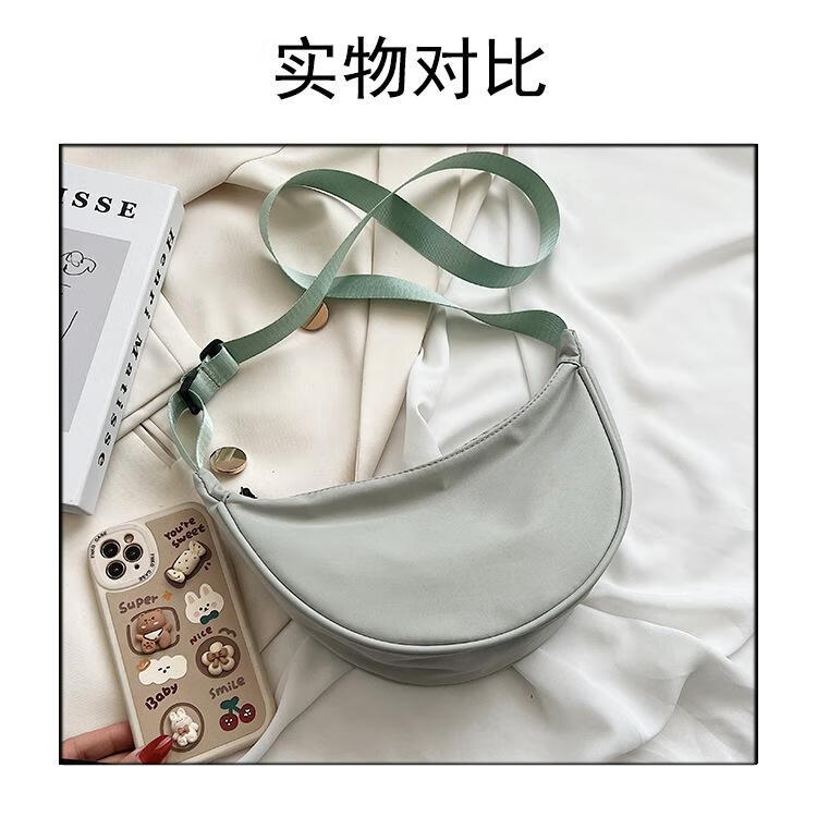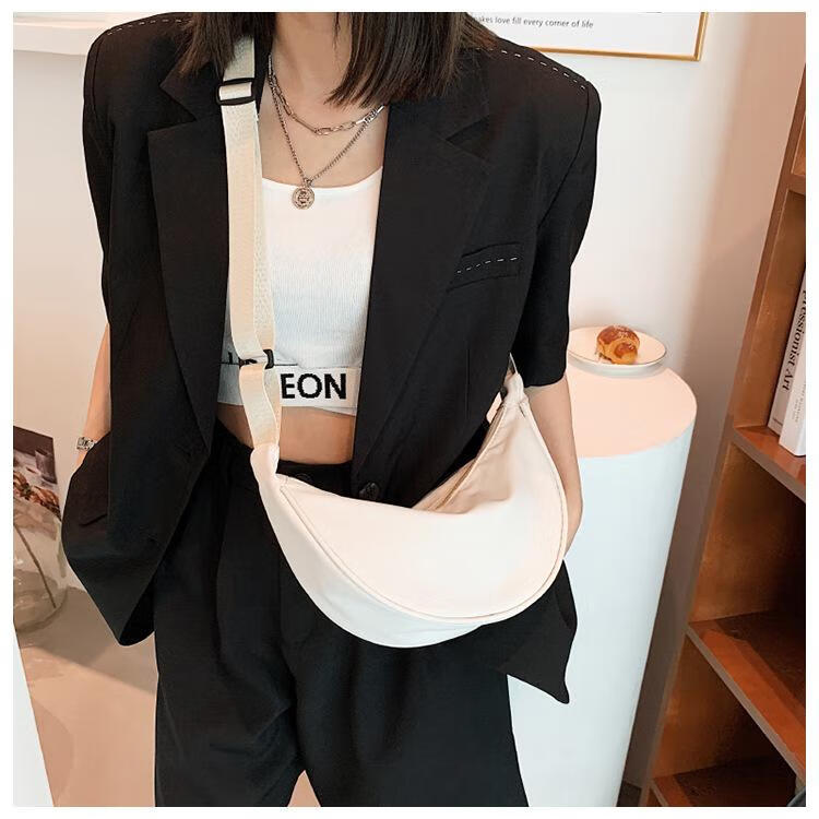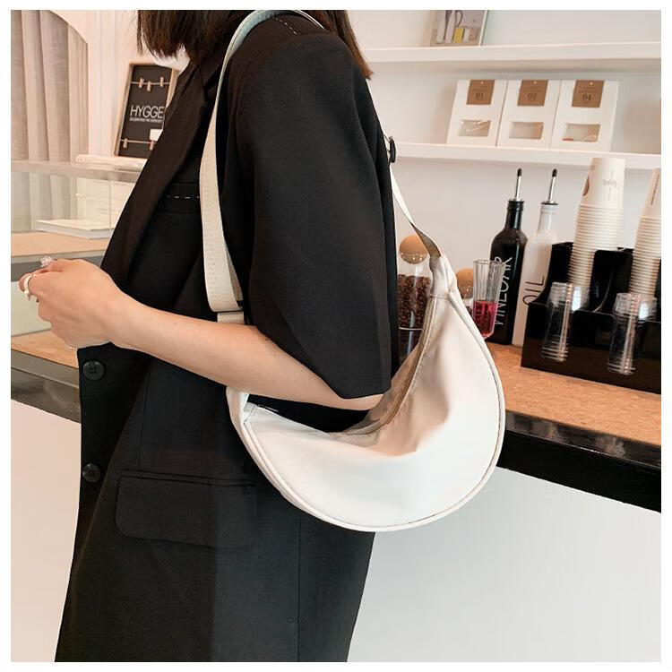 尼龙斜挎包包女2024新款潮饺子包轻便小挎包腋下包单肩帆布包Bags 白色(1个装)