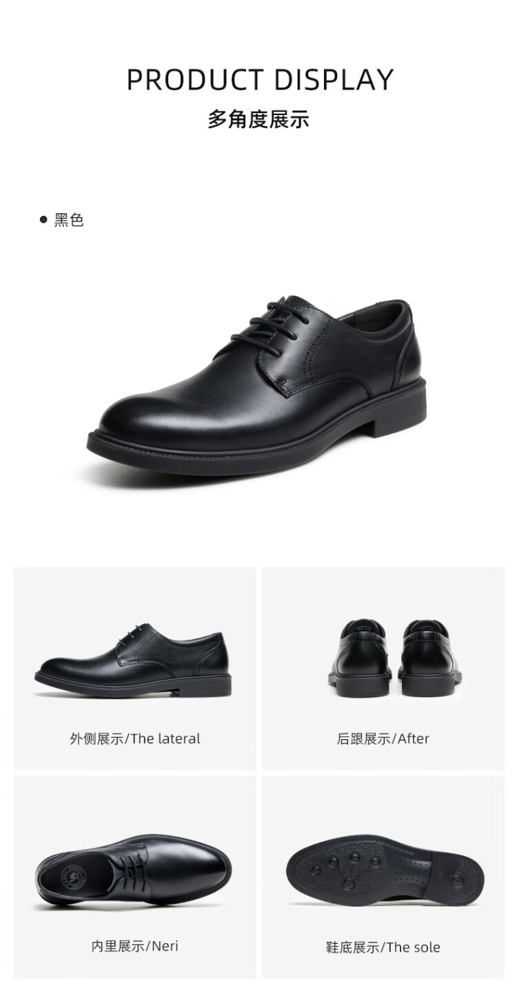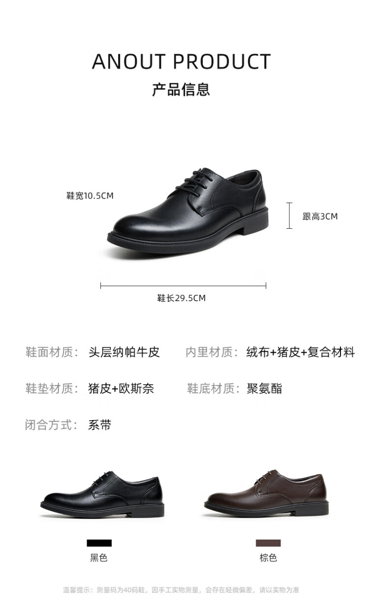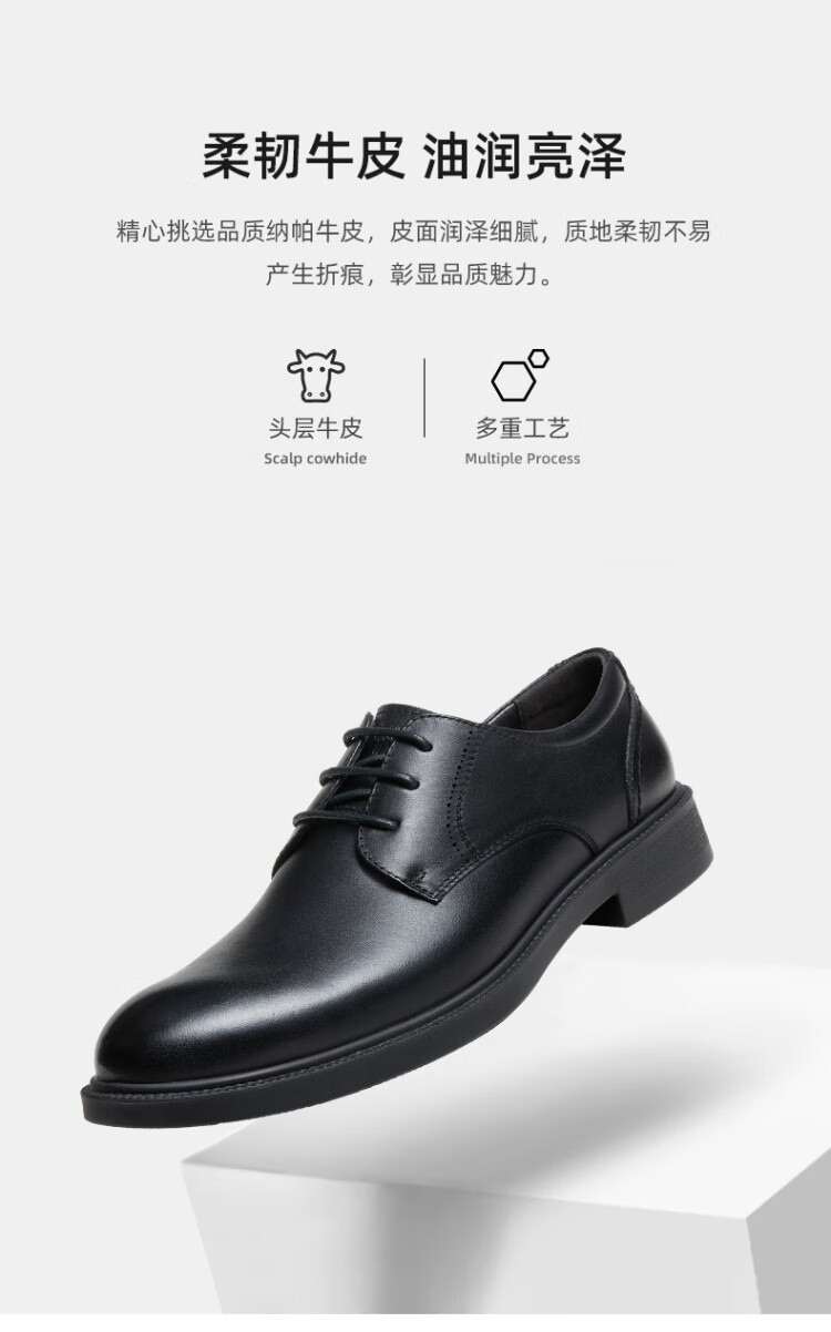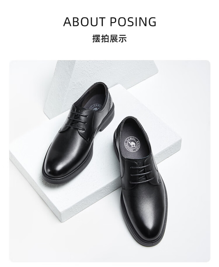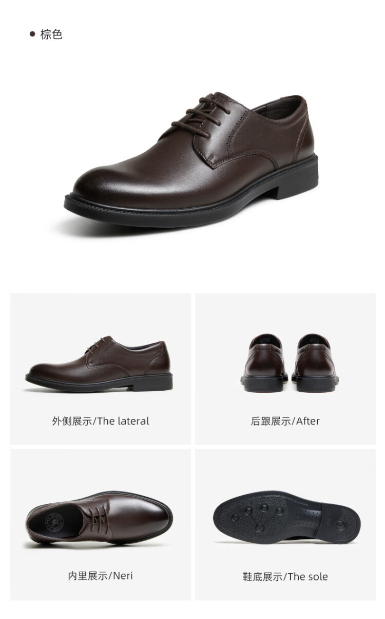 骆驼男鞋春季新款正装皮鞋男士真皮商务英伦内增高休闲正装皮鞋 GE12226983,棕色 41 (265mm)