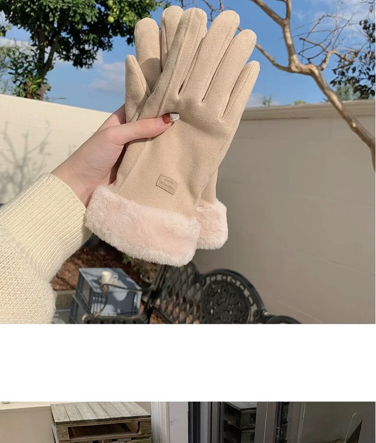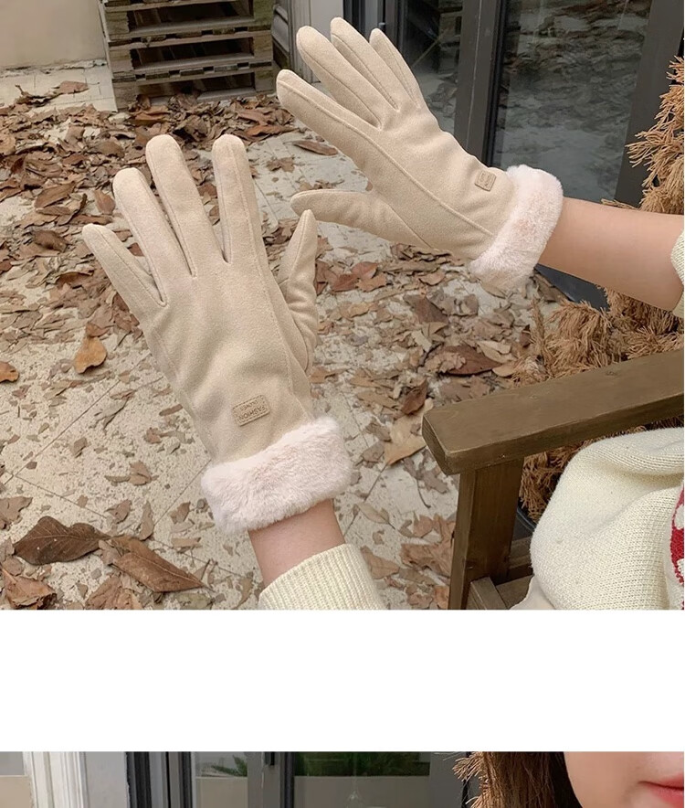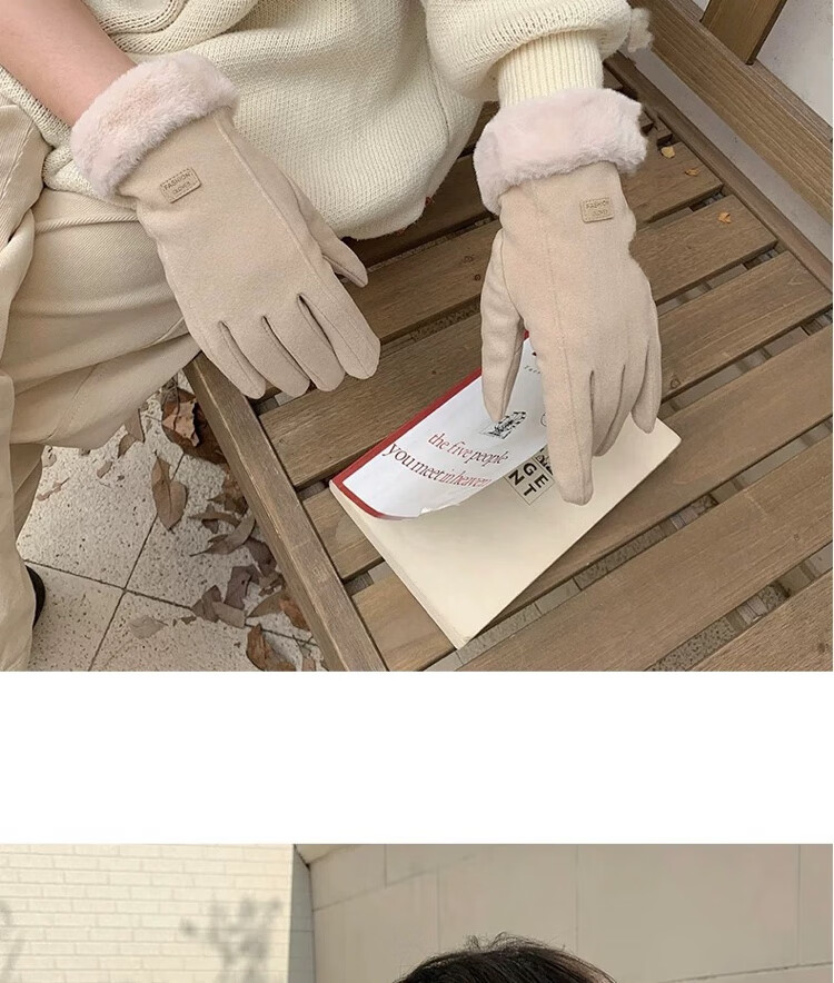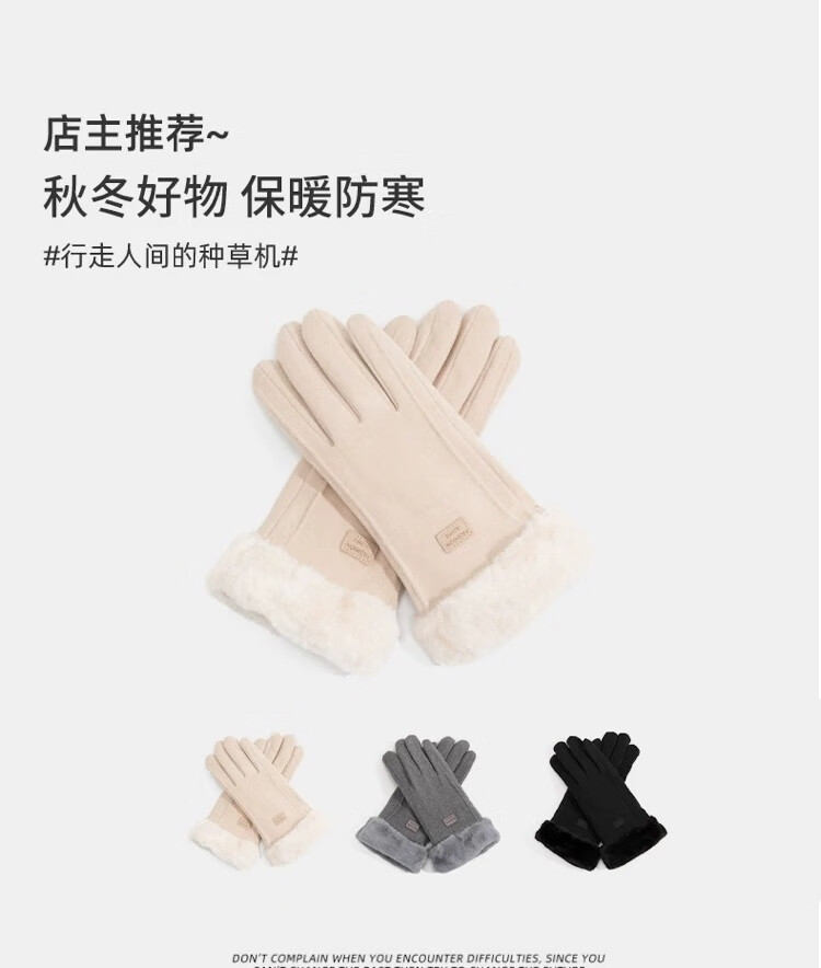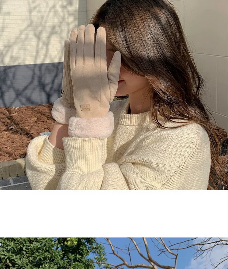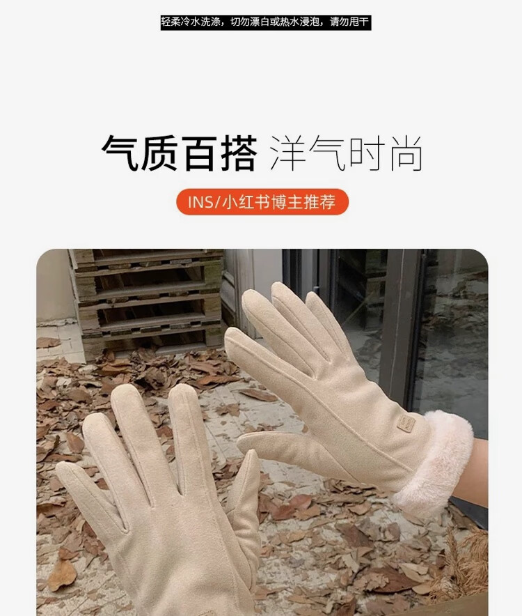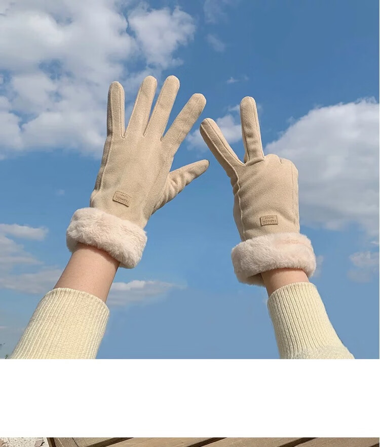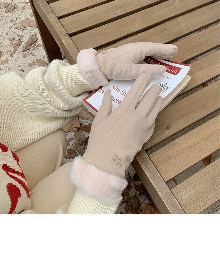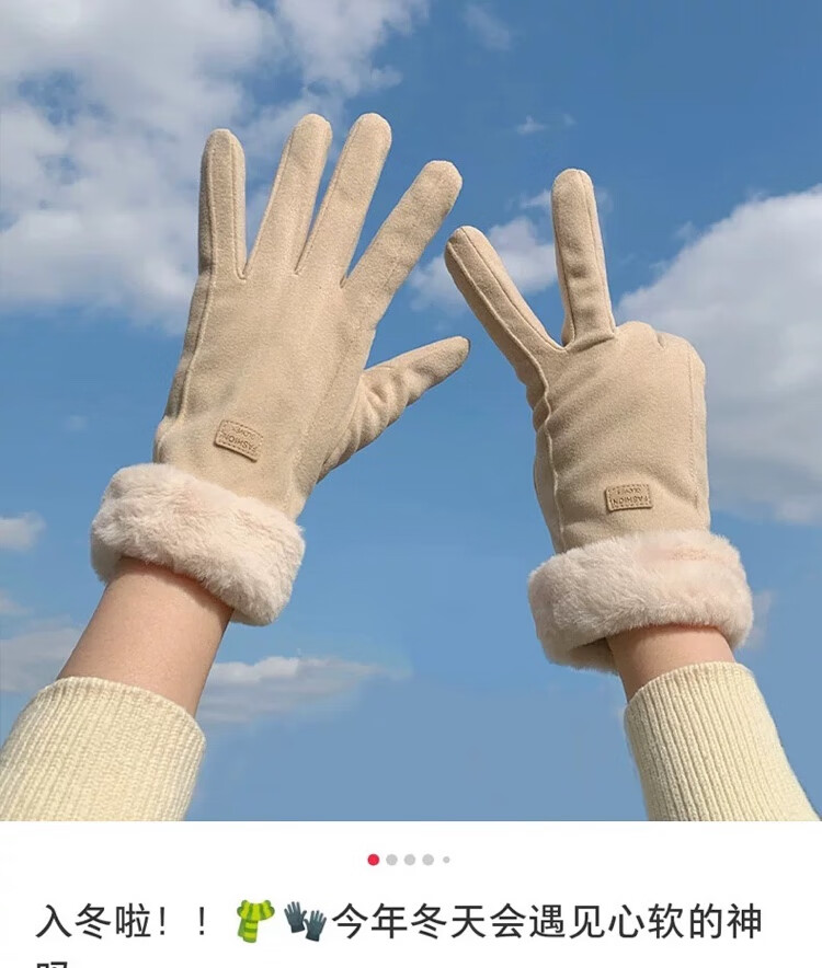 气质手套女士冬季骑行保暖加绒加厚触屏学生骑车防风防寒 黑色 均码