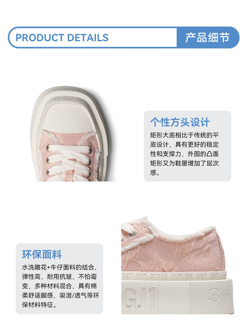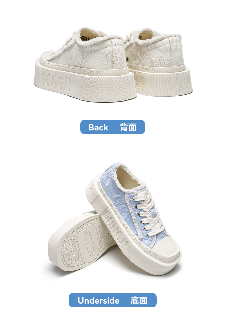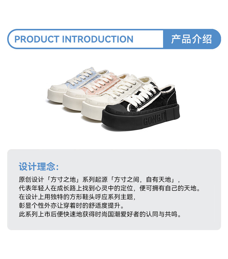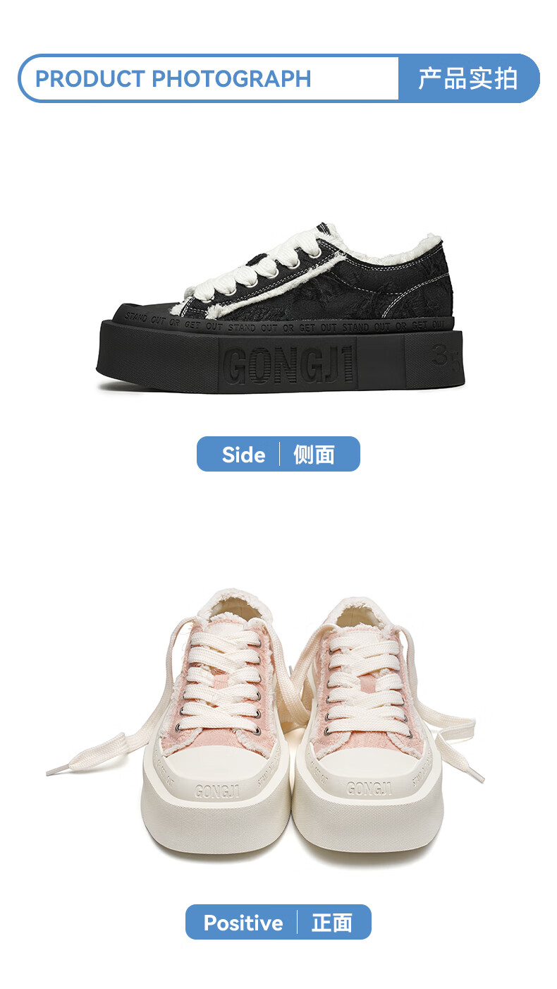 共迹gongji周深同款厚底帆布鞋厚底鞋女鞋秋季2025增高板鞋小白鞋运动休闲鞋 桃夭粉 /偏大一码 40