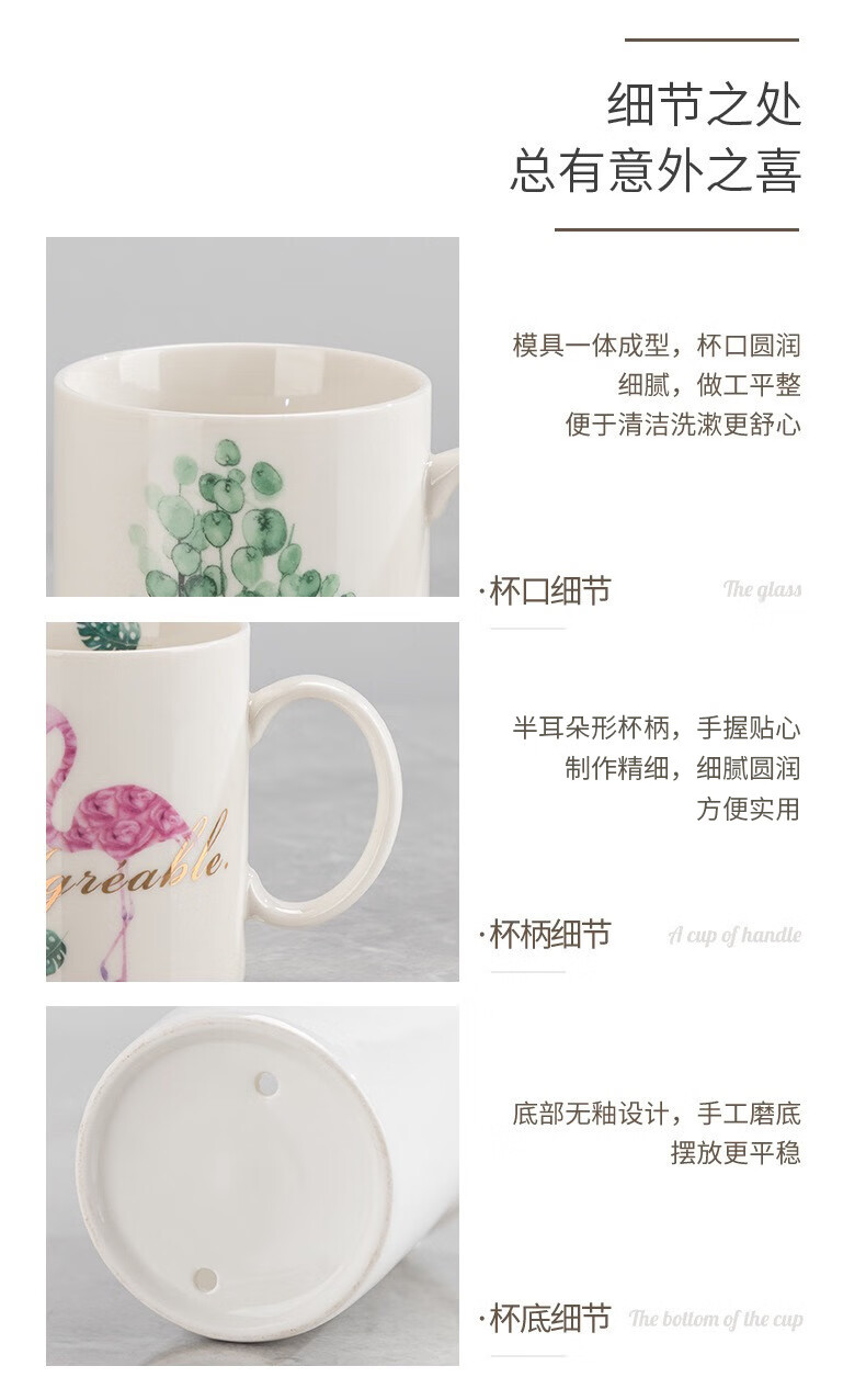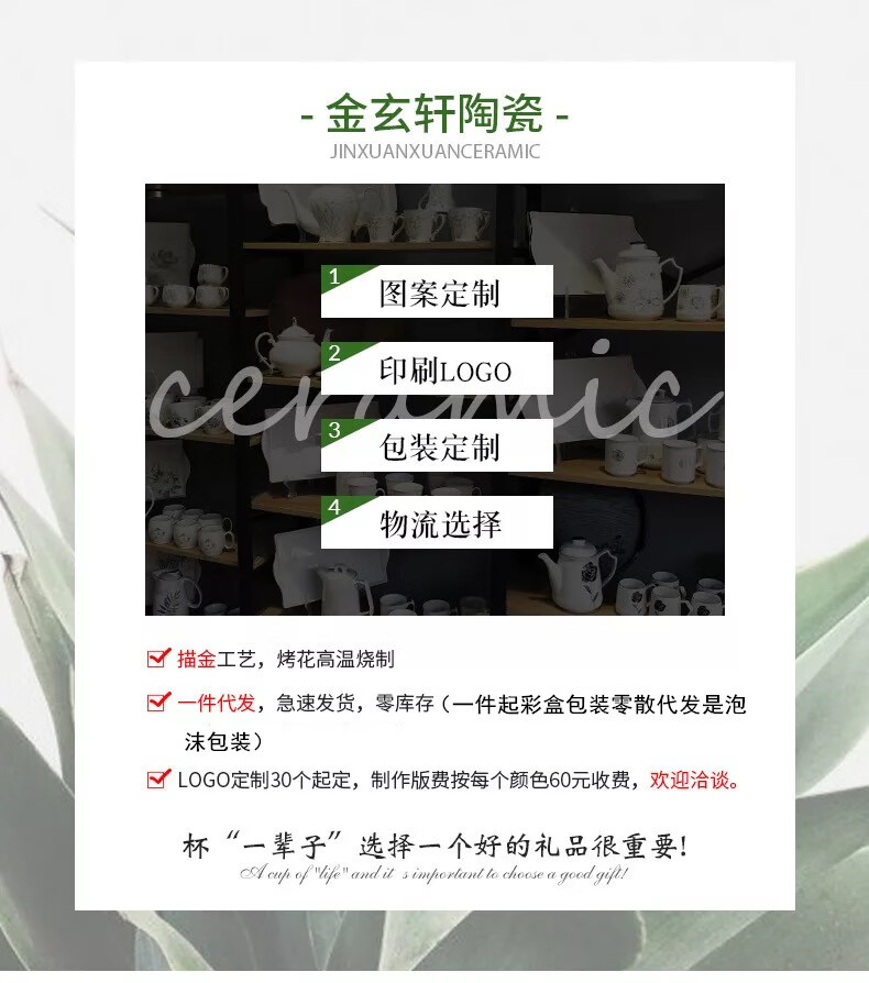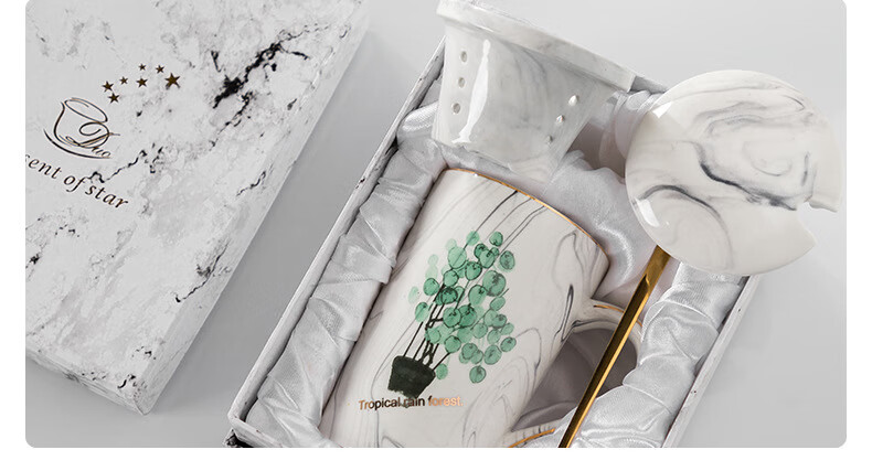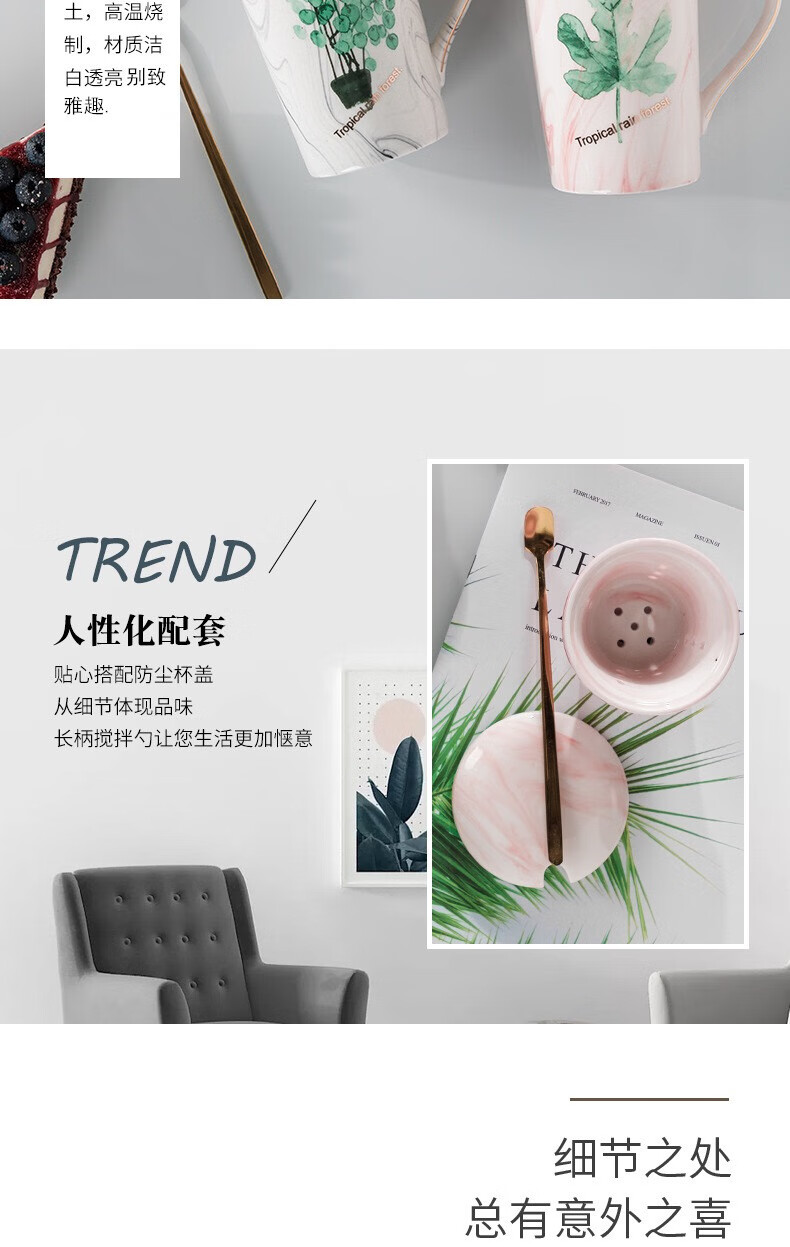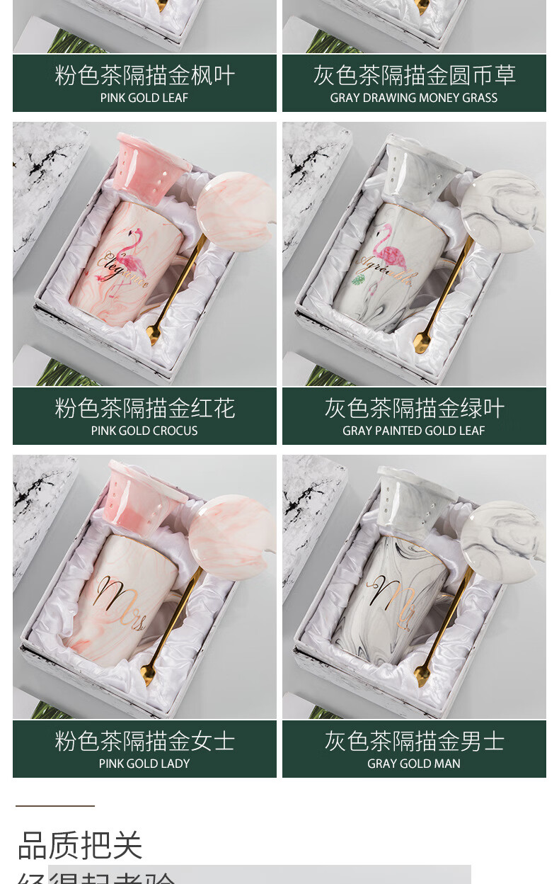 【严选好货】创意日式潮流陶瓷咖啡杯家用带勺盖家用礼品马克杯伴 描金圆币草灰茶隔+勺盖 401-500ml