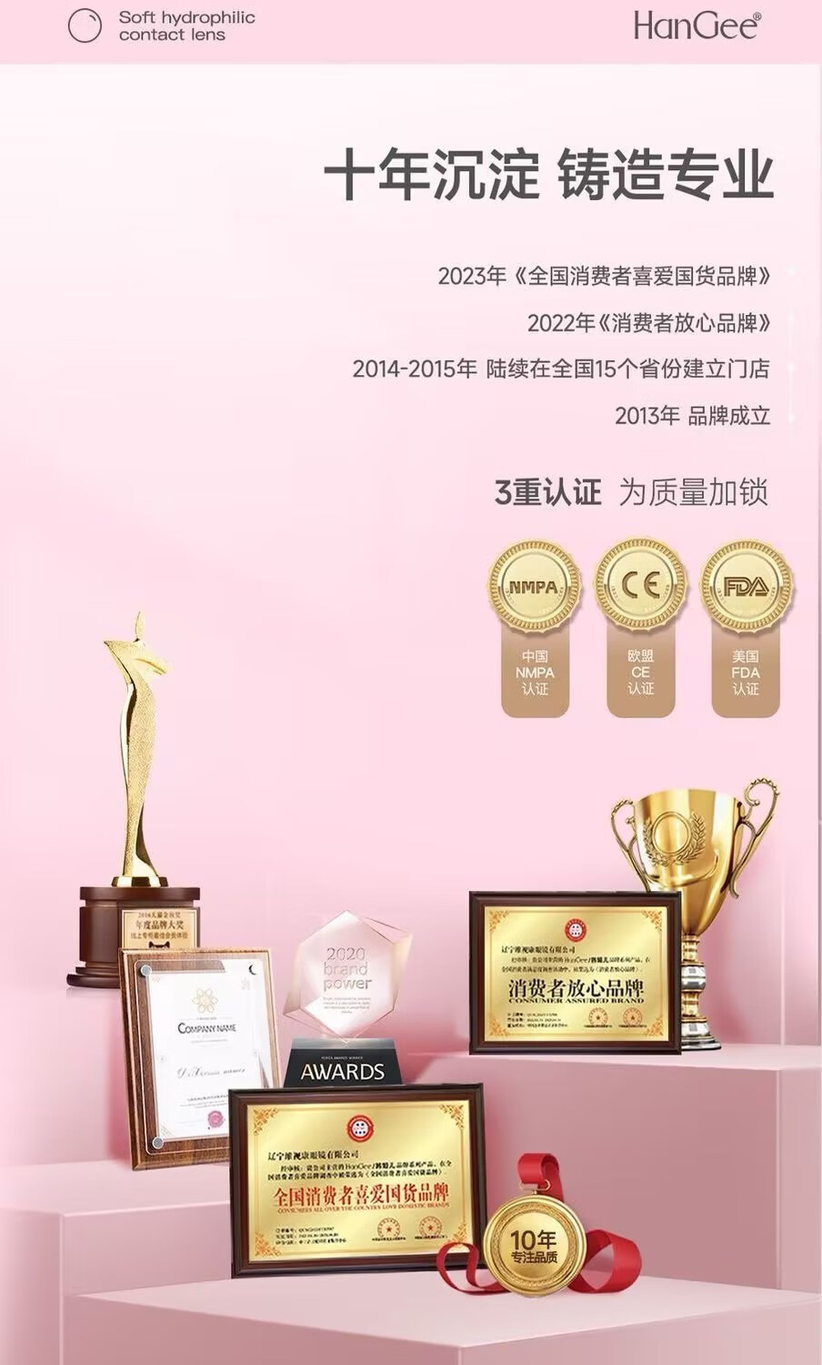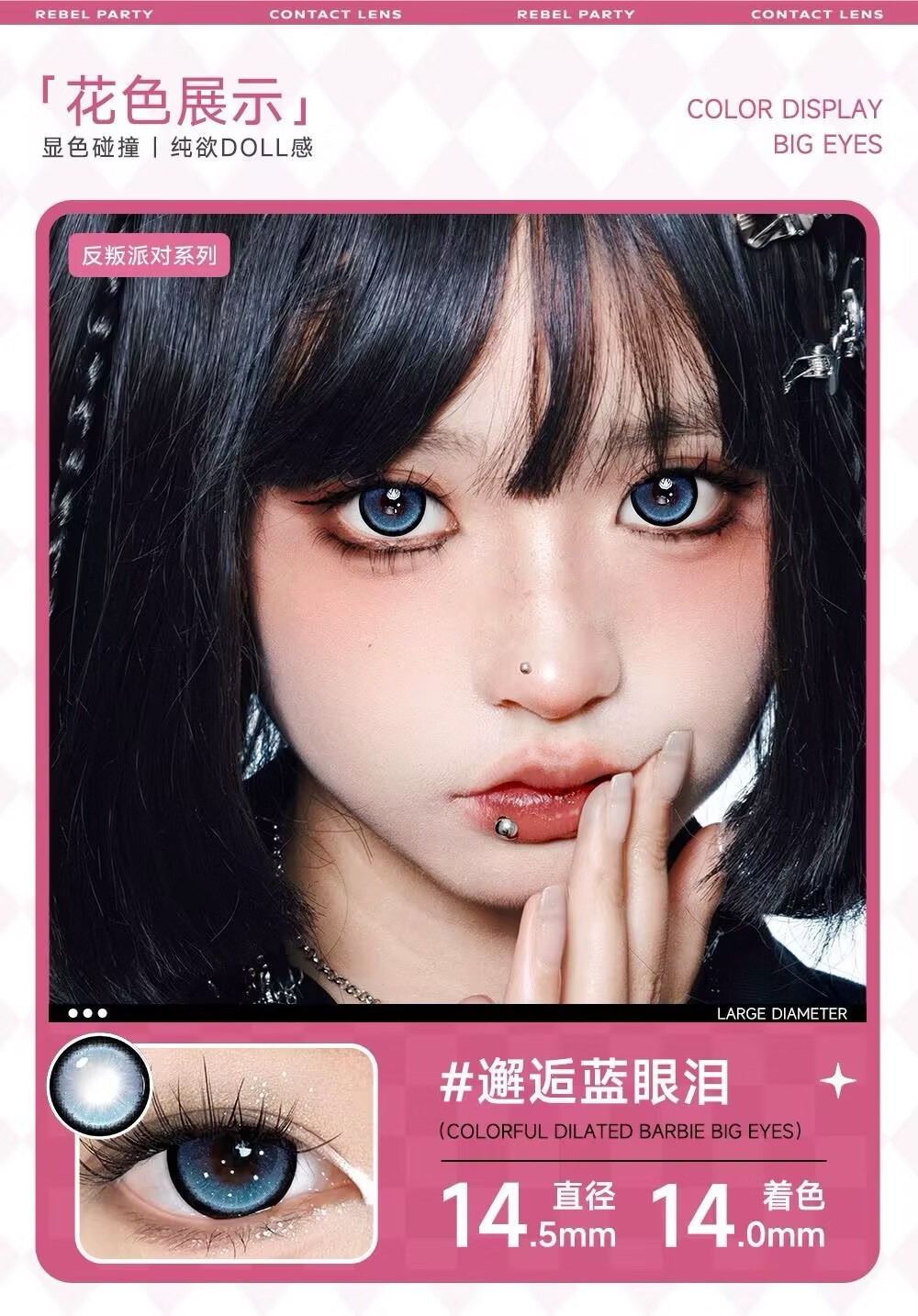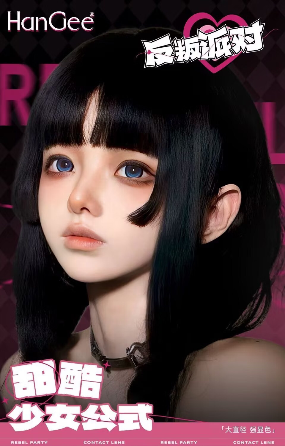 韩姬儿HanGee大直径14.5mm美瞳半年抛2片蓝色高光深瞳锁边隐形近视眼镜 病娇人偶-14.5-FP09【赠护理液+护理盒】 375度