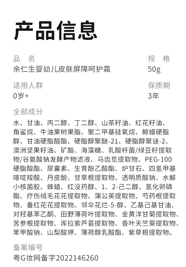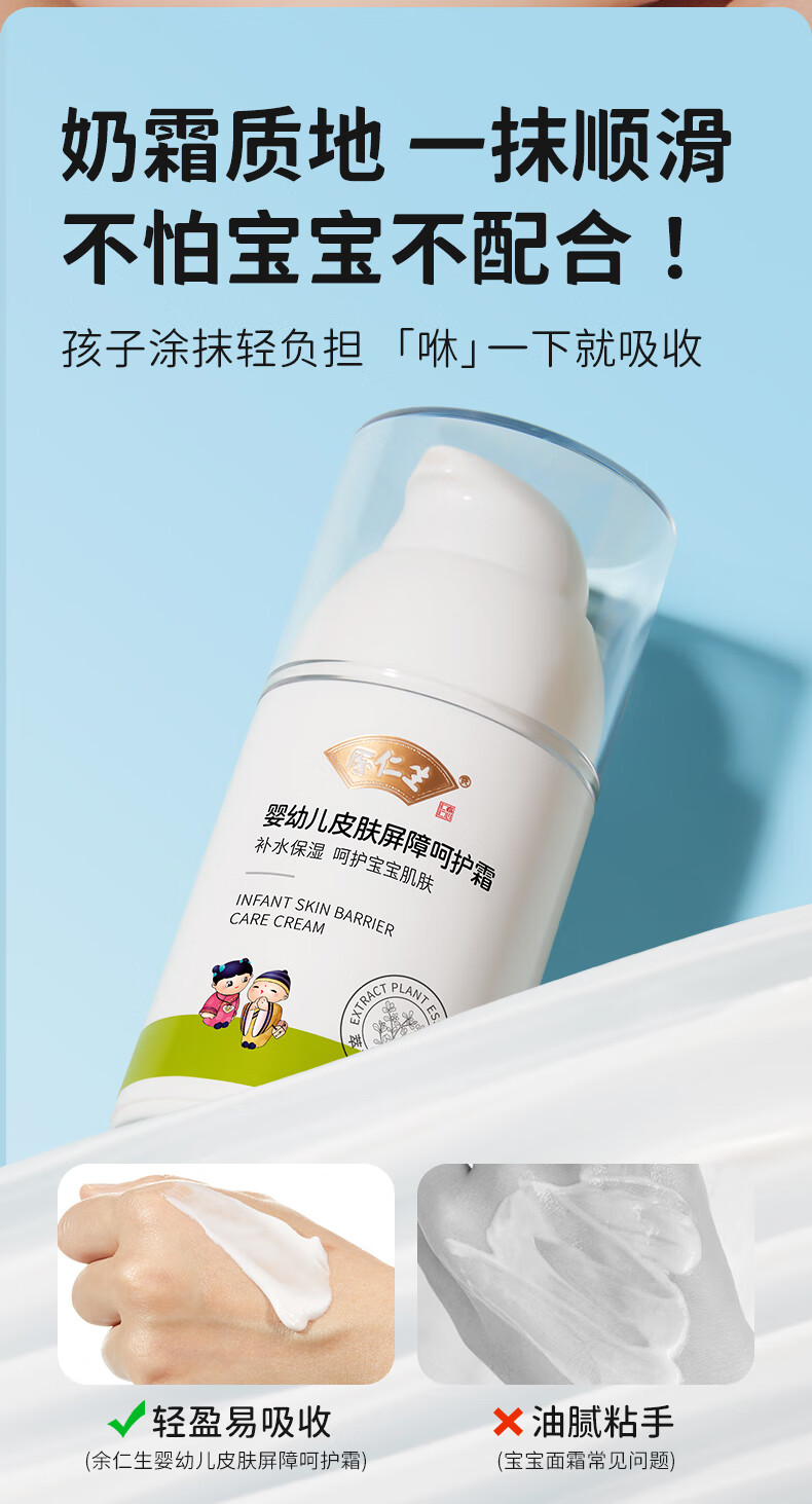 余仁生宝宝屏障呵护霜舒缓润护霜护肤男童女童特润保湿霜山茶油儿童面霜 【强化屏障 敏感肌可用】屏障呵护霜50g*1瓶送试用装