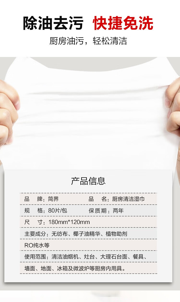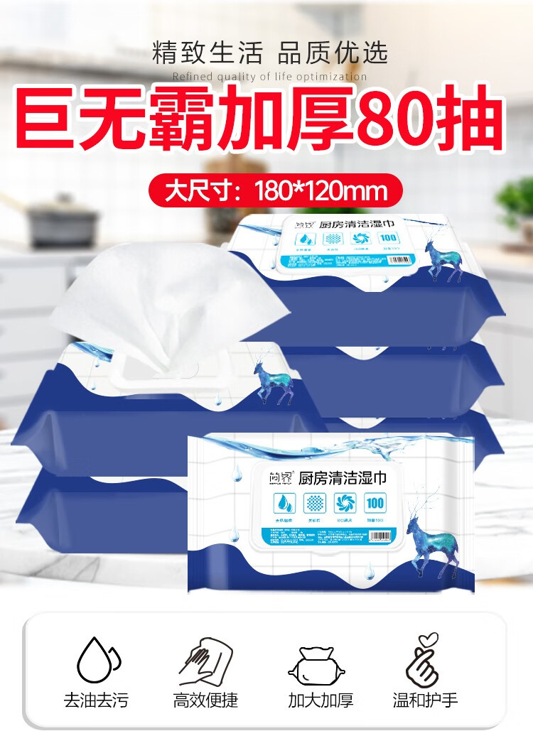 爱肤佳(aifujia)厨房专用清洁湿巾厨房用纸去油去污擦吸油烟机专用湿纸巾 80抽X5包【平纹180*120mm】