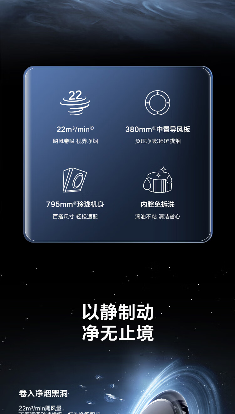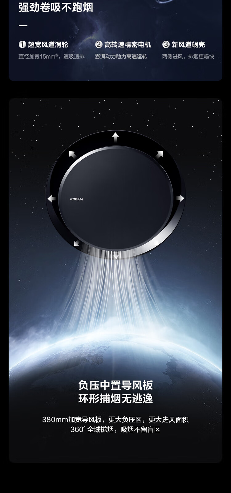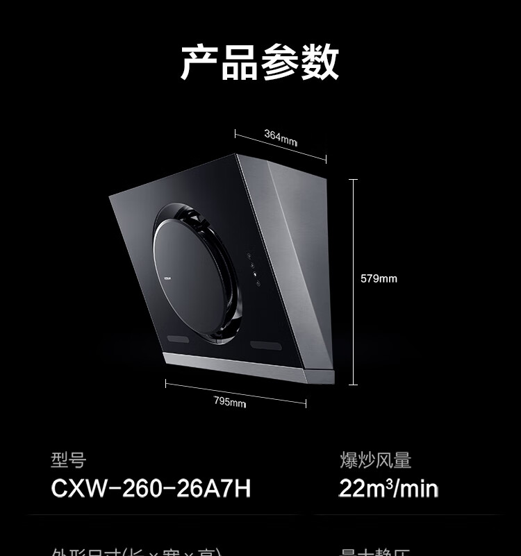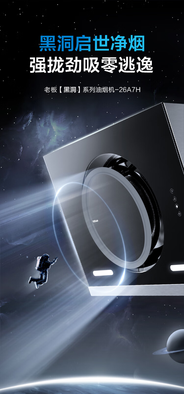 老板(Robam)油烟机26A7H抽油烟机22风量黑洞系列大吸力油烟机家用侧吸式升级款一级能效 政府补贴20%