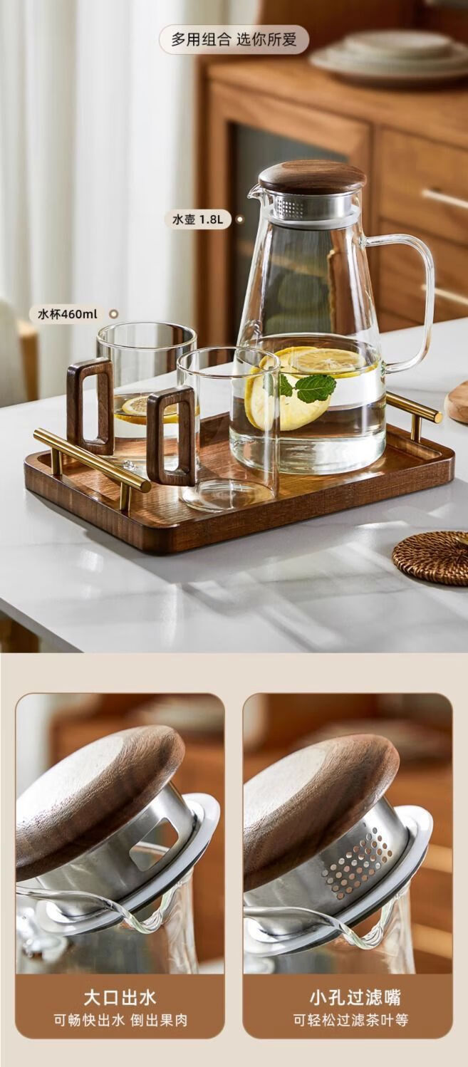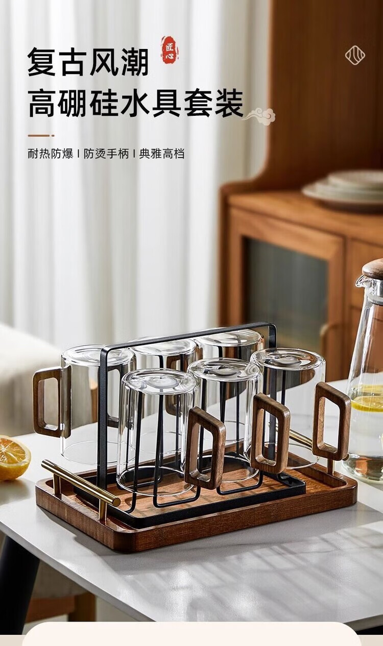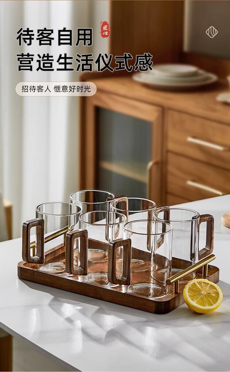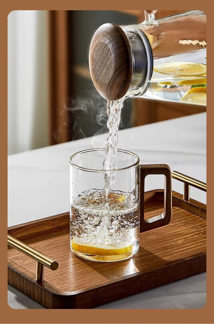 简漾耐高温耐热茶水分离玻璃把手水杯玻璃杯办公个人专用办公室茶杯 胡桃木实木把手杯1支 透明色(500毫升)