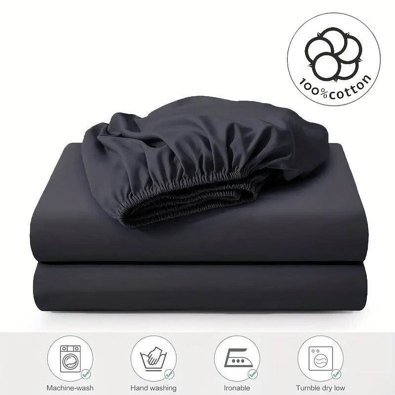 浪莎(LangSha)纯色全棉床笠罩单件纯棉加厚床罩2025新款床单床垫套罩四季通用 黑色 单床笠 200cm*220cm