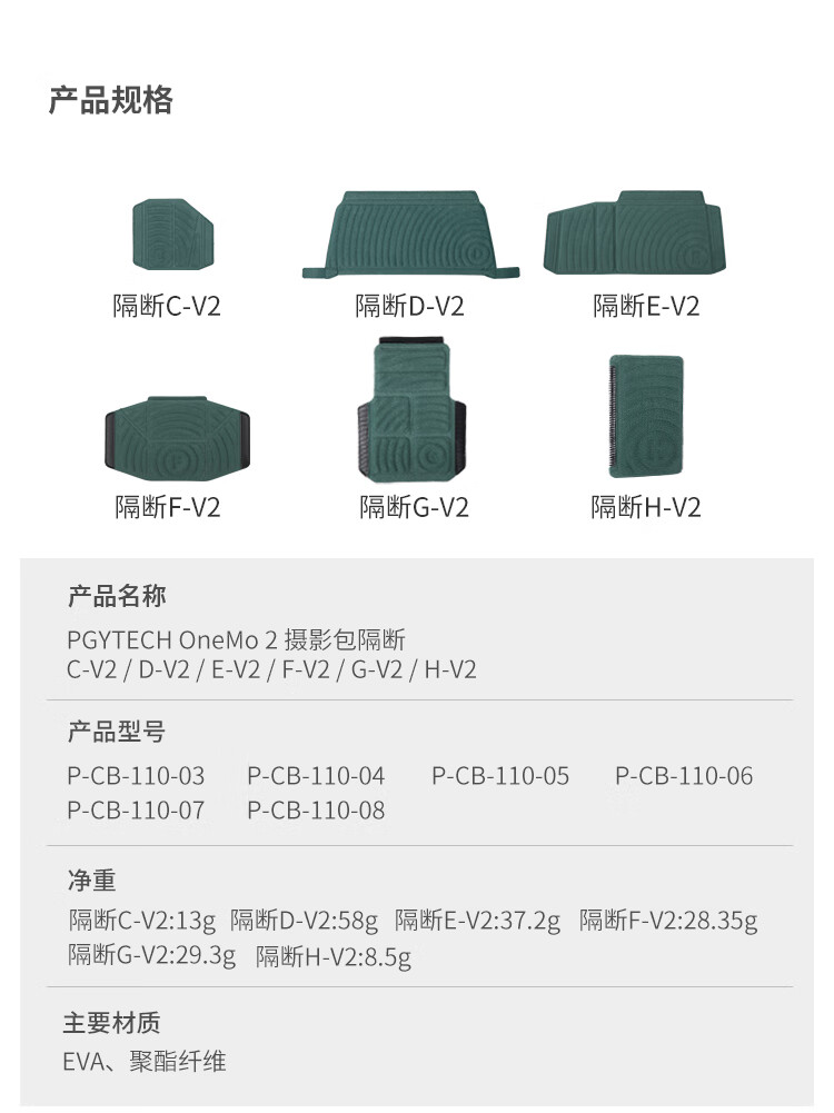 PGYTECHonemo2摄影包配件隔板摄影包隔板腰带背包配件 隔断H-V2