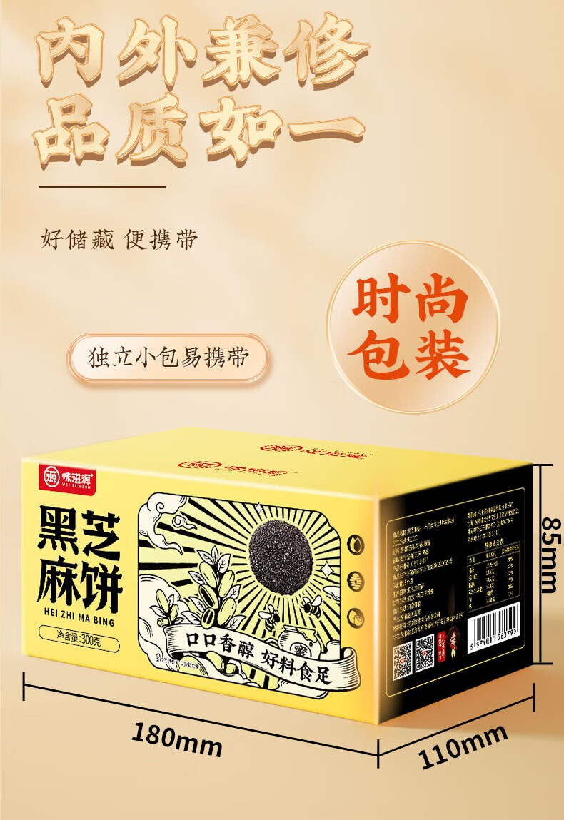 味滋源传统美味小吃 休闲零食下午茶小点心 追剧宅家饱腹代餐美食 黑芝麻饼300g 1件