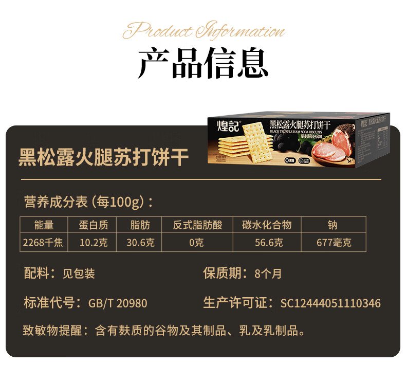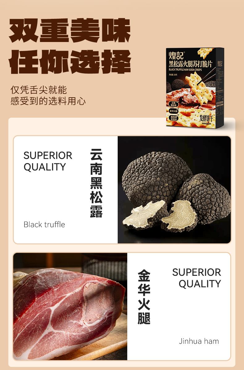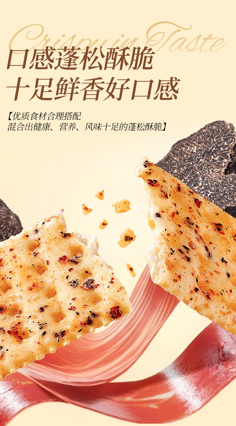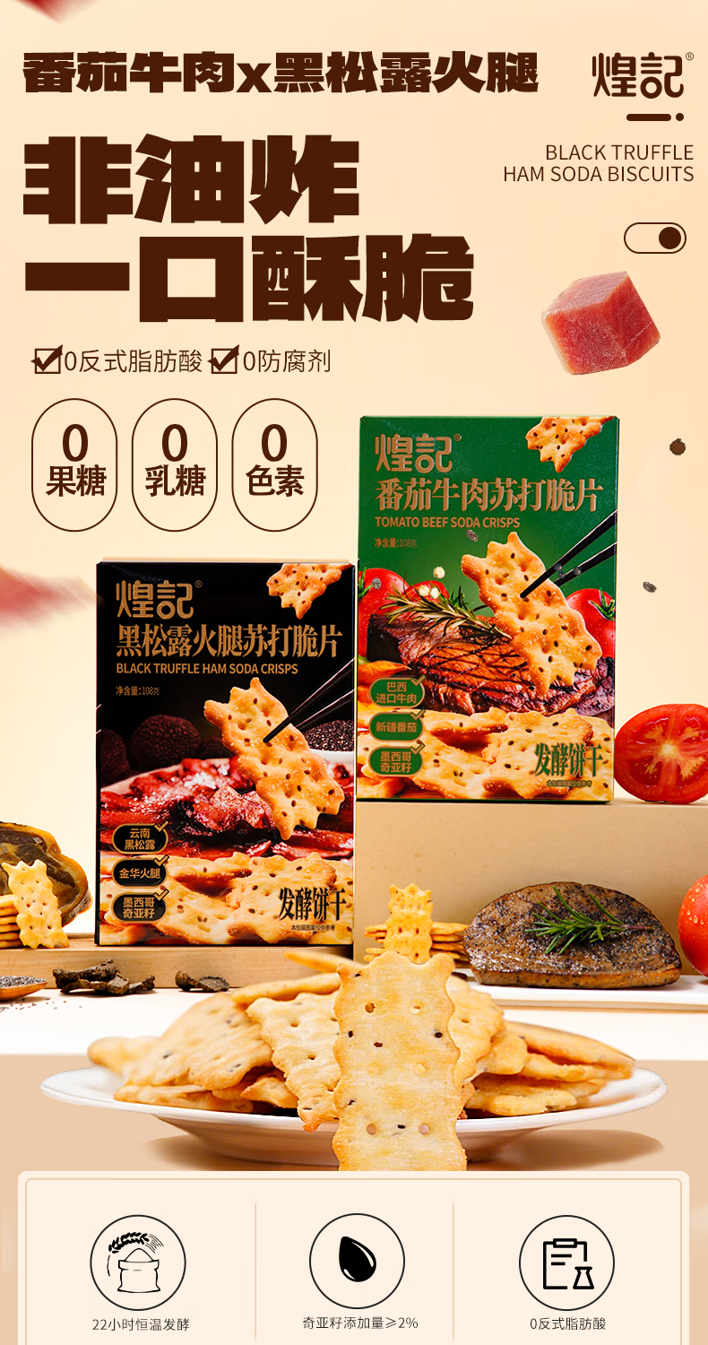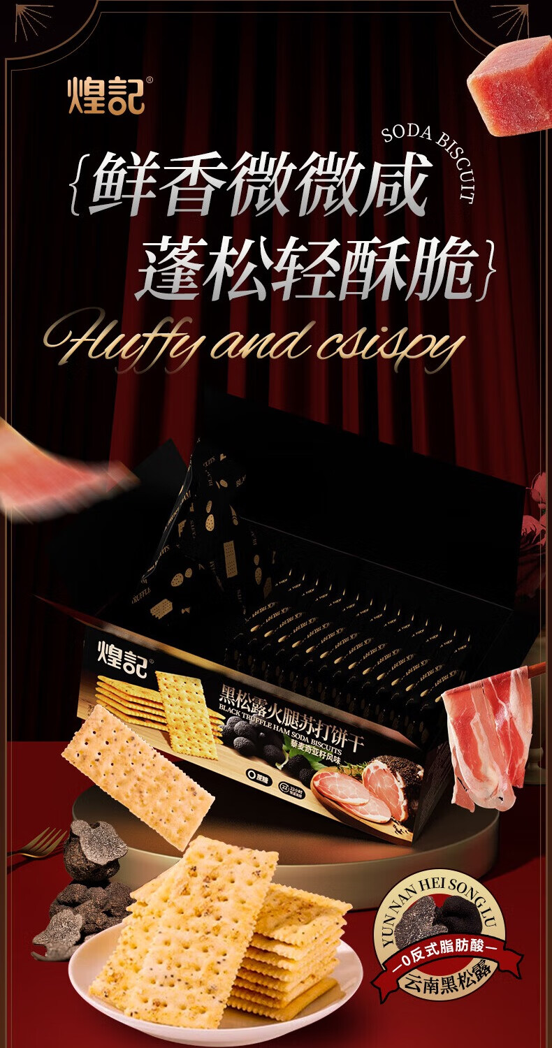 煌记黑松露火腿苏打饼干薄脆片小零食网红番茄牛肉酥脆饼干早餐咸口 黑松露苏打脆片315g家庭量贩装