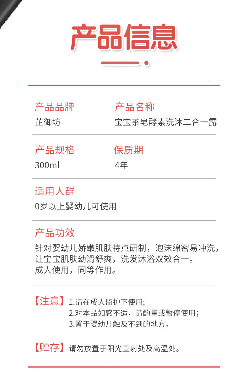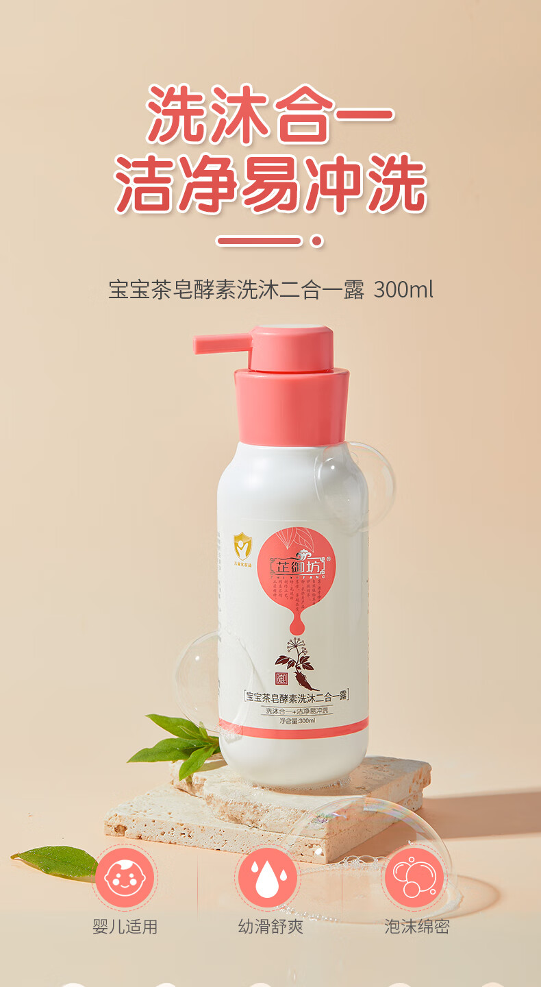 芷御坊宝宝茶皂酵素洗沐二合一300ml洗头洗澡易冲洗婴儿沐浴露洗头膏 茶皂酵素洗沐二合一露