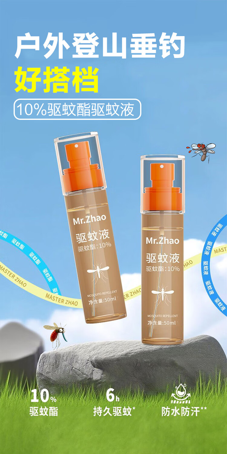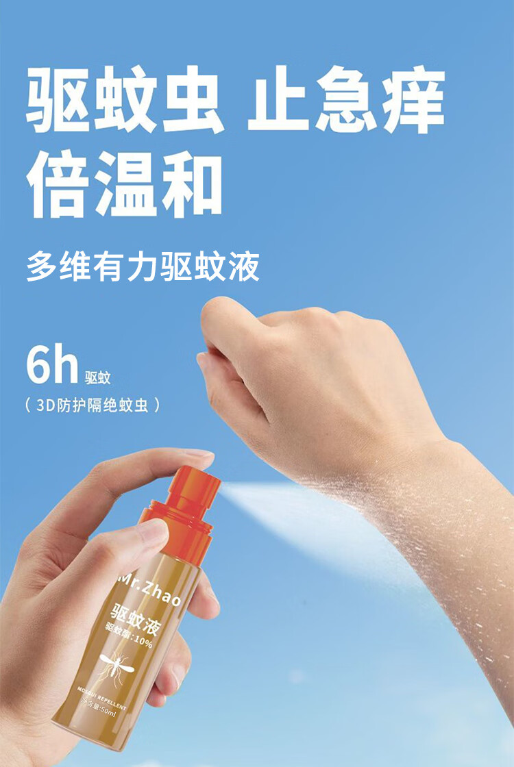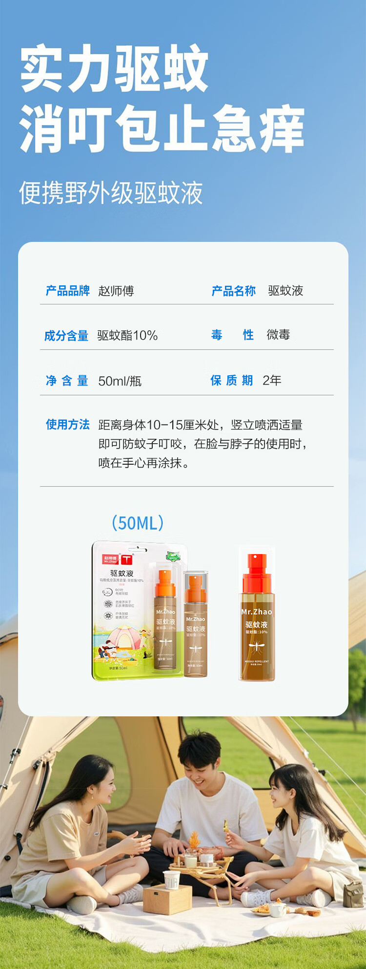 赵师傅驱蚊喷雾避蚊胺户外防蚊液驱蚊水便携带驱虫神器蚊不叮喷雾 50ml*2瓶