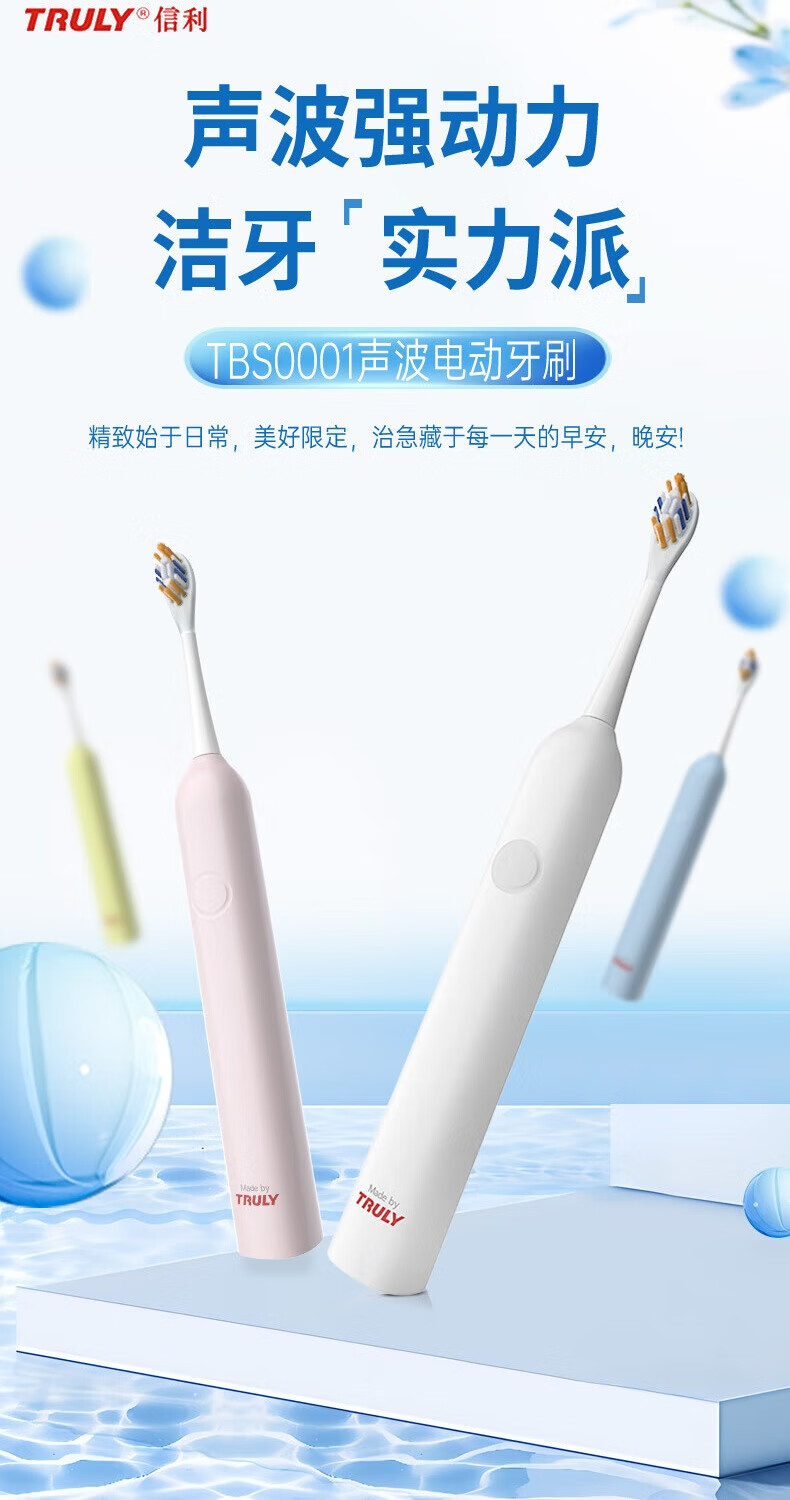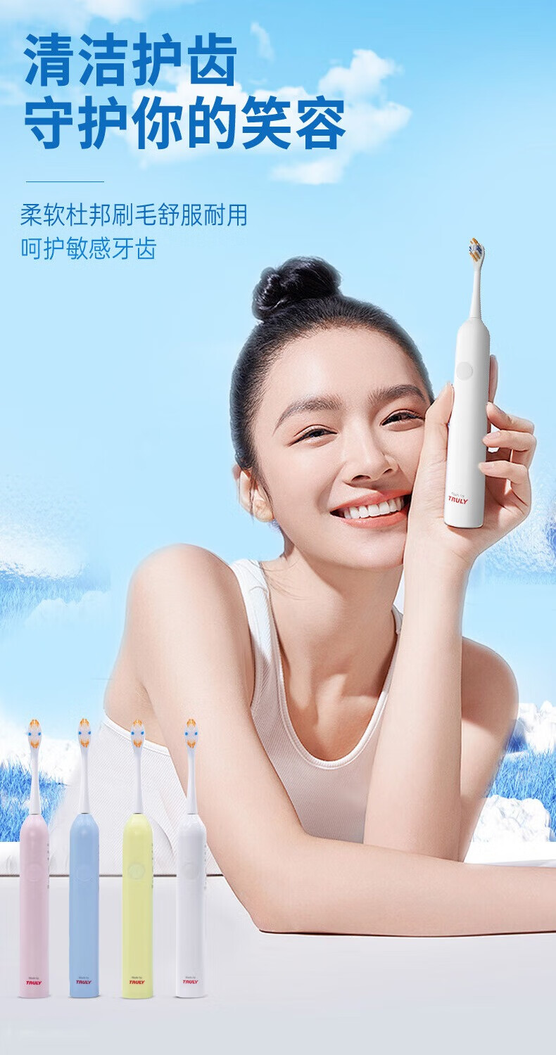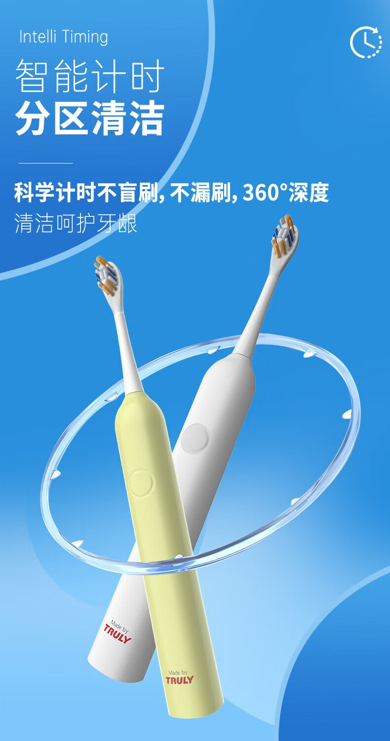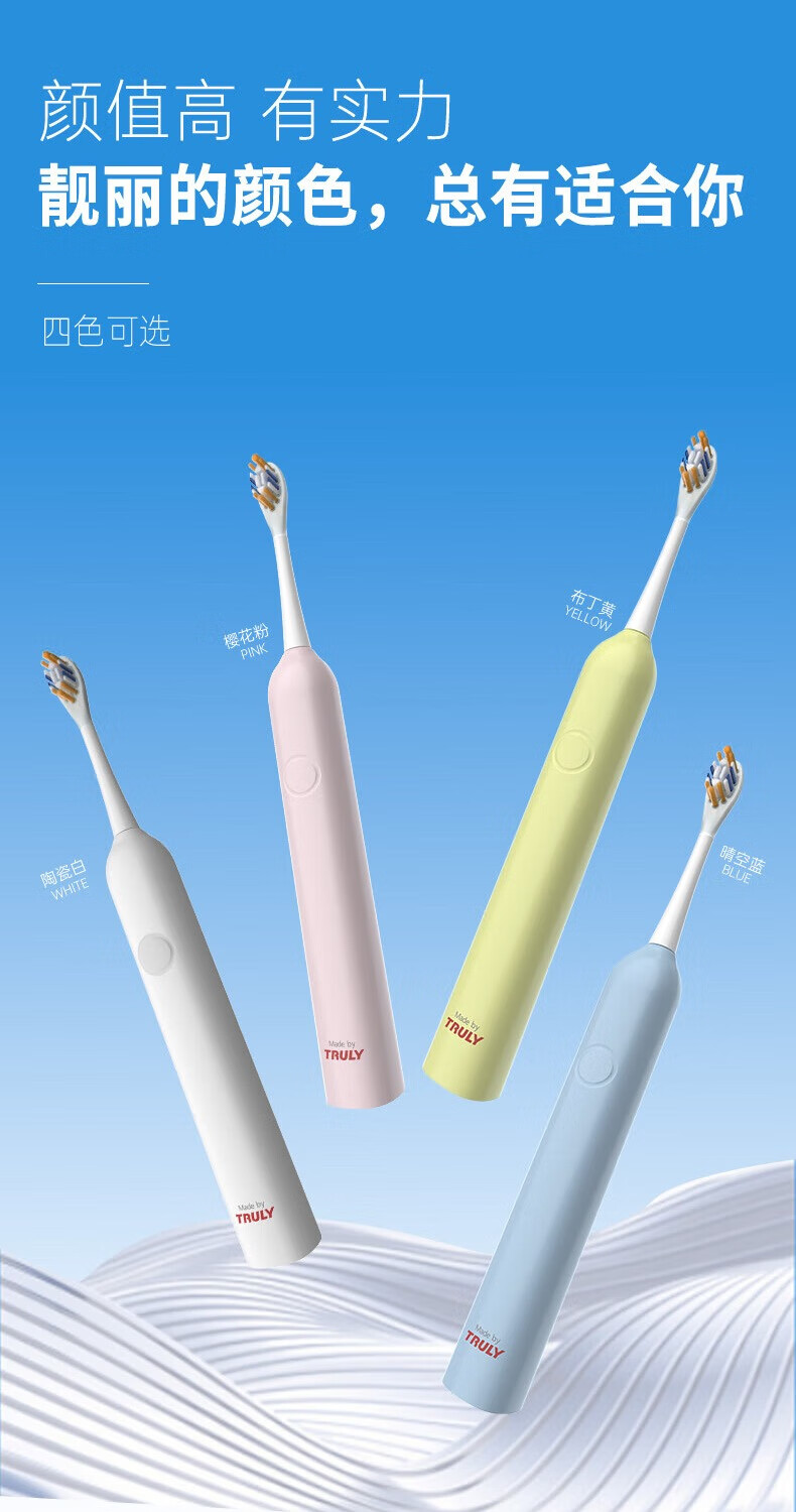 信利Truly电动牙刷新款超声波软毛缓震全自动便携防水情侣长续航高效清洁 布丁黄