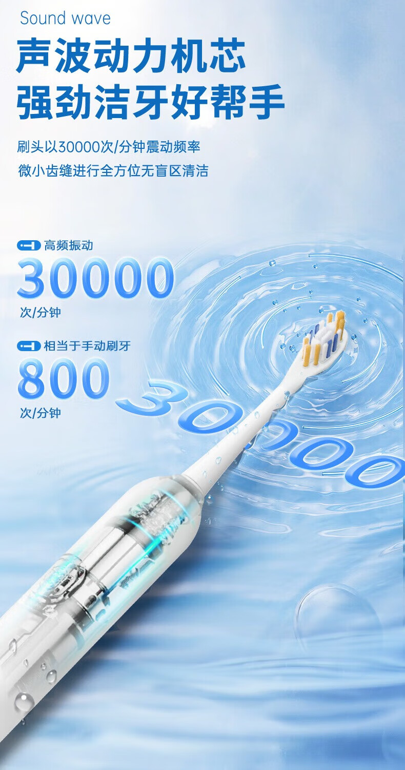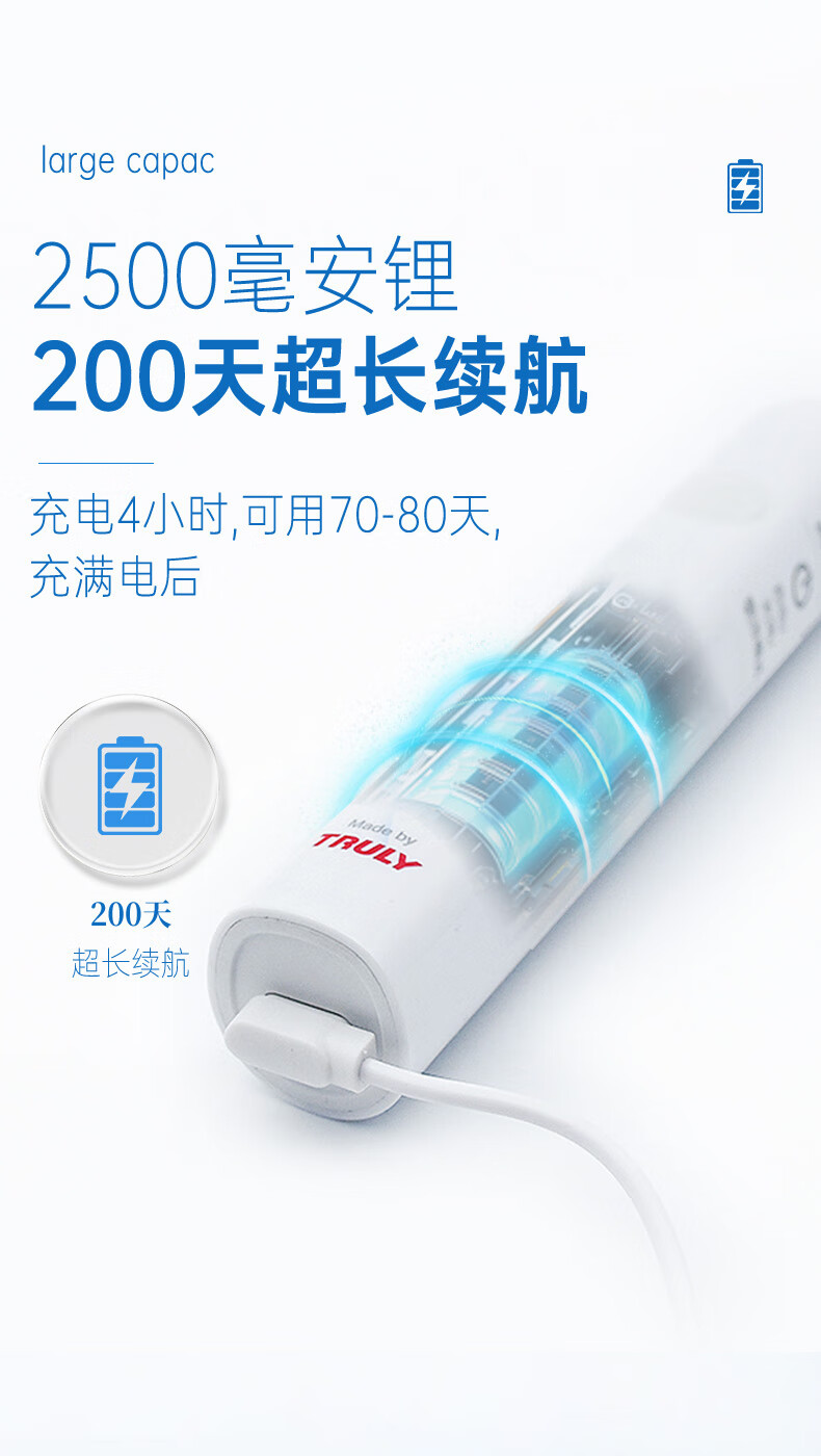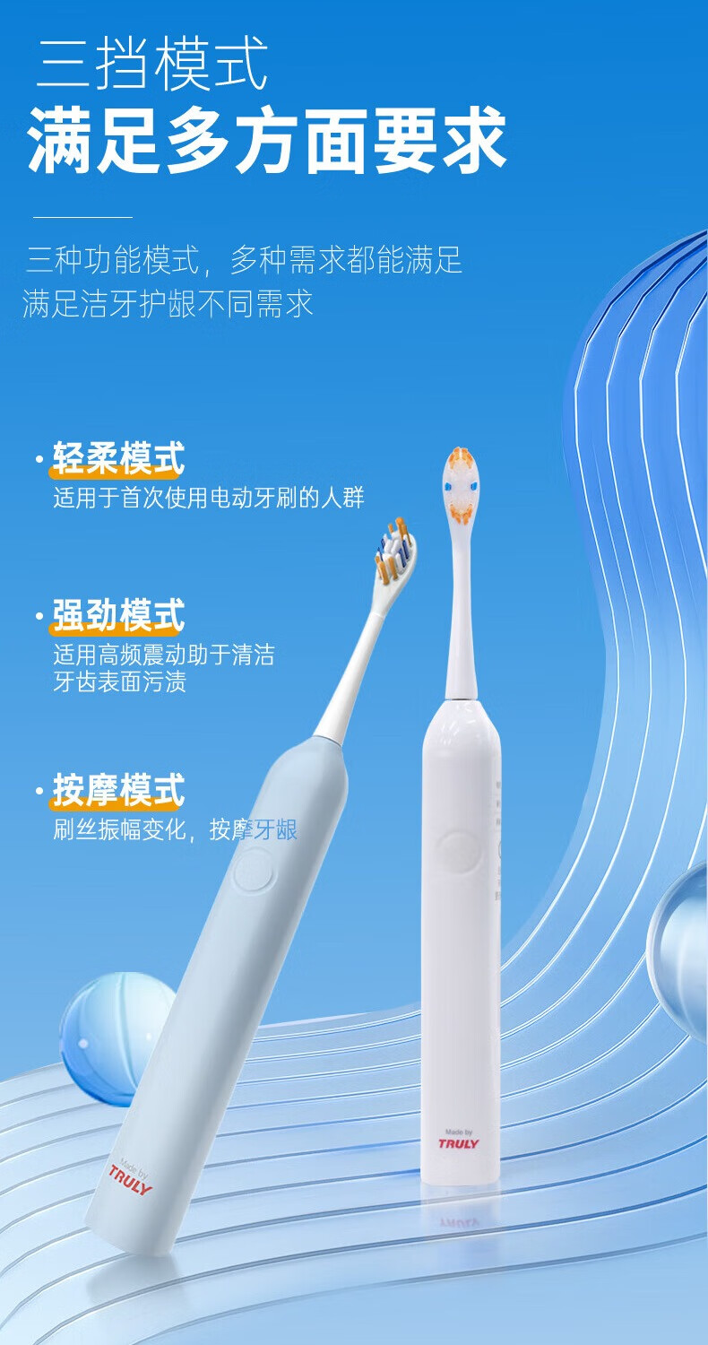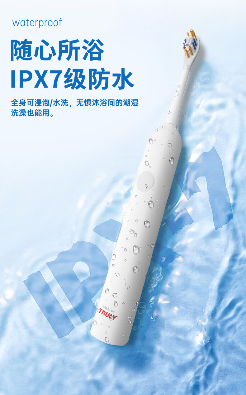 信利Truly电动牙刷新款超声波软毛缓震全自动便携防水情侣长续航高效清洁 布丁黄