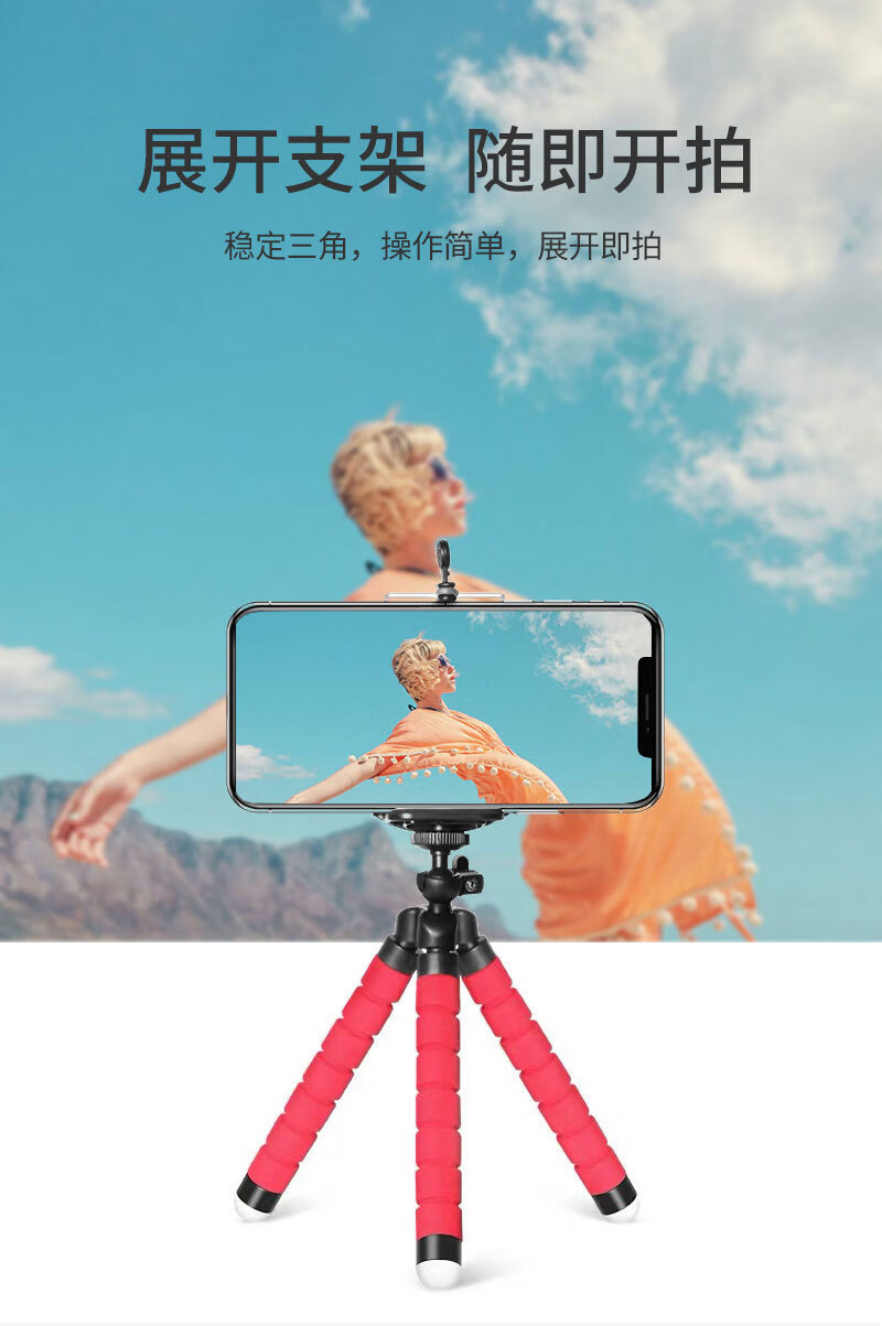 八爪鱼手机支架多功能随身小支架手机通用可伸缩三脚支架 红色裸装0PP袋+夹子