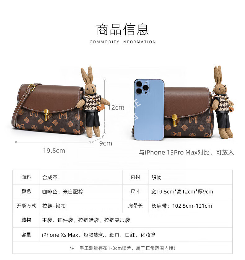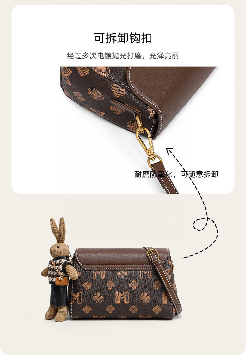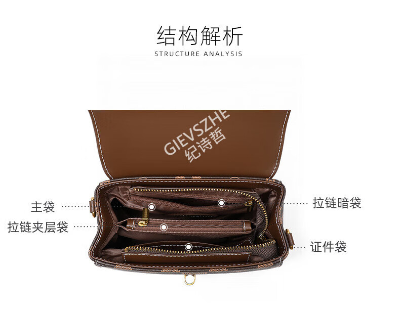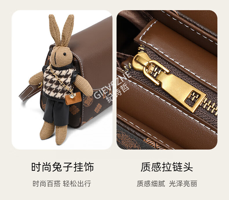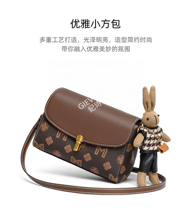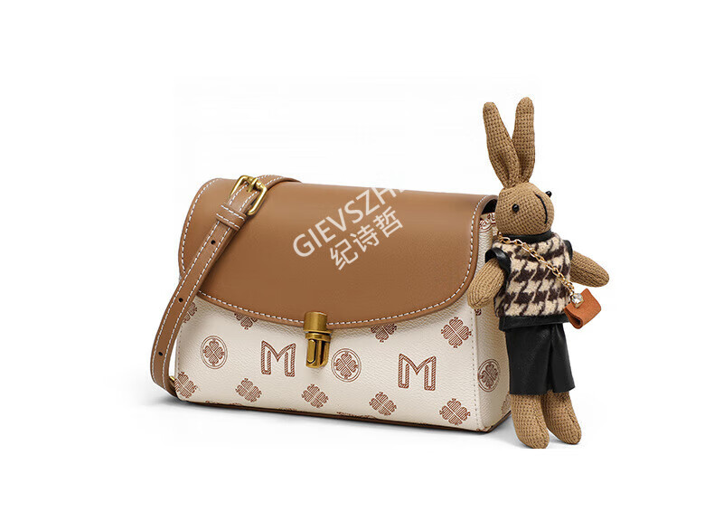 纪诗哲(GIEVSZHE)轻奢包包女包单肩包女士斜挎包七夕圣诞节送女友老婆妈妈节日礼物 米白配棕 精美礼盒