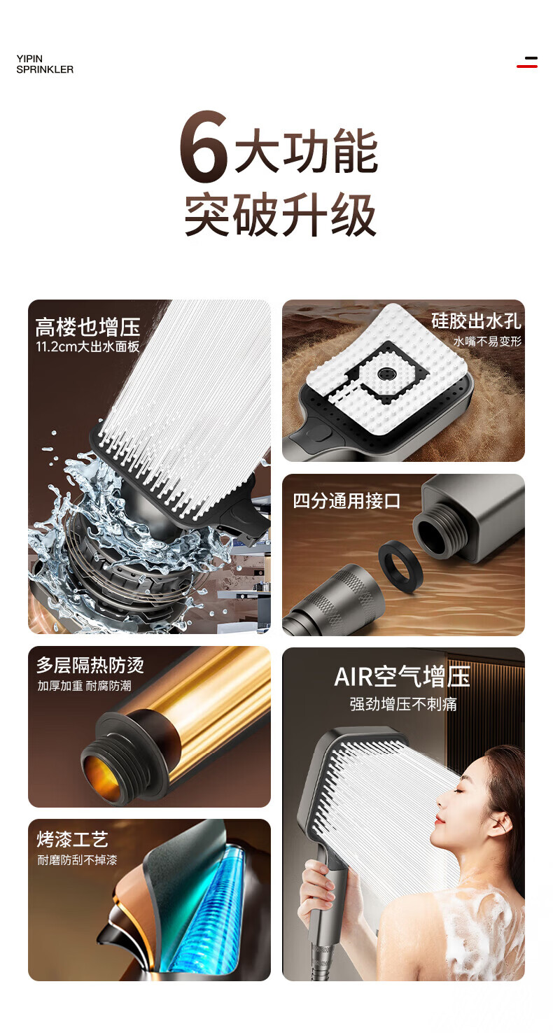【甄选百货】通用淋浴花洒喷头增压大出水淋雨套装家用洗澡手持花 增压花洒【十年质保】 无规格