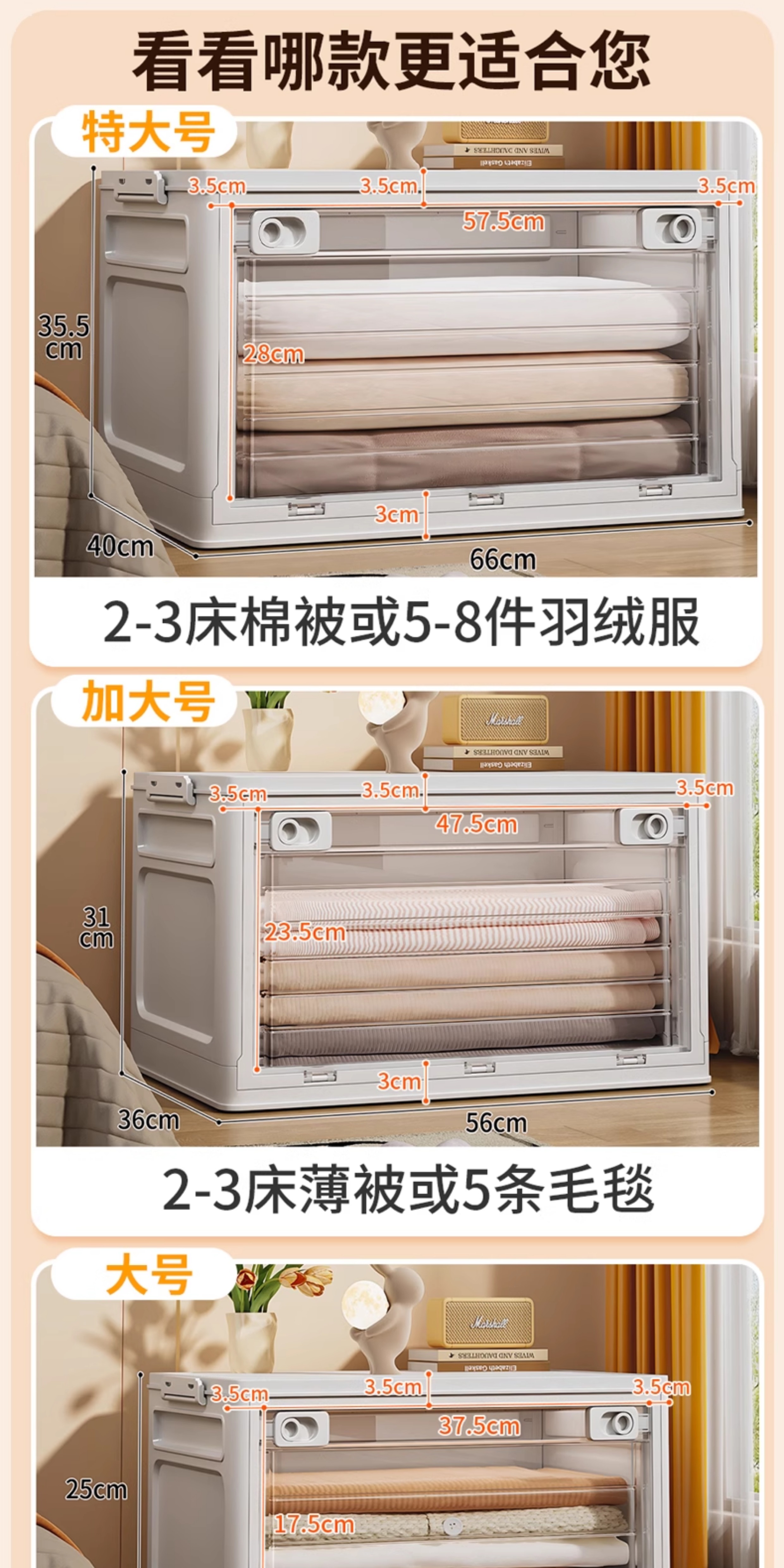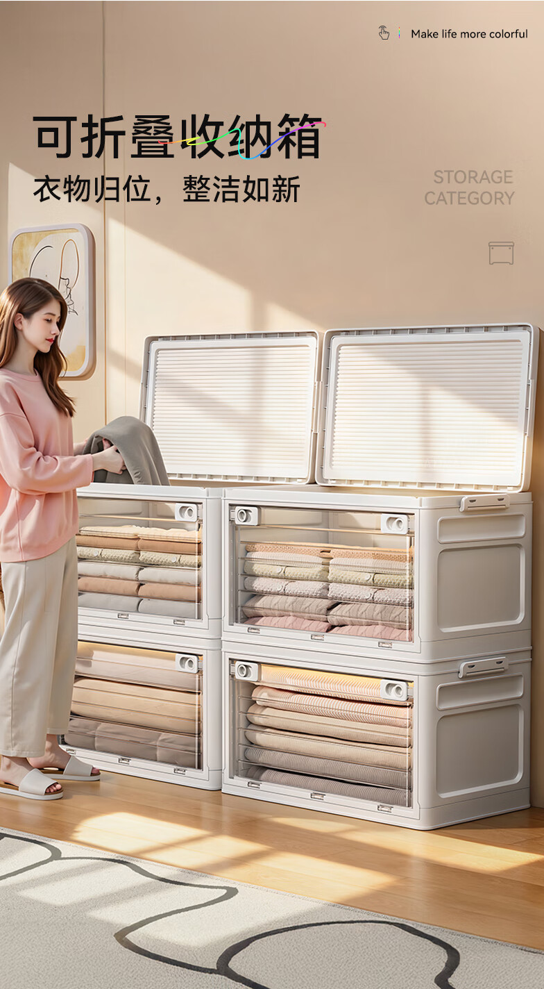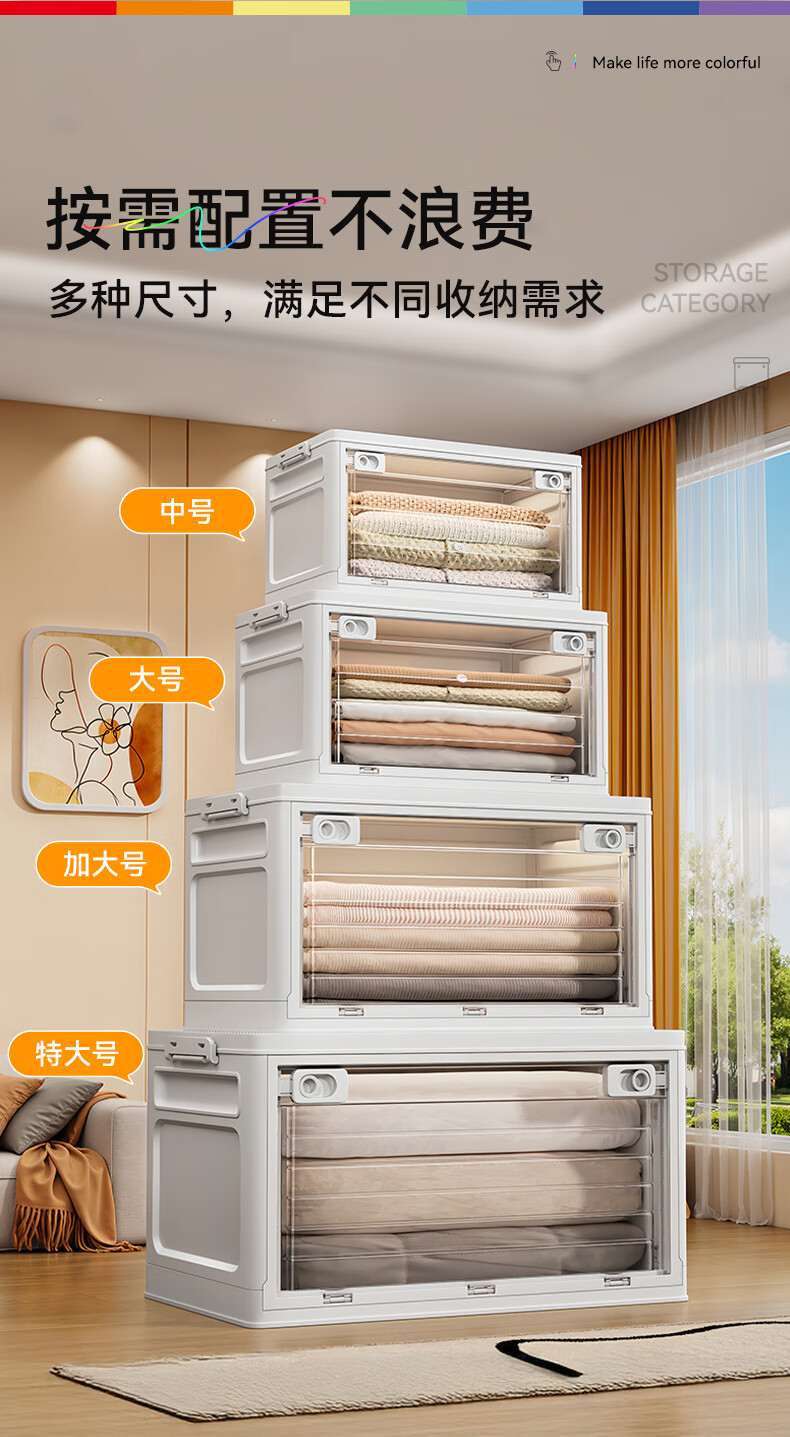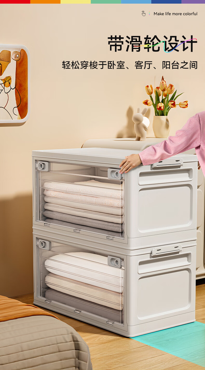 吱凡日本衣服收纳箱大容量家用衣服物收纳柜可折叠储物柜被子整理箱子 【透明款】中号【双开门/带滑轮】 1个装【0异味/破损包赔】