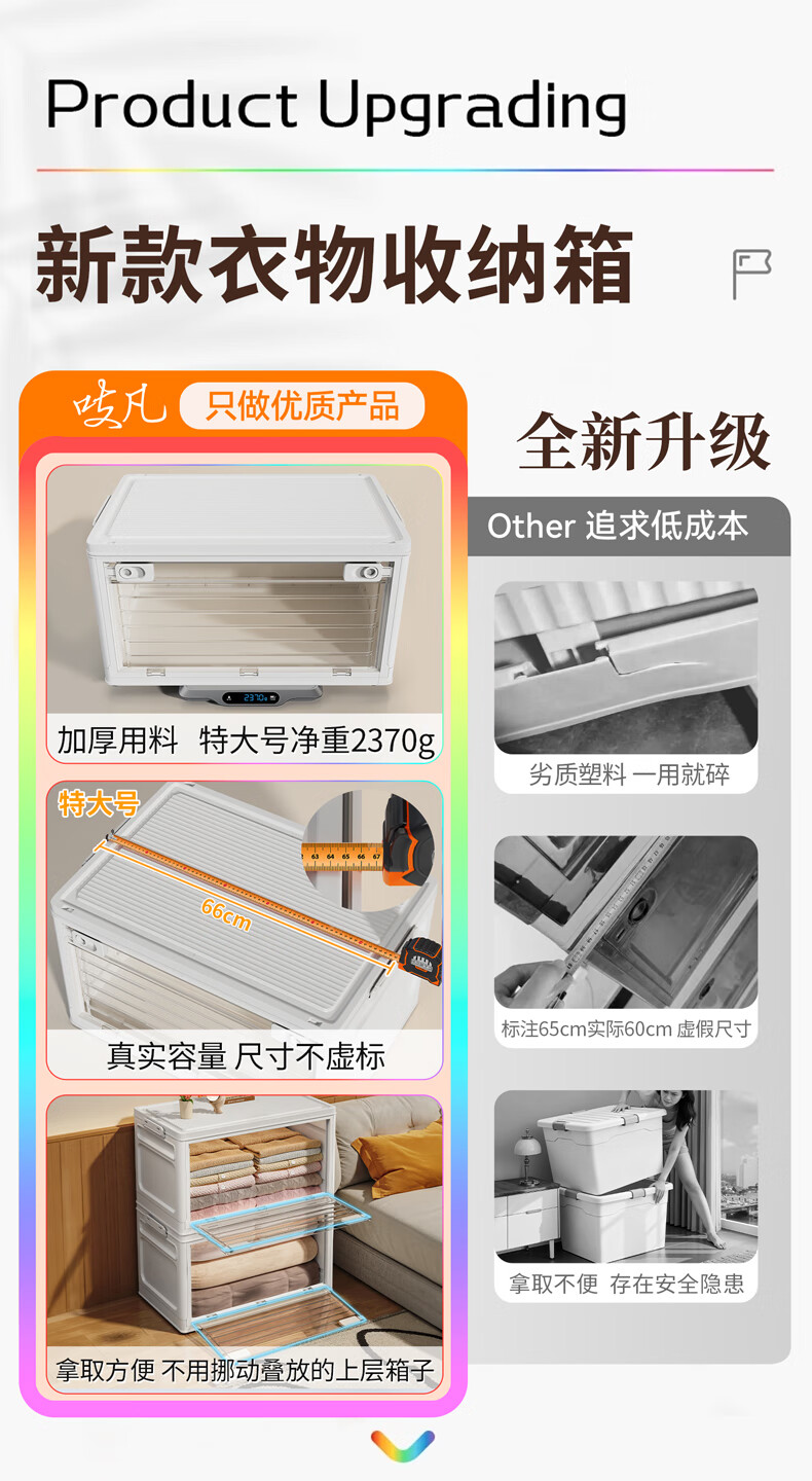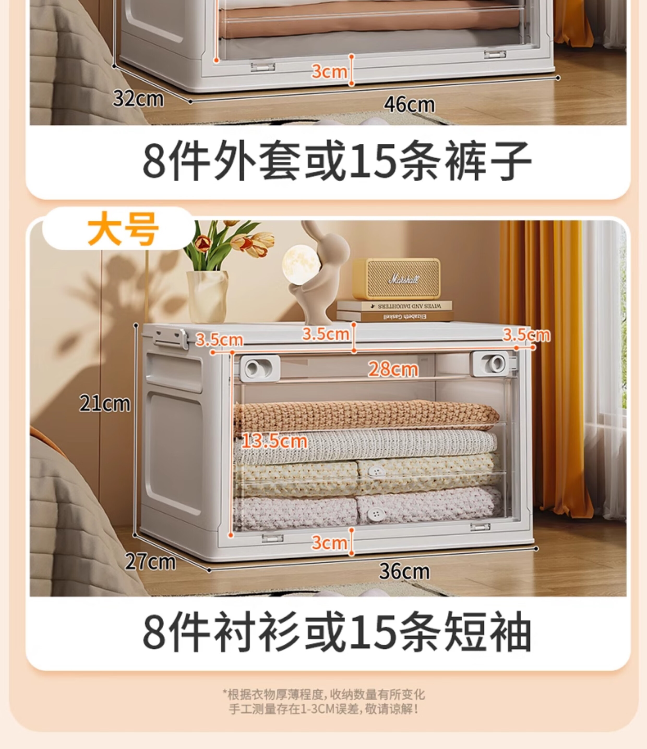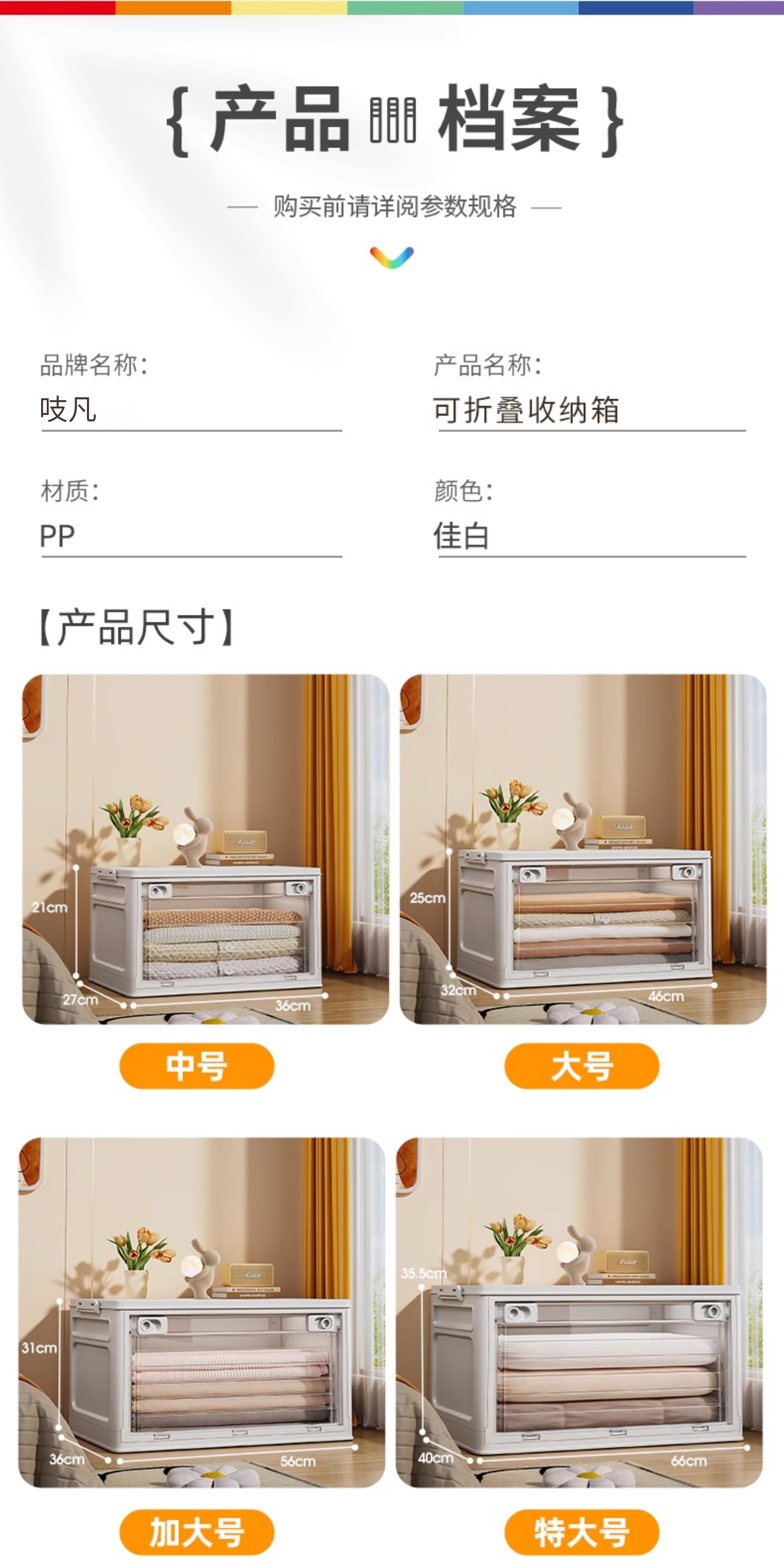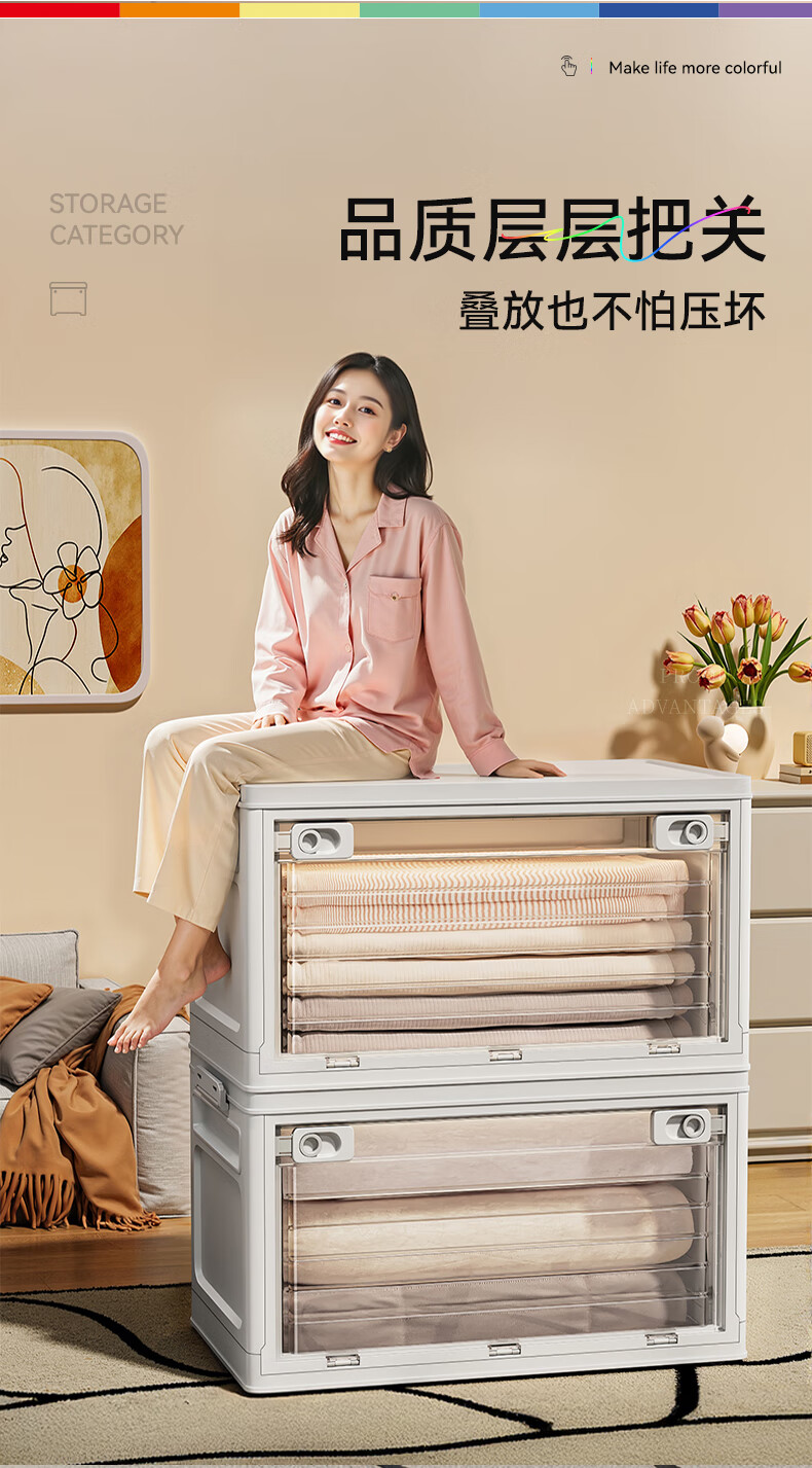 吱凡日本衣服收纳箱大容量家用衣服物收纳柜可折叠储物柜被子整理箱子 【透明款】中号【双开门/带滑轮】 1个装【0异味/破损包赔】