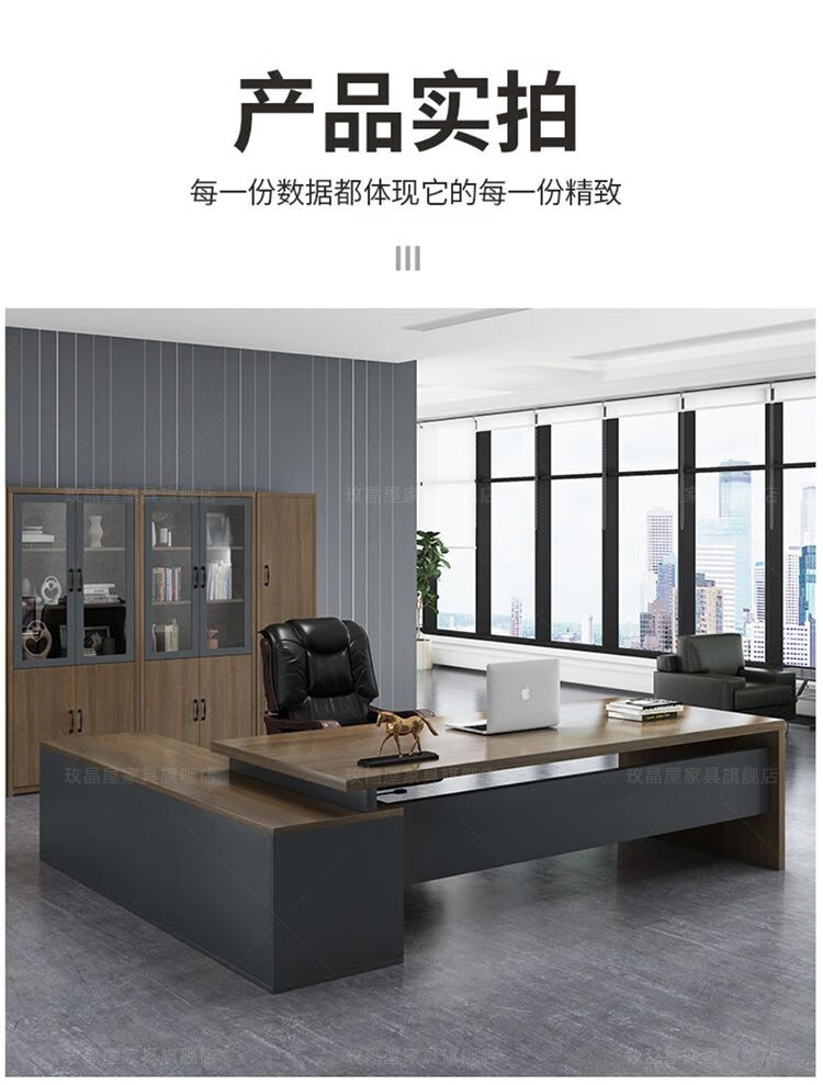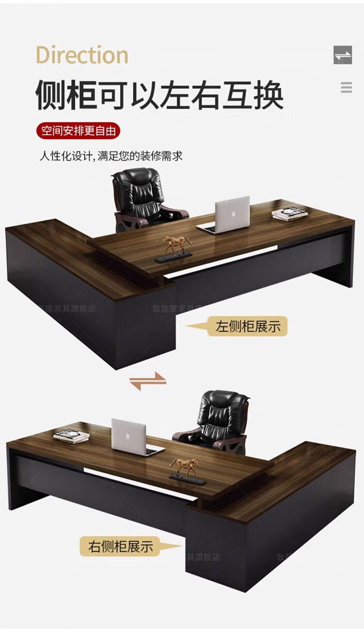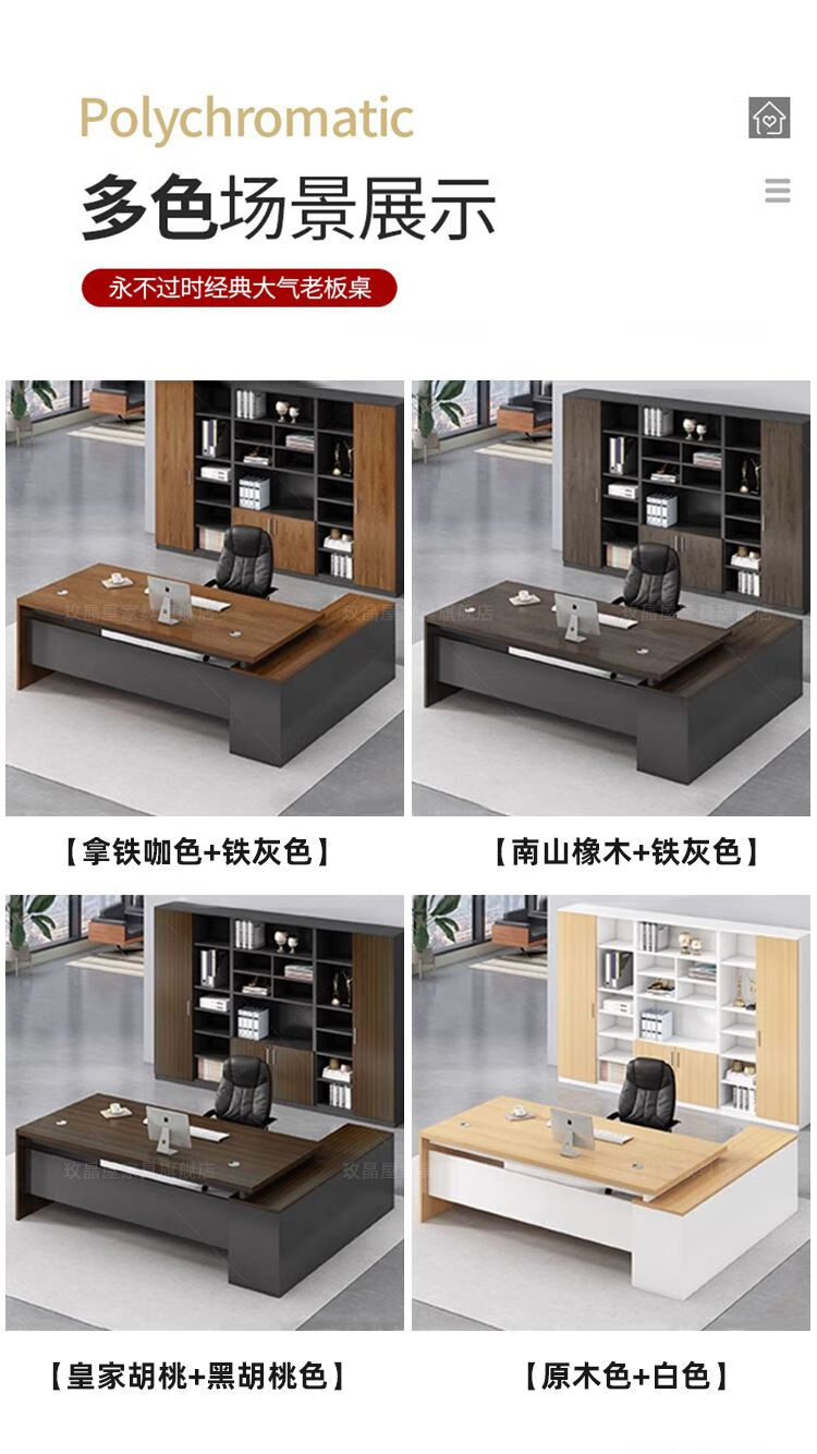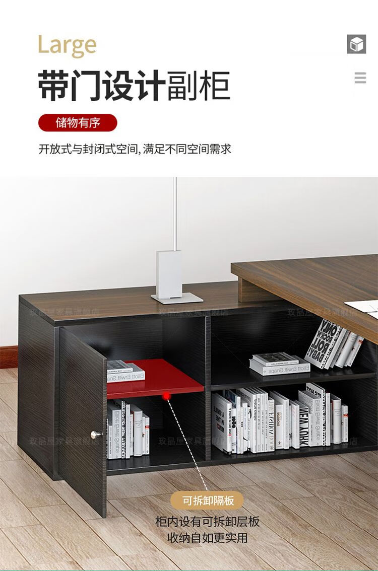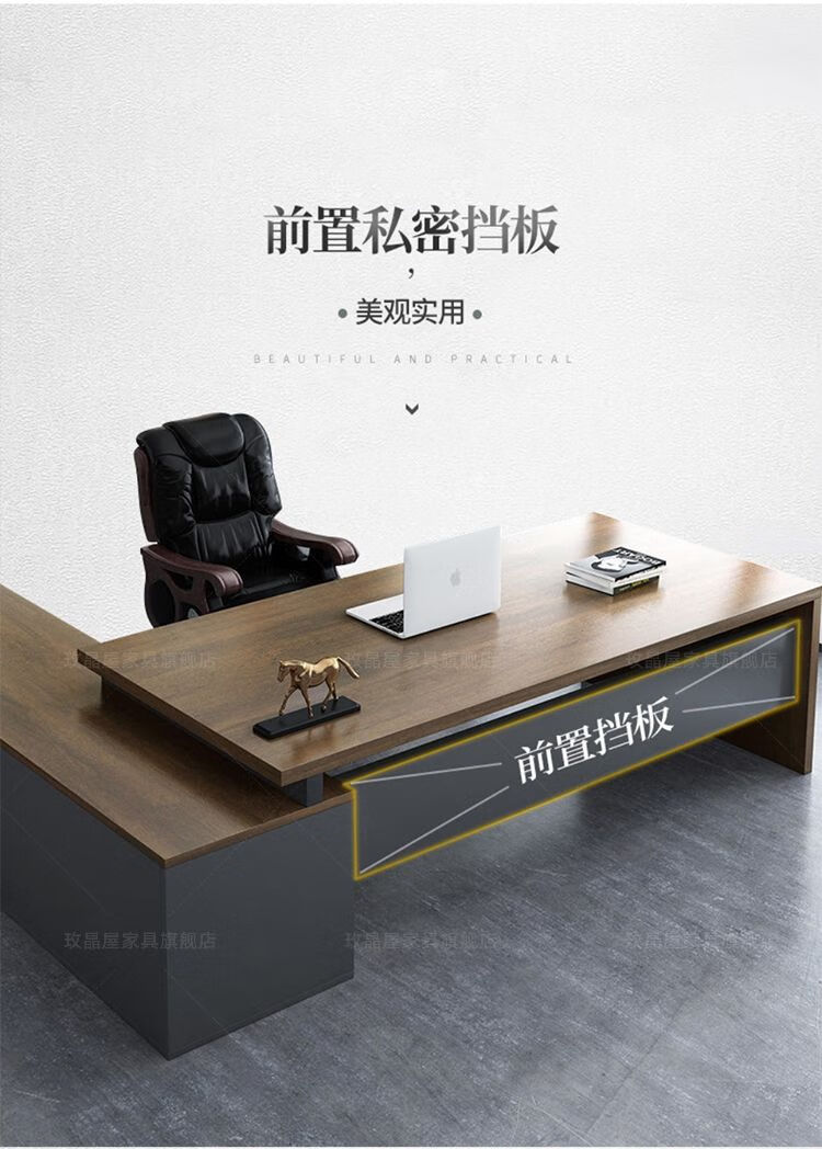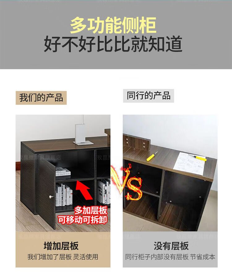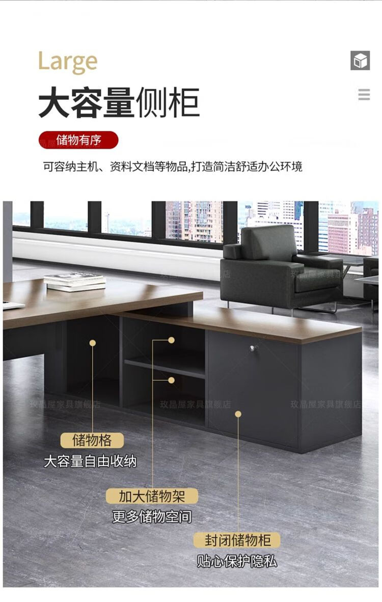 弘星隆办公桌员工位办公室桌椅组合单人桌子大班台老板桌台式工位电脑桌 皇家胡桃色丨总长160+桌宽60+侧柜款