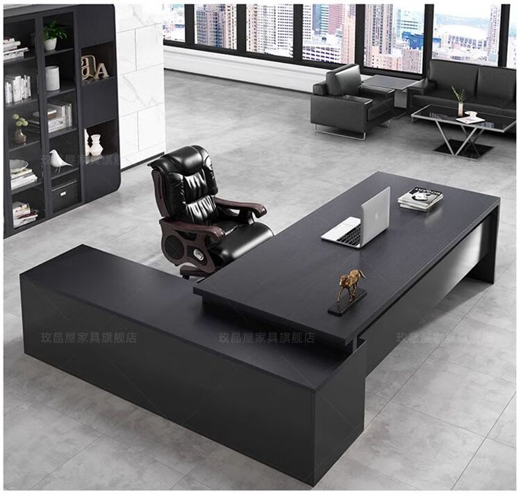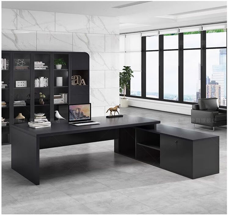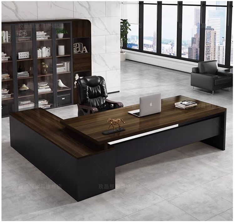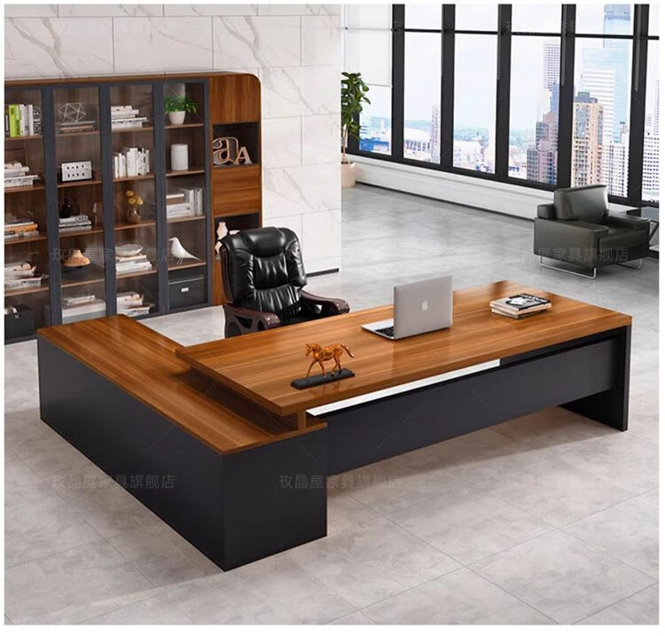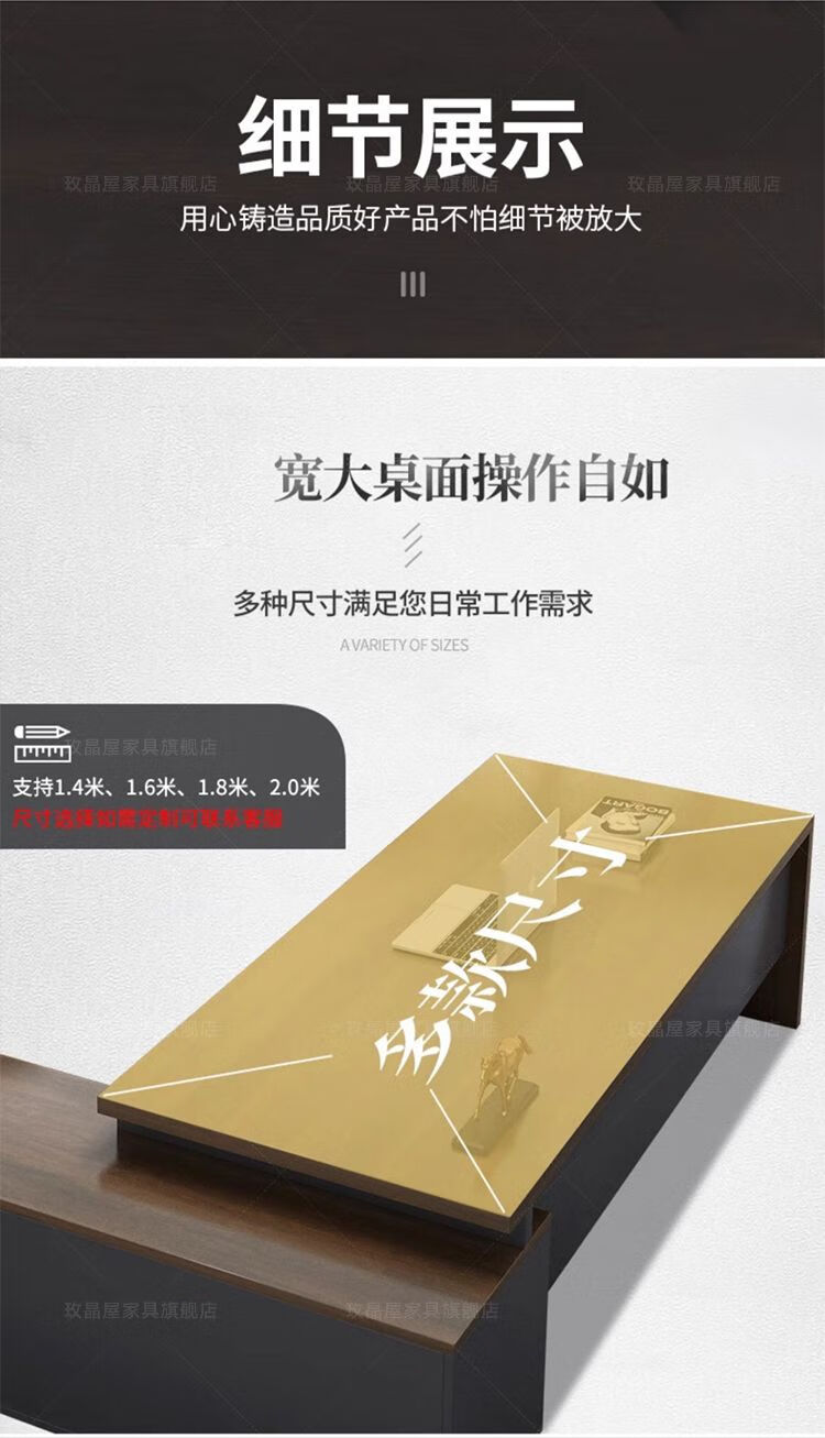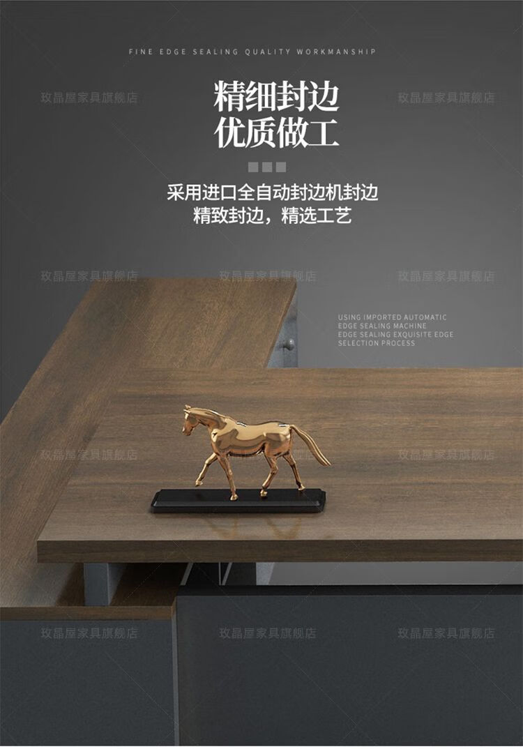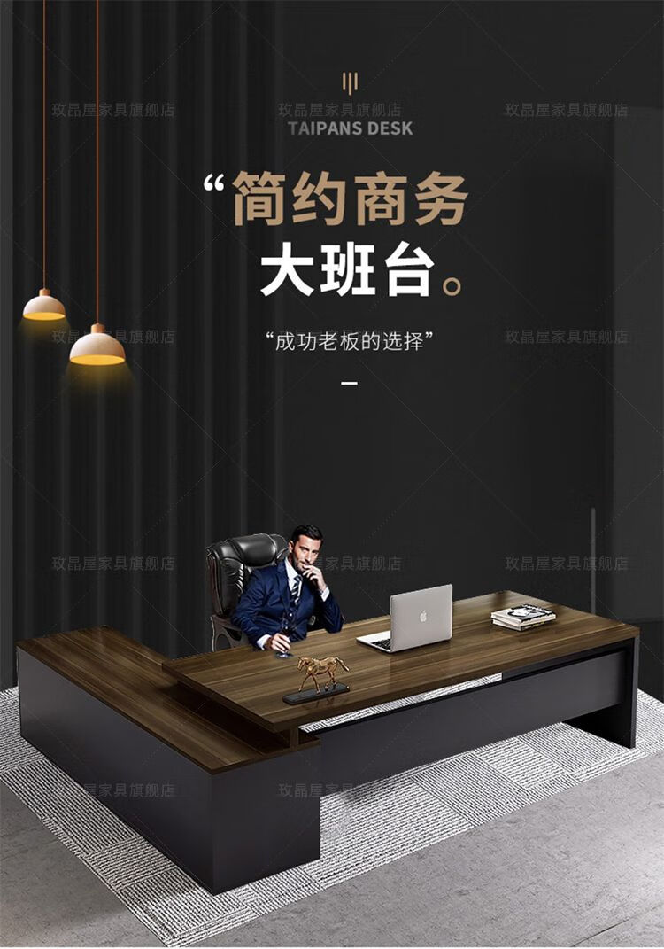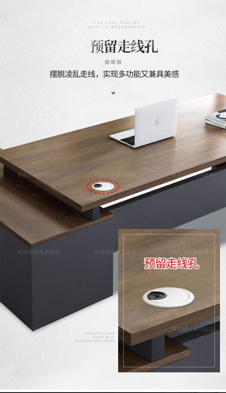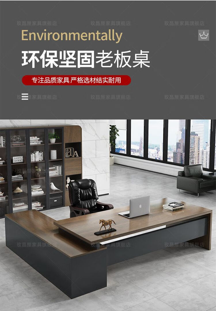 弘星隆办公桌员工位办公室桌椅组合单人桌子大班台老板桌台式工位电脑桌 皇家胡桃色丨总长160+桌宽60+侧柜款