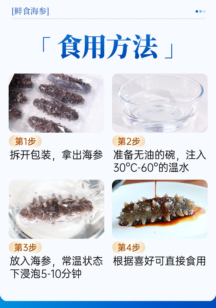 颐口福大连鲜活即食海参鲜食海参葱烧海参佛跳墙礼盒年货海鲜礼盒送礼 1000g即食海参(30-40只/斤)