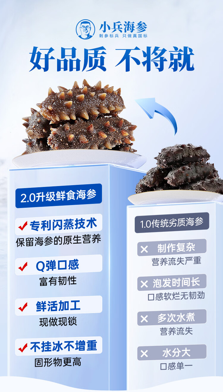 小兵海参 鲜食海参即食海参辽刺参礼盒 免泡发开袋即食 3斤(买2斤送1斤 高性价比) 大头(7-9只/斤)