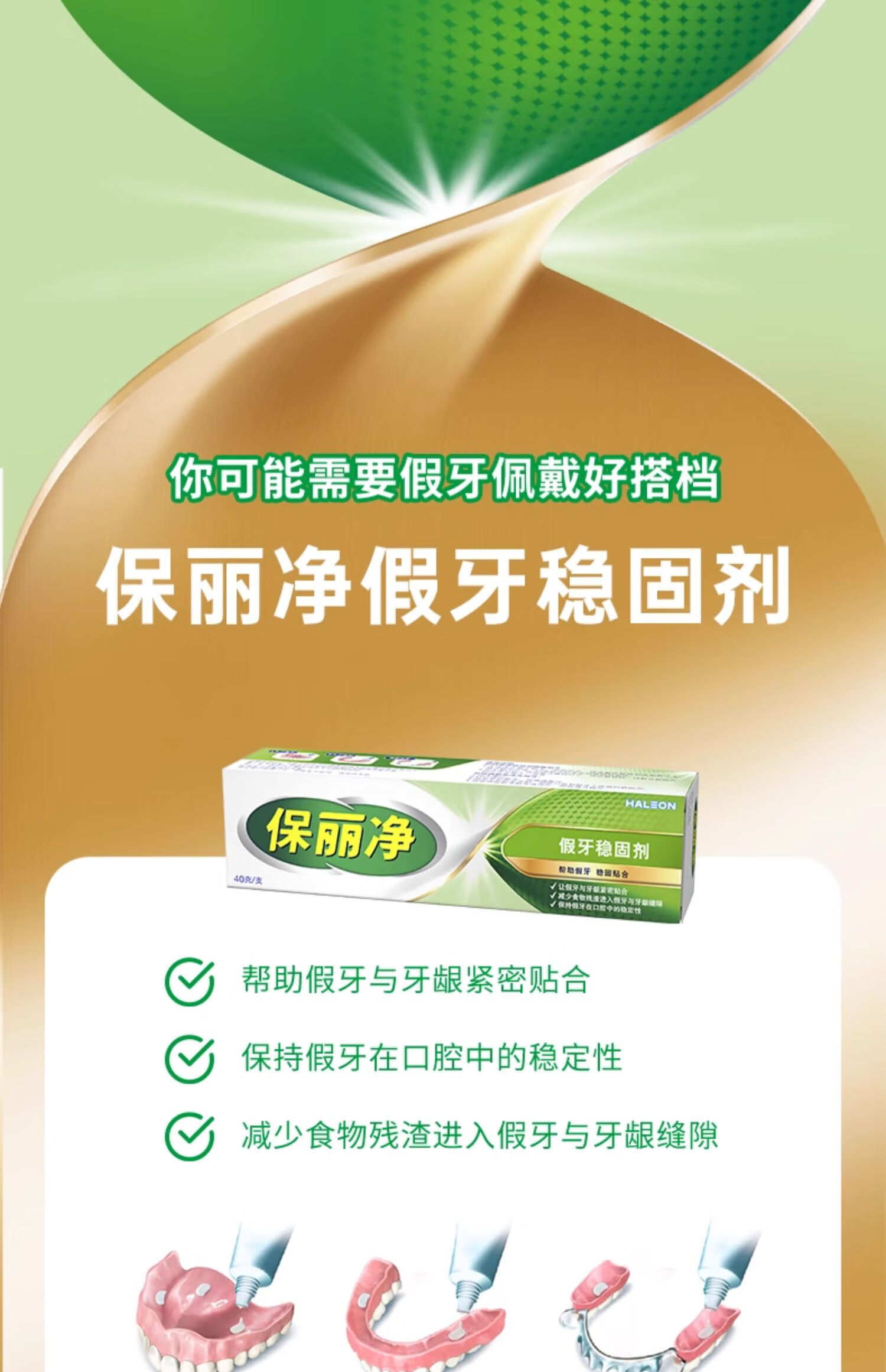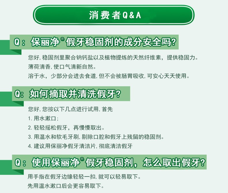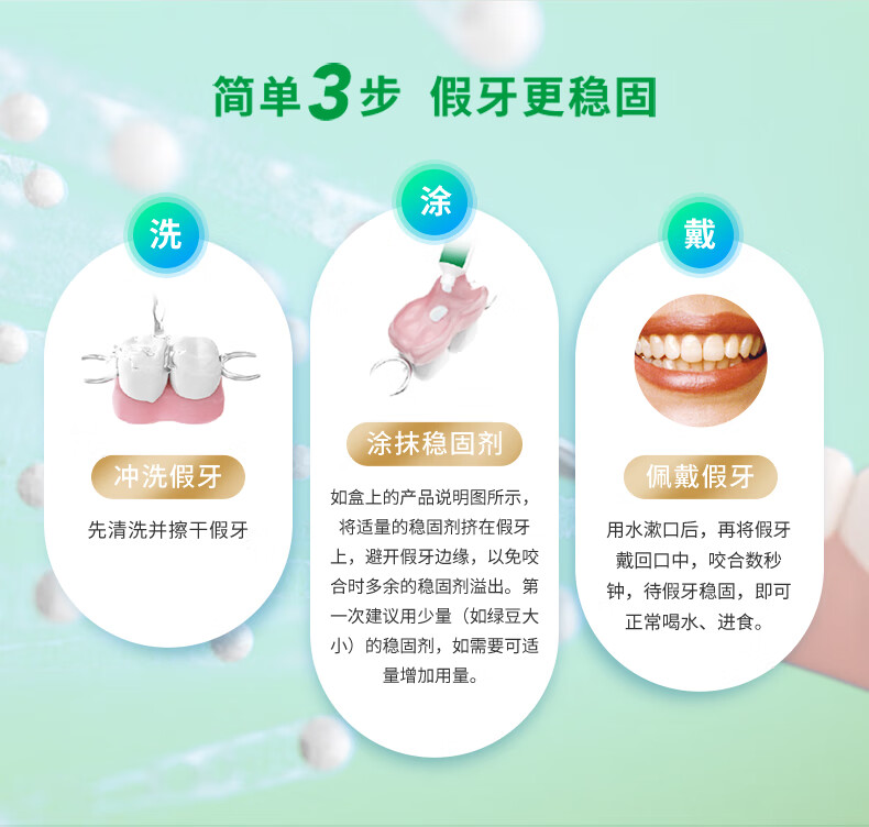保丽净假牙稳固剂40g 粘合固定剂口腔清洁脱落松动贴合牢着老年假牙 【1盒】假牙稳固剂40g