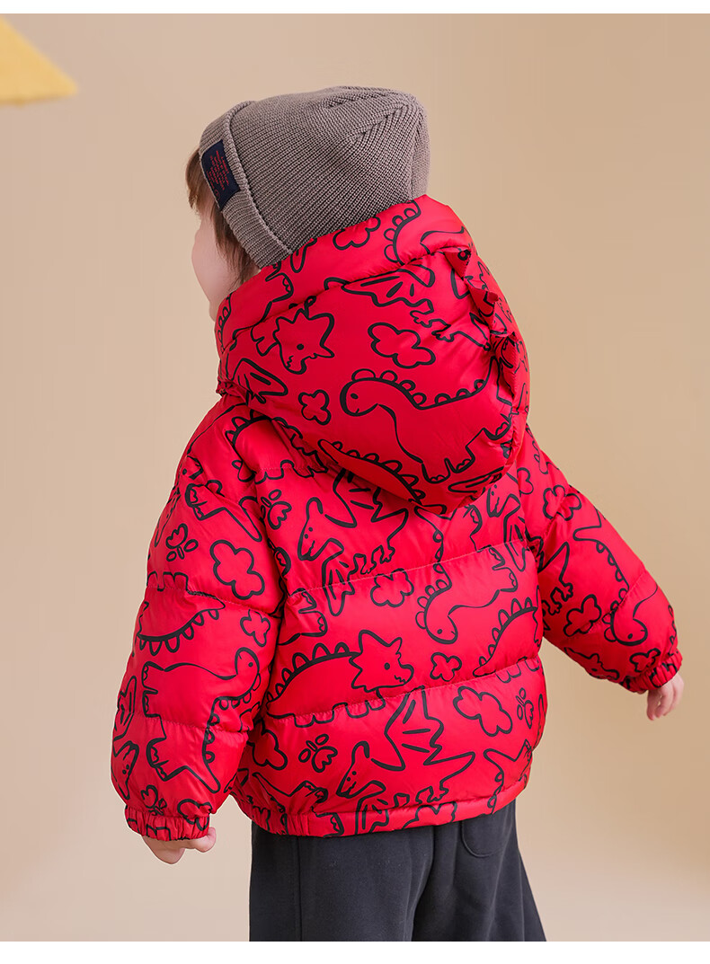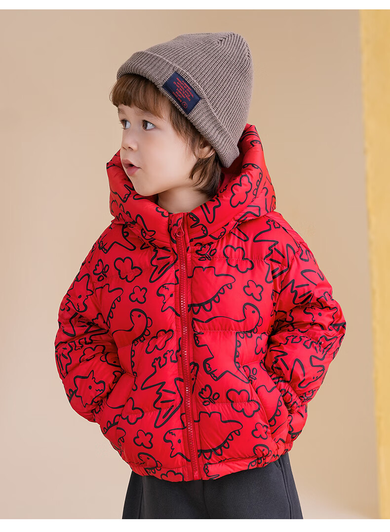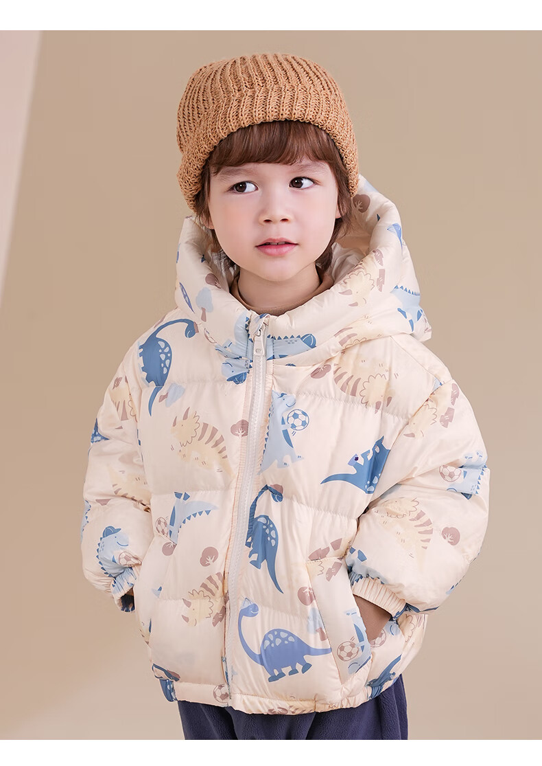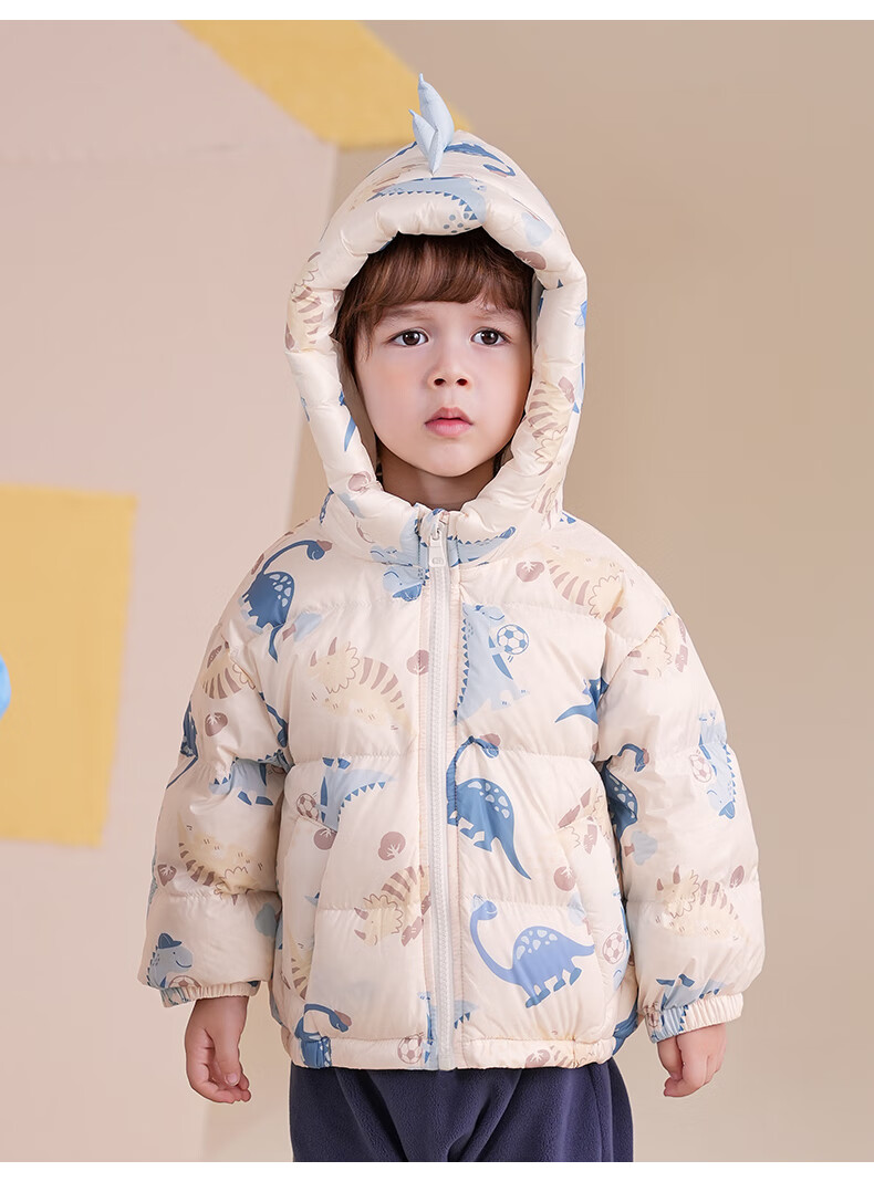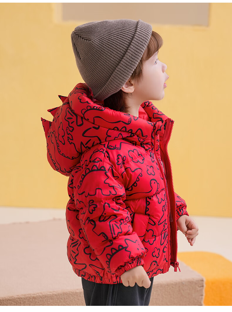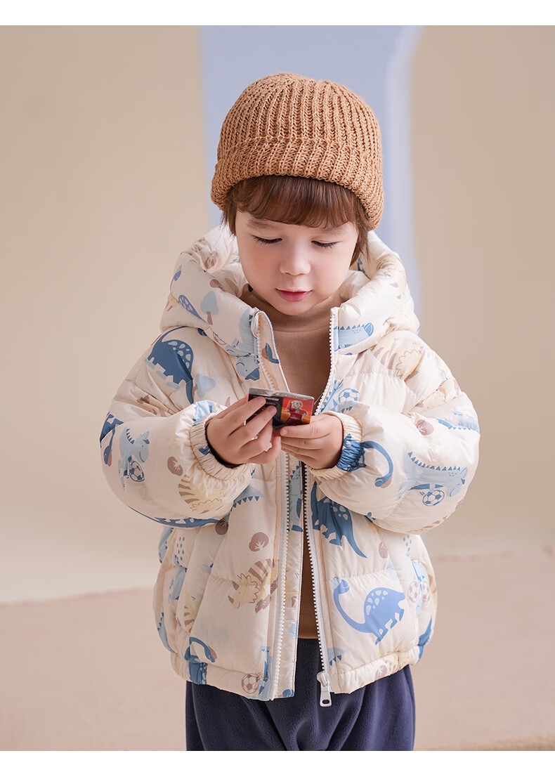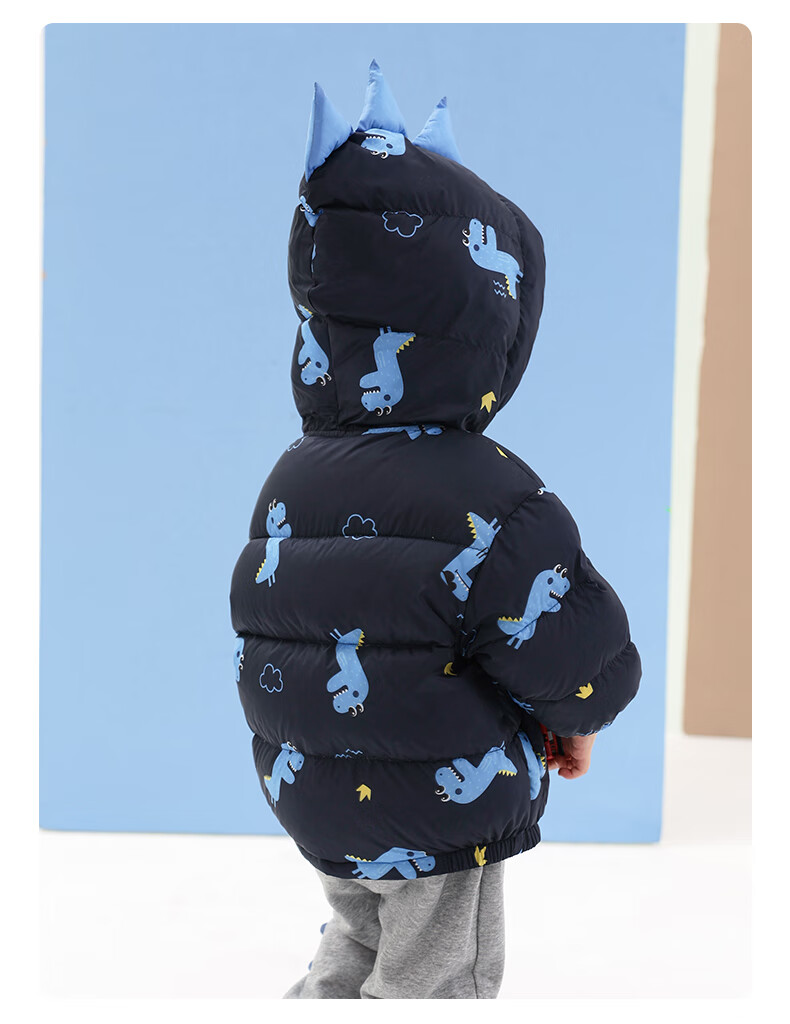 鸭鸭儿童羽绒服2025新款连帽短款保暖外套 藏青汽车 110