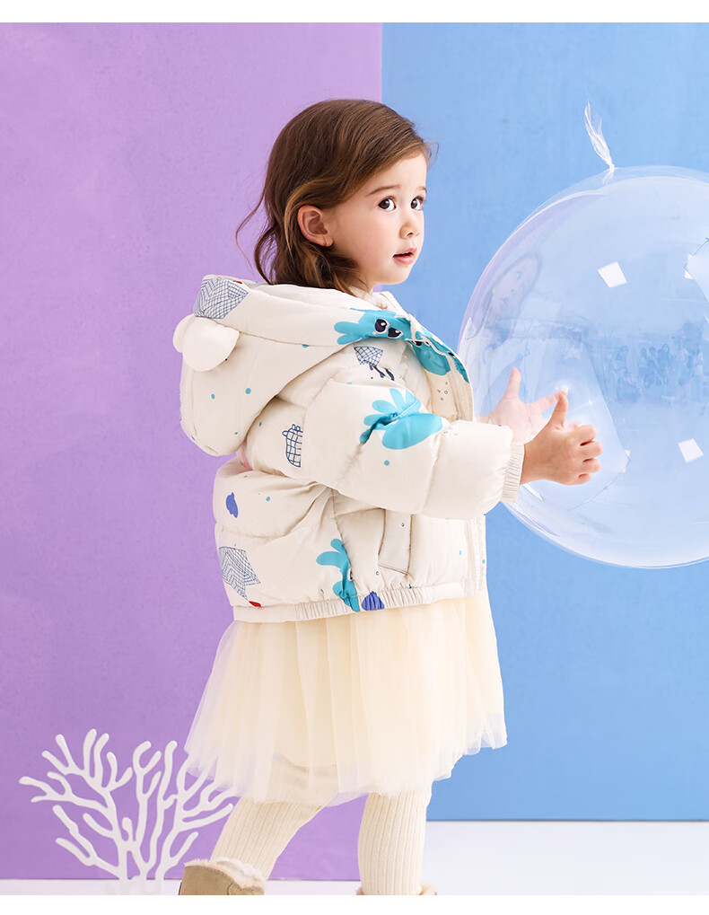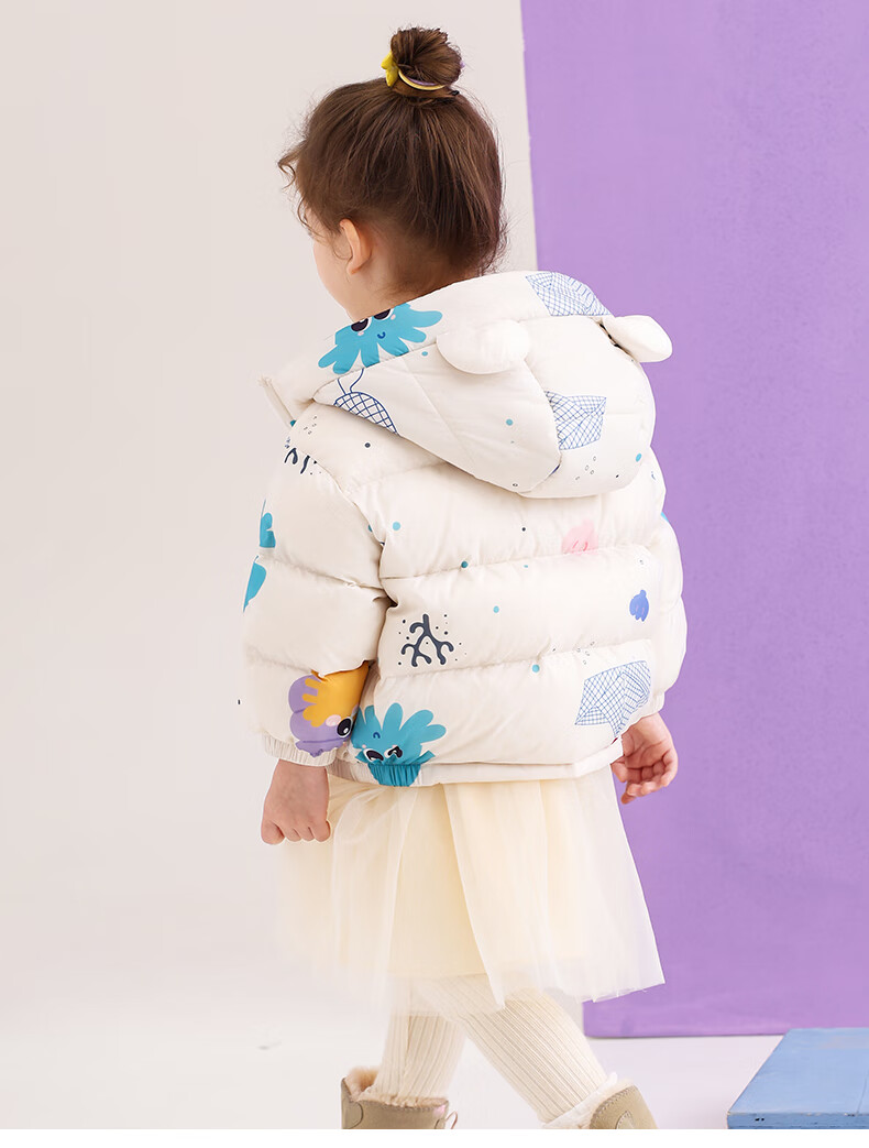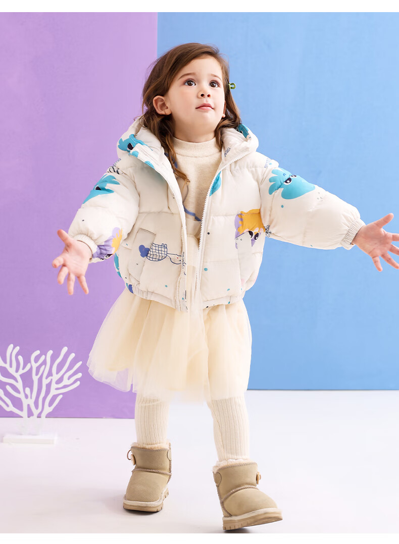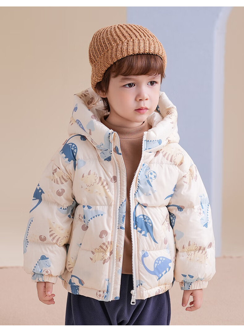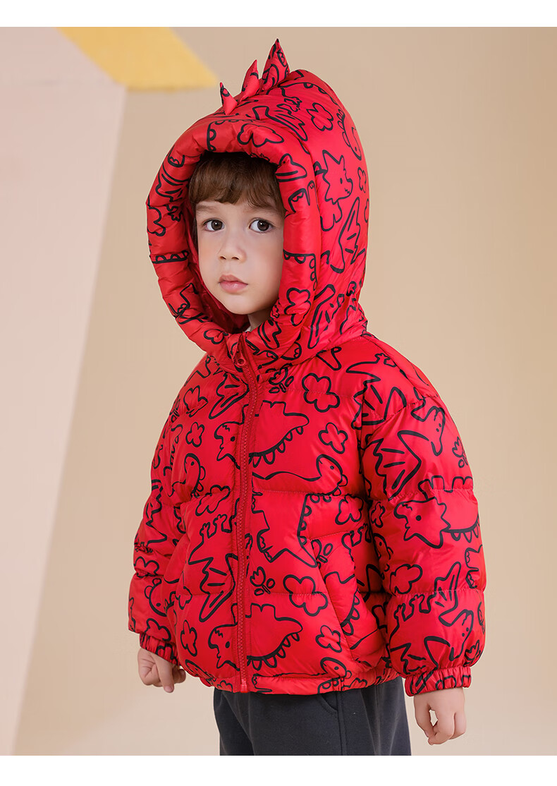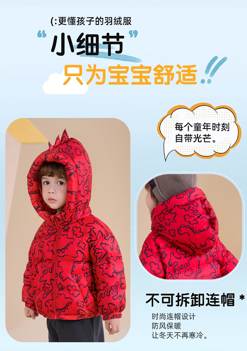 鸭鸭儿童羽绒服2025新款连帽短款保暖外套 藏青汽车 110