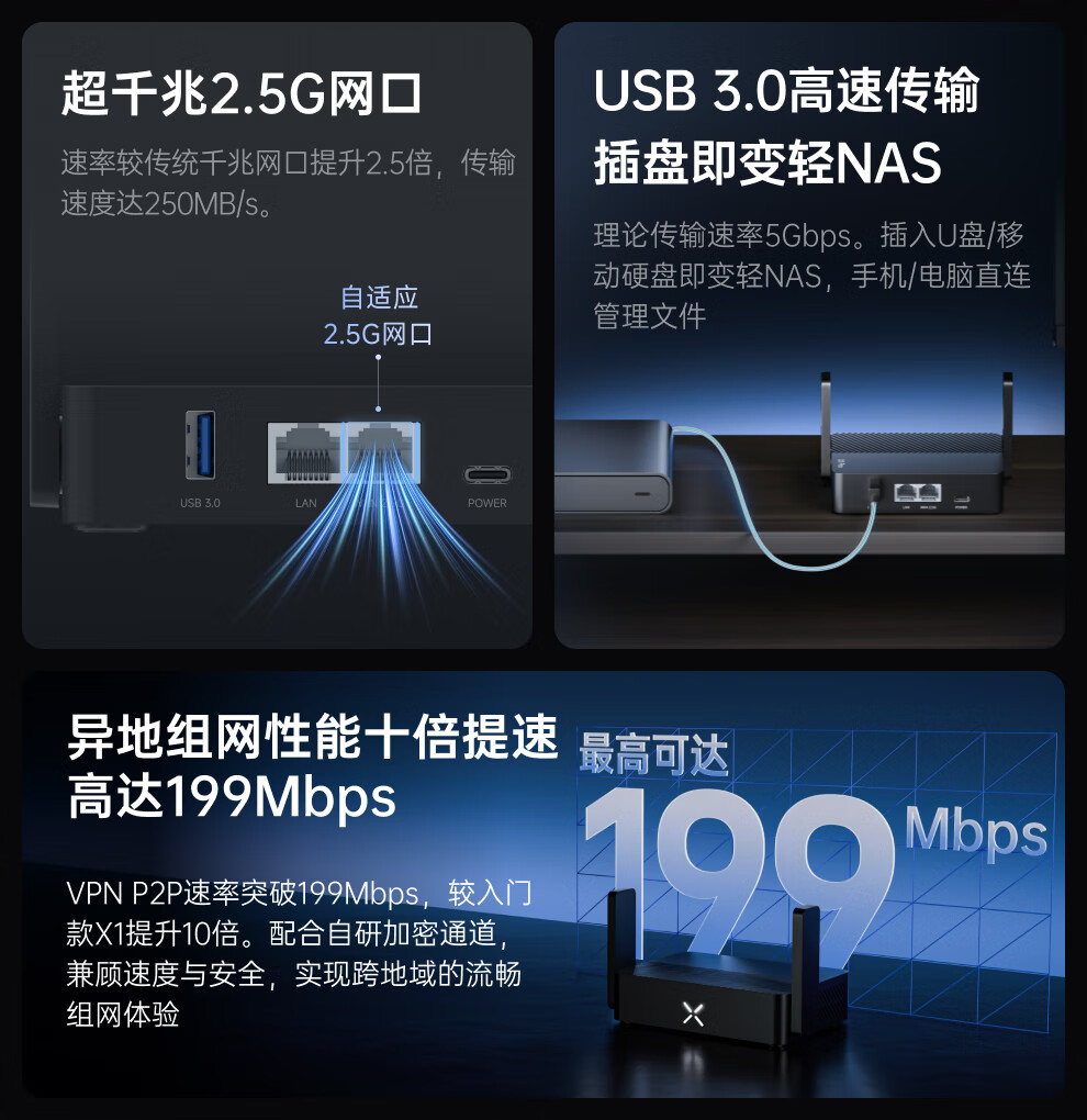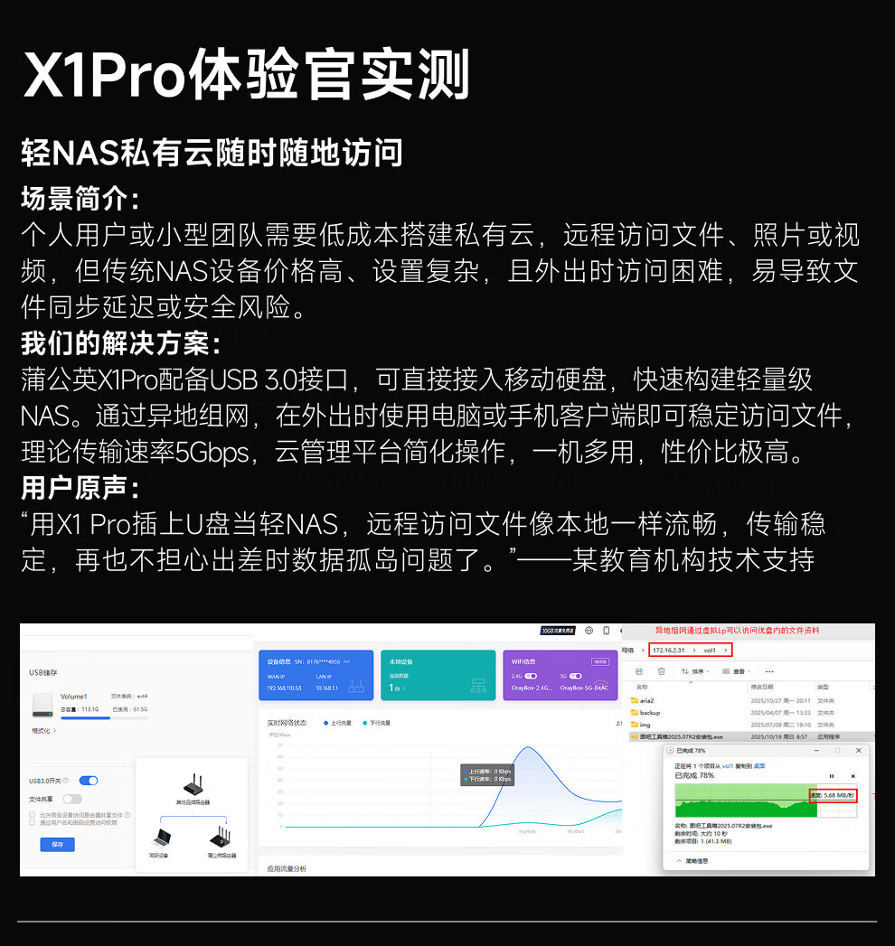 贝锐蒲公英X1Pro异地组网路由器AX3000千兆2.5g网口wifi6无线USB口自建私有云存储旁路组网云打印内网穿透 X1pro X1pro