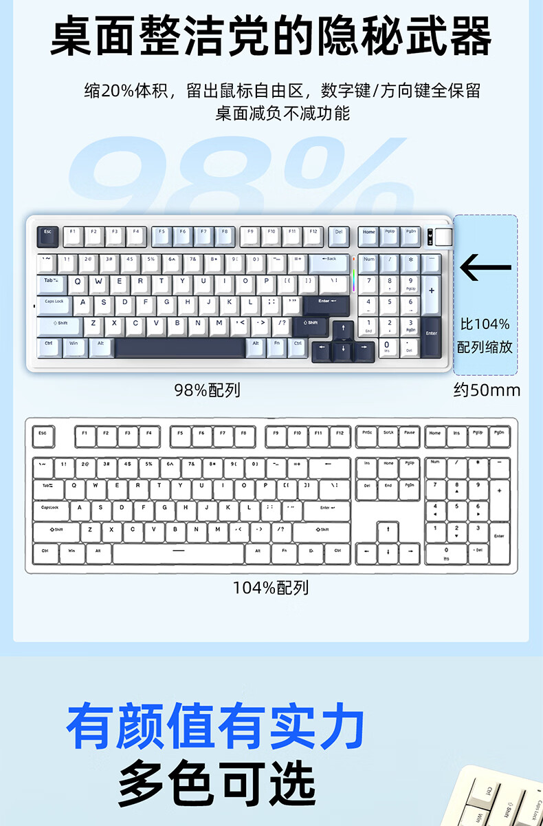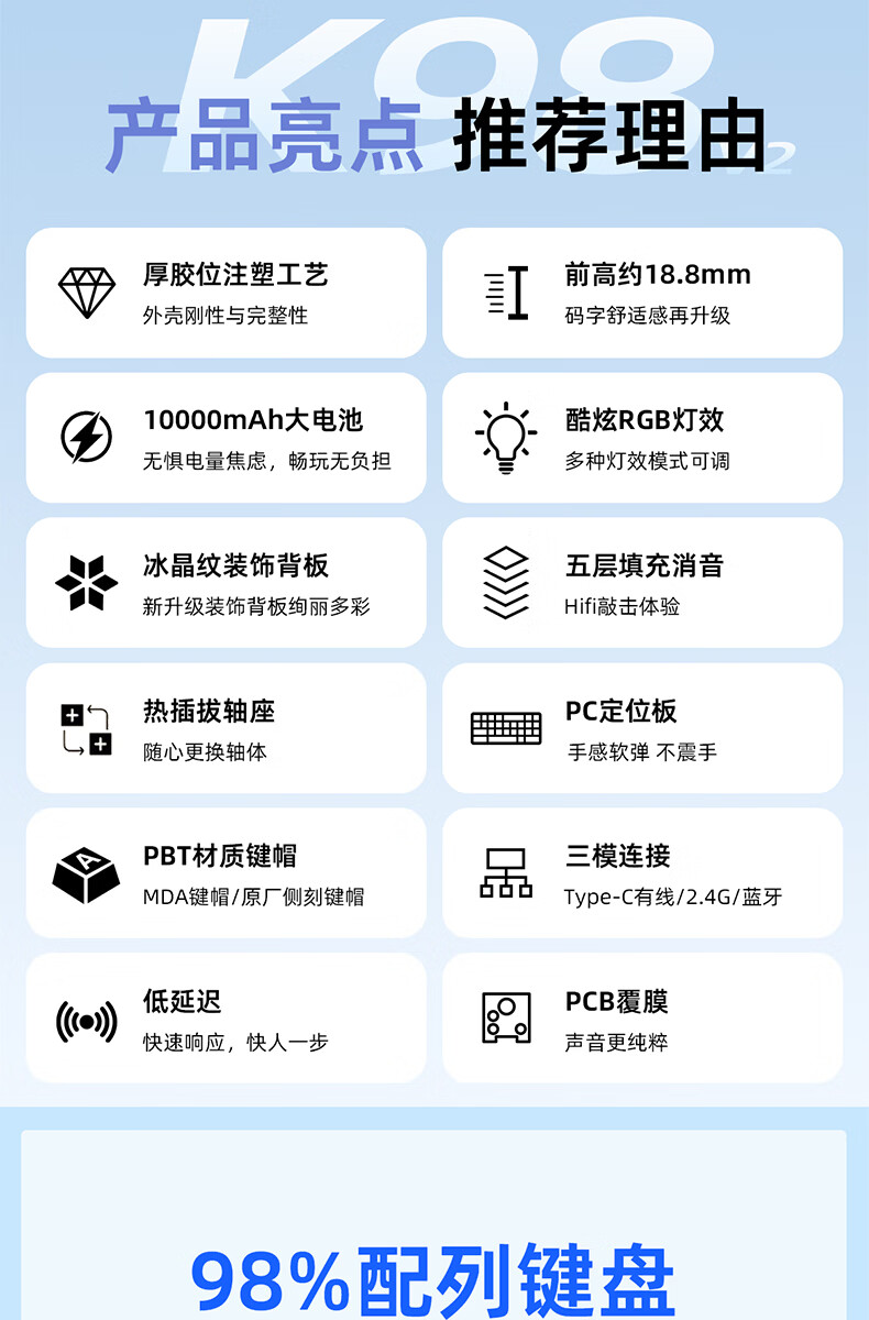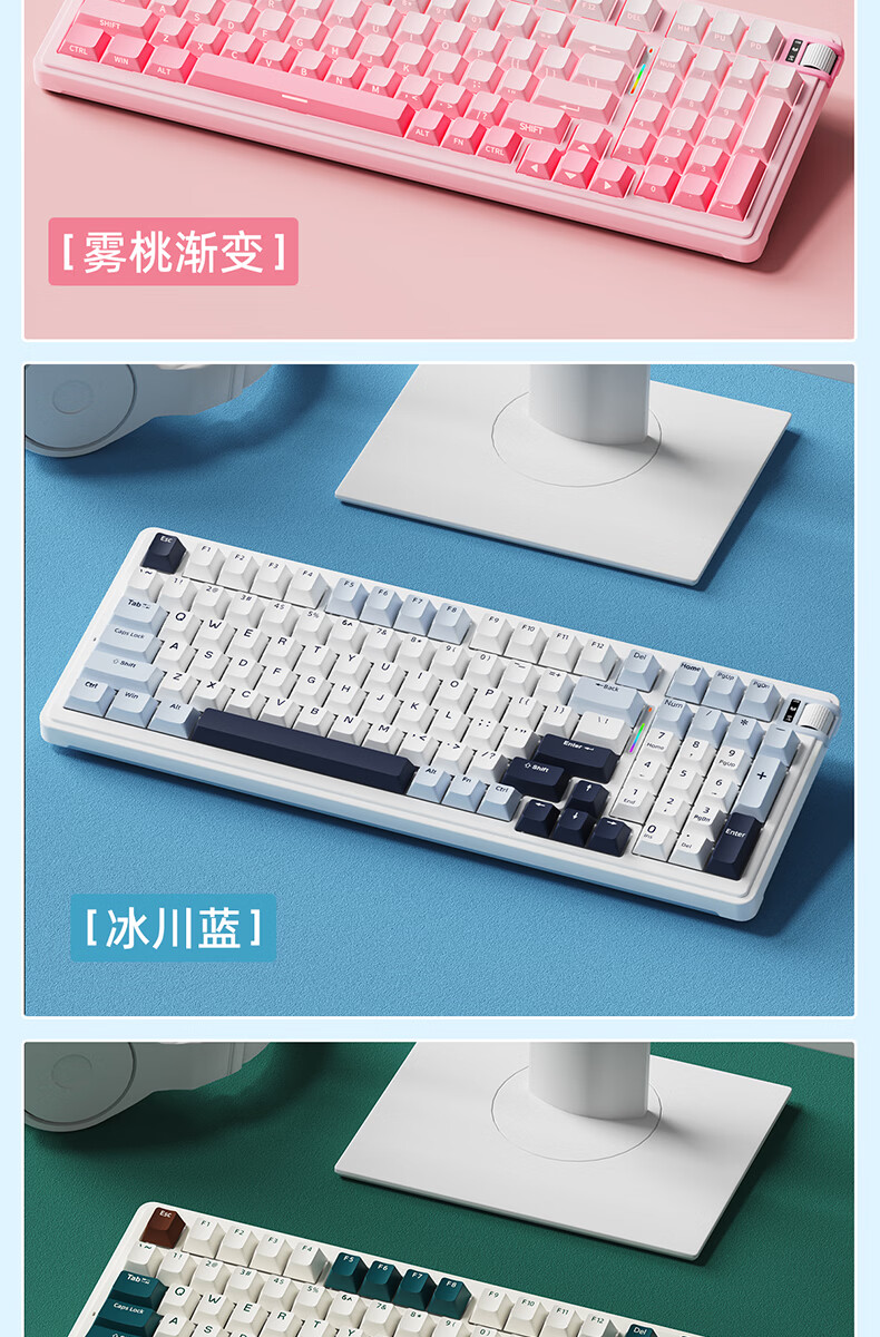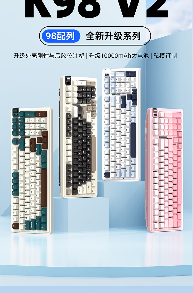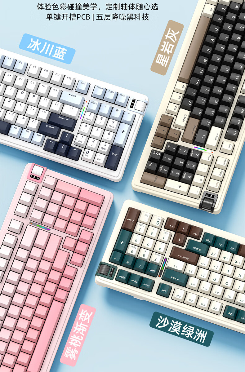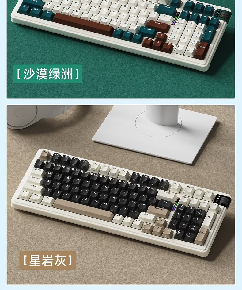 珂芝(KZZI)K98V2无线机械键盘蓝牙有线三模游戏电竞办公键盘98键gasket客制化RGB热插拔胶坨坨麻将音 【K98】沙漠绿洲-彩虹轴-三模-游戏优选 98键
