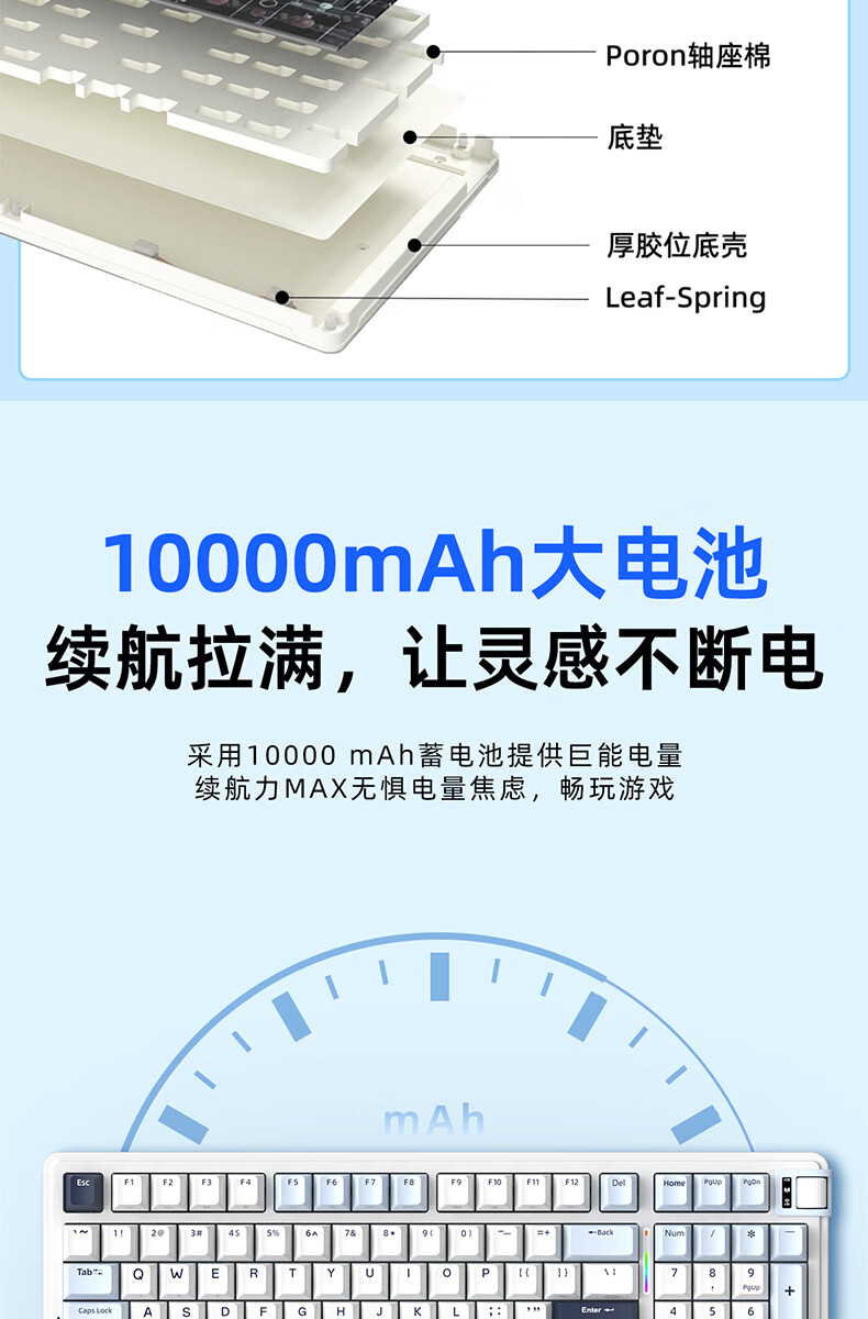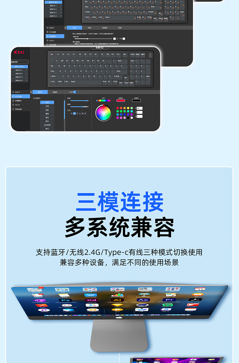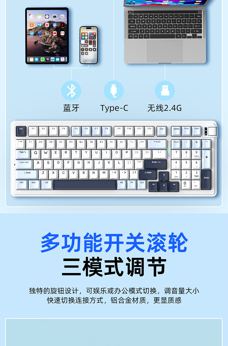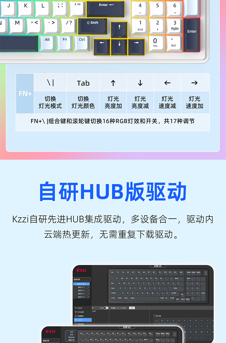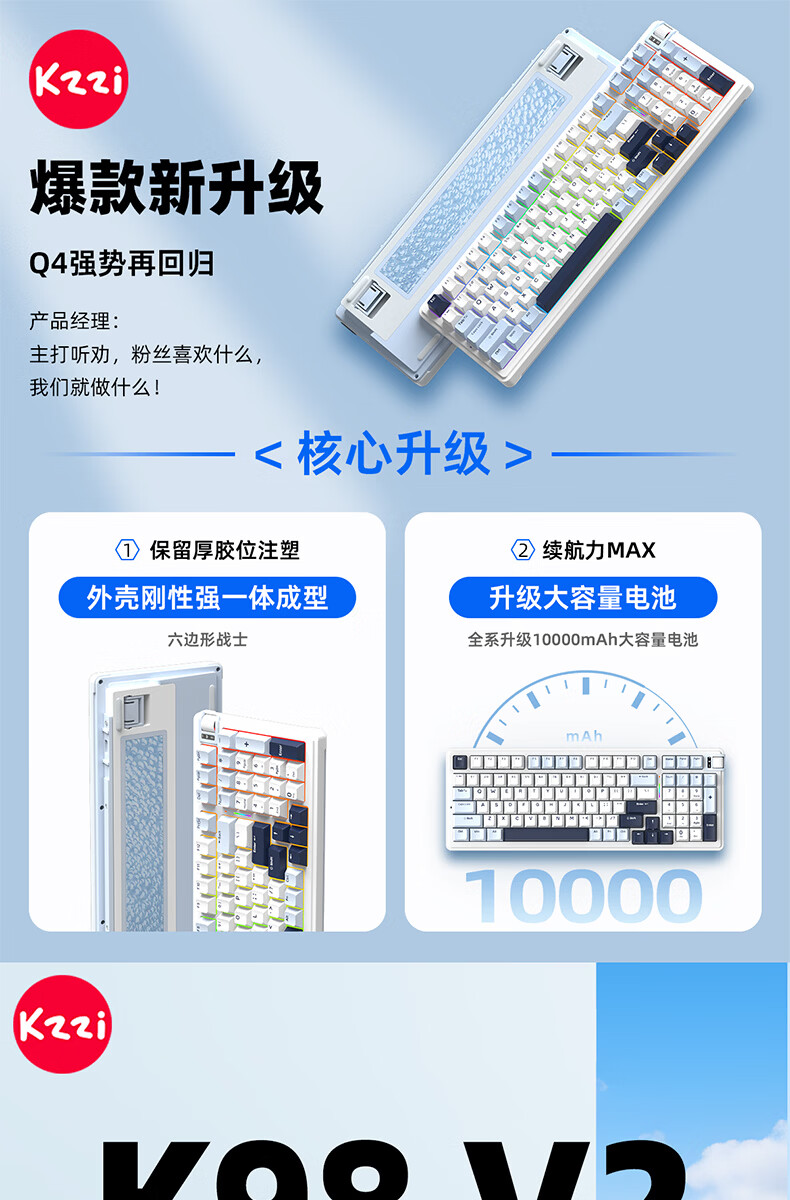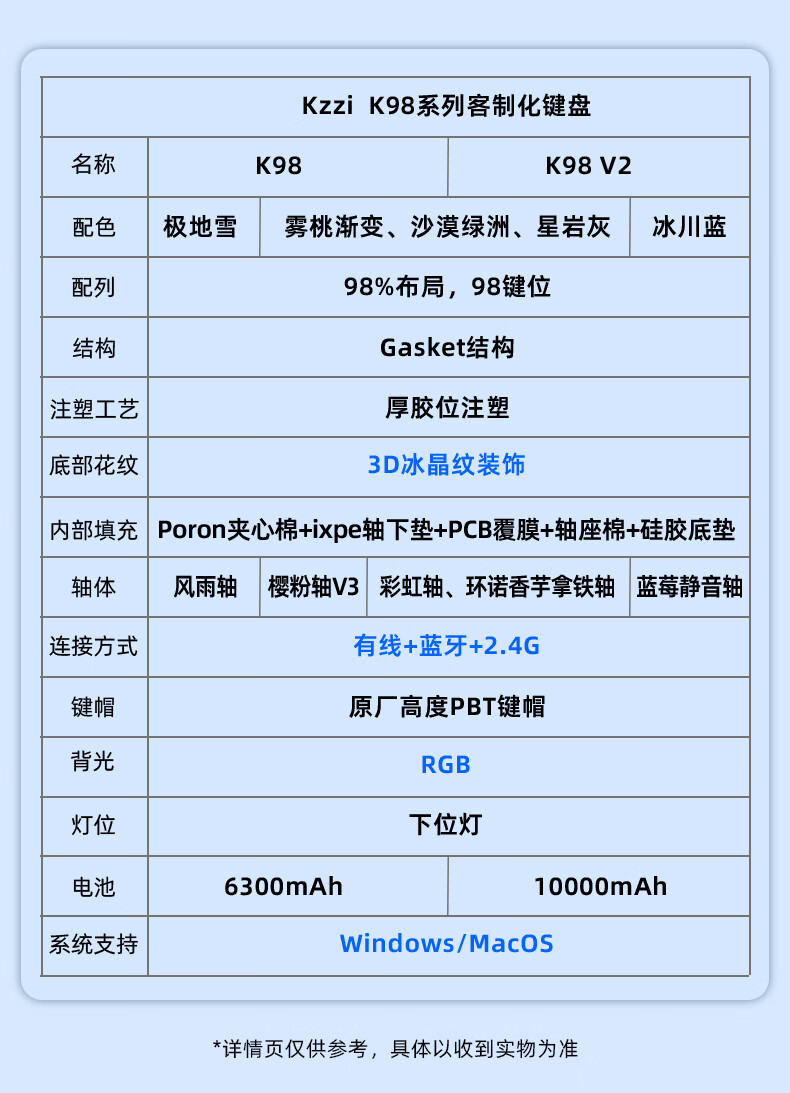 珂芝(KZZI)K98V2无线机械键盘蓝牙有线三模游戏电竞办公键盘98键gasket客制化RGB热插拔胶坨坨麻将音 【K98】沙漠绿洲-彩虹轴-三模-游戏优选 98键