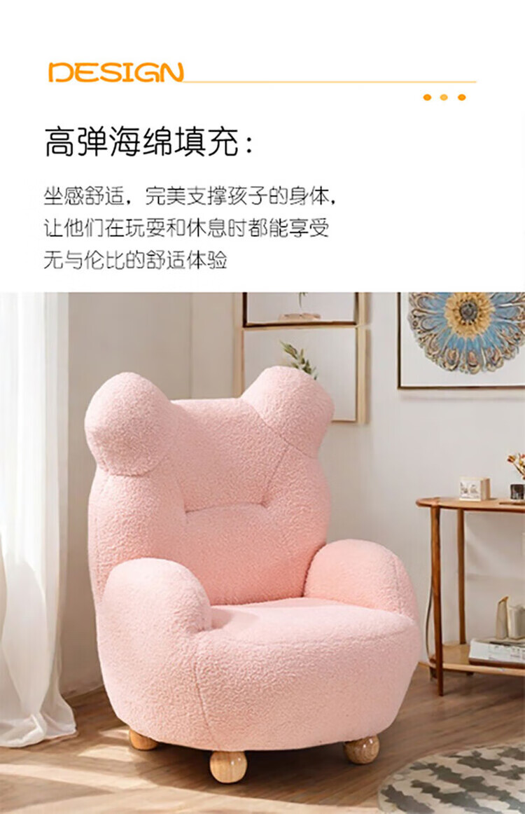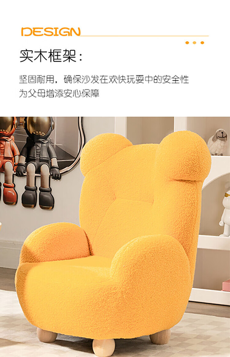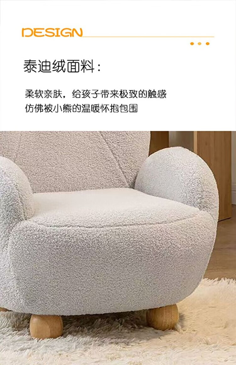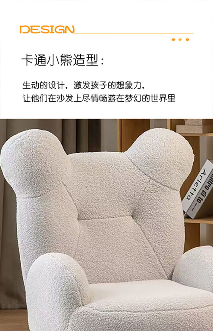 欣慕雅小熊儿童沙发沙发椅卡通3到6岁羊羔绒单人座椅可爱懒人宝宝卧室 【灰色款】小熊-不可拆洗