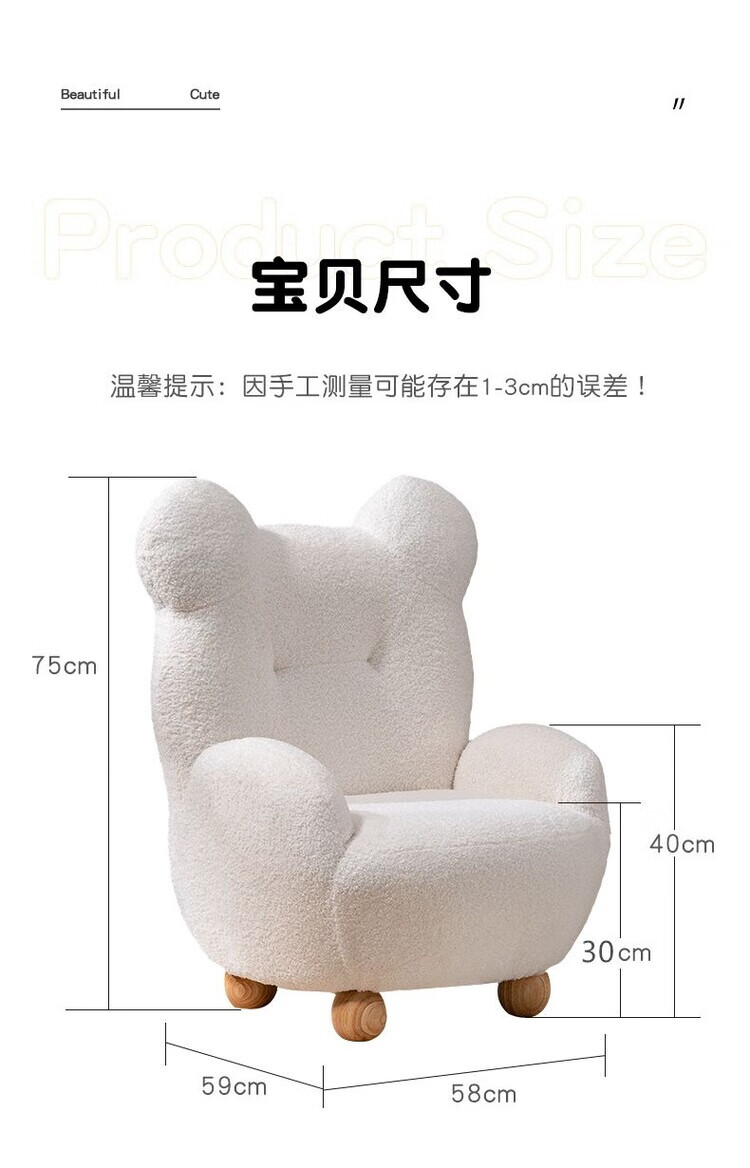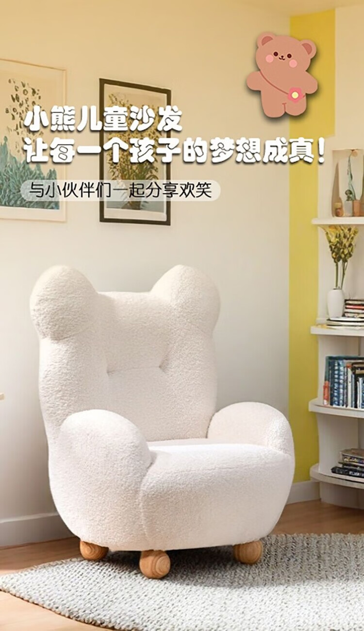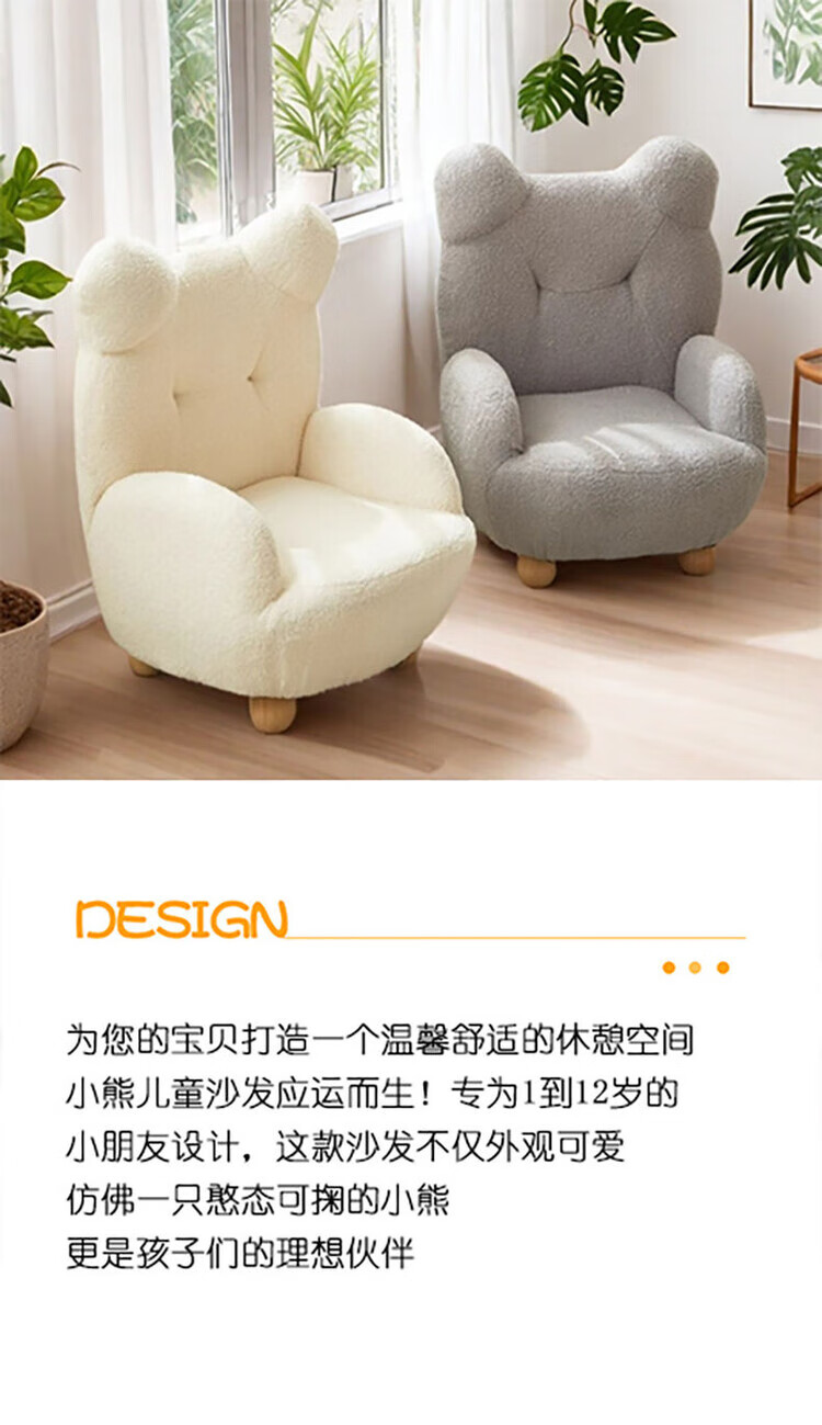 欣慕雅小熊儿童沙发沙发椅卡通3到6岁羊羔绒单人座椅可爱懒人宝宝卧室 【灰色款】小熊-不可拆洗