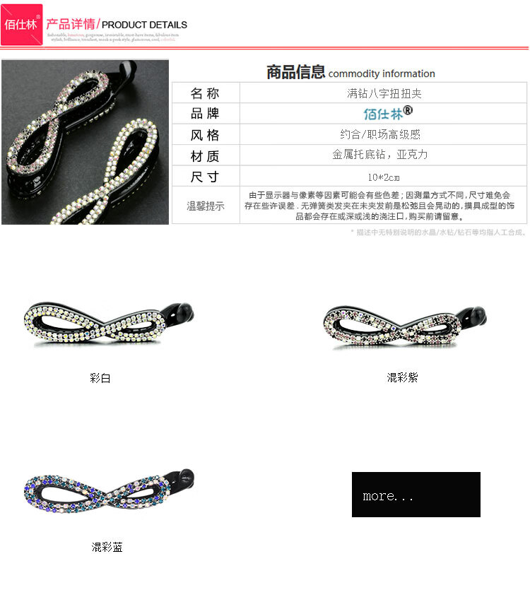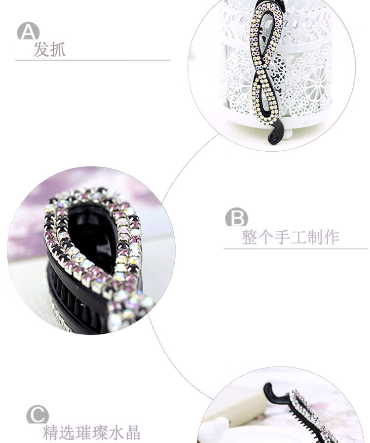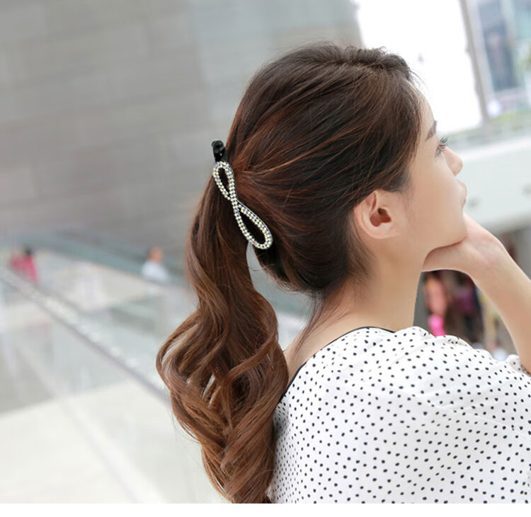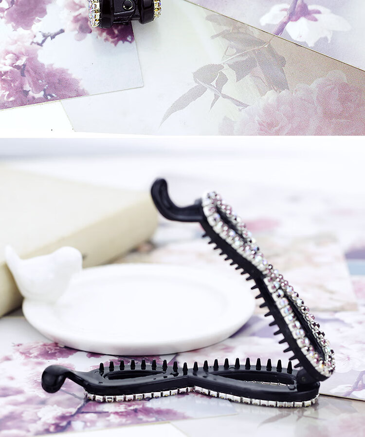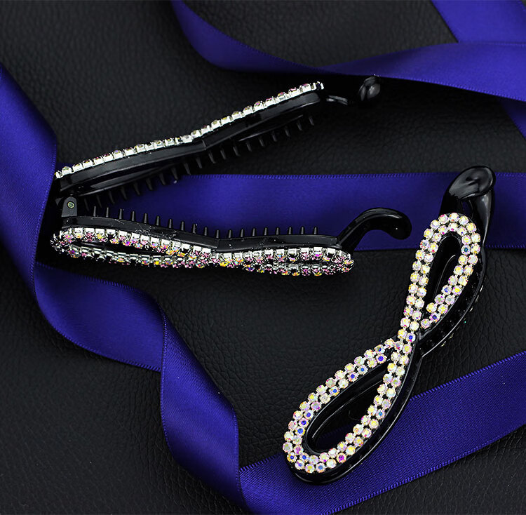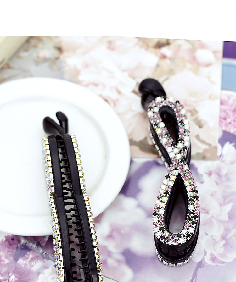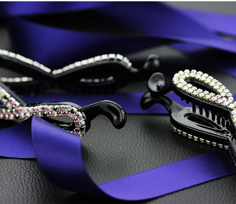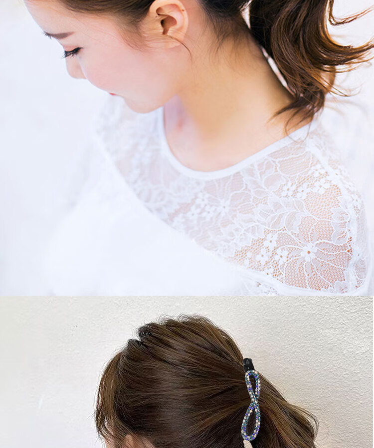 佰仕林新款满钻香蕉夹高端水钻发夹女发卡后脑勺鲨鱼夹子马尾夹生日礼物 混彩蓝钻8字香蕉夹